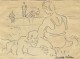 Tuschfeder über Bleistift auf dünnem Papier, alt auf Unterpapier montiert.