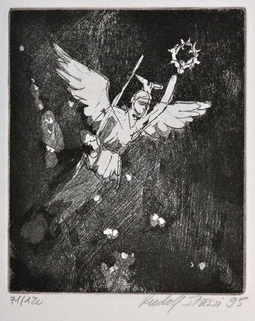 numerierten Exemplaren die Aquatinta-Radierung "Dornenkrone" (11,5 x 9,5 cm, 1995) von Rudolf Stüssi beigeheftet. Zu den Ausstellungen erscheinen jeweils Kataloge, von denen die auf 120