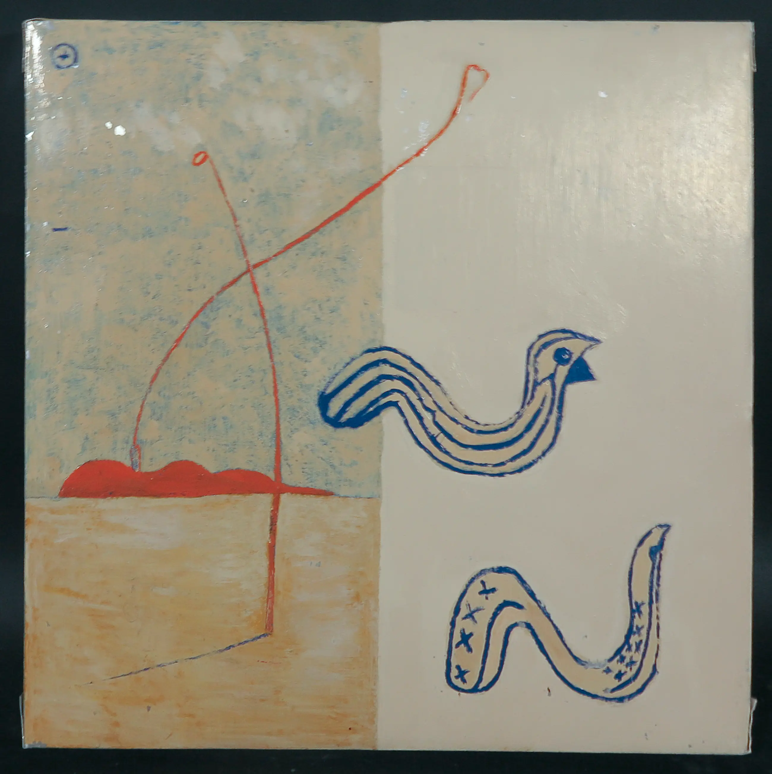 Het werk heeft kleine beetjes verfschade, waardoor er stipjes van het aluminium te zien zijn. | |