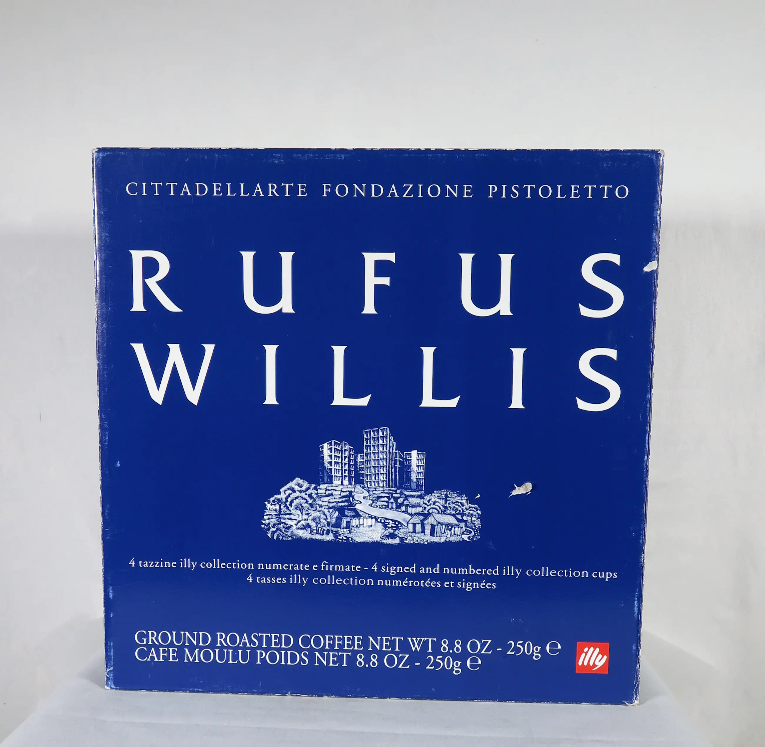Ontworpen door Michelangelo Pistoletto voor het koffiemerk Illy, een 4-persoons porseleinen espresso-set, bestaande uit vier kopjes, vier schoteltjes en één blik met koffie.