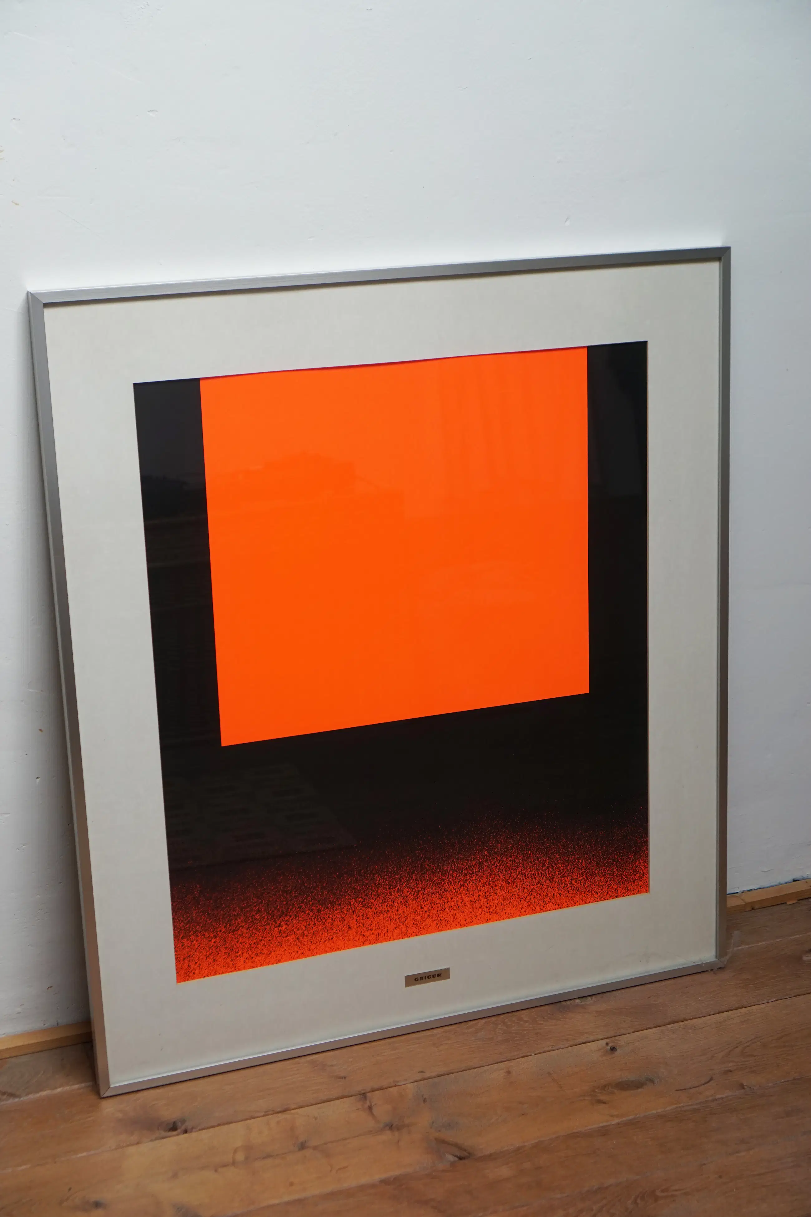 Prachtige abstracte zeefdruk van de Duitse kunstenaar Rupprecht Geiger (1908-2009), bekend om zijn onderzoek naar licht en kleur.
