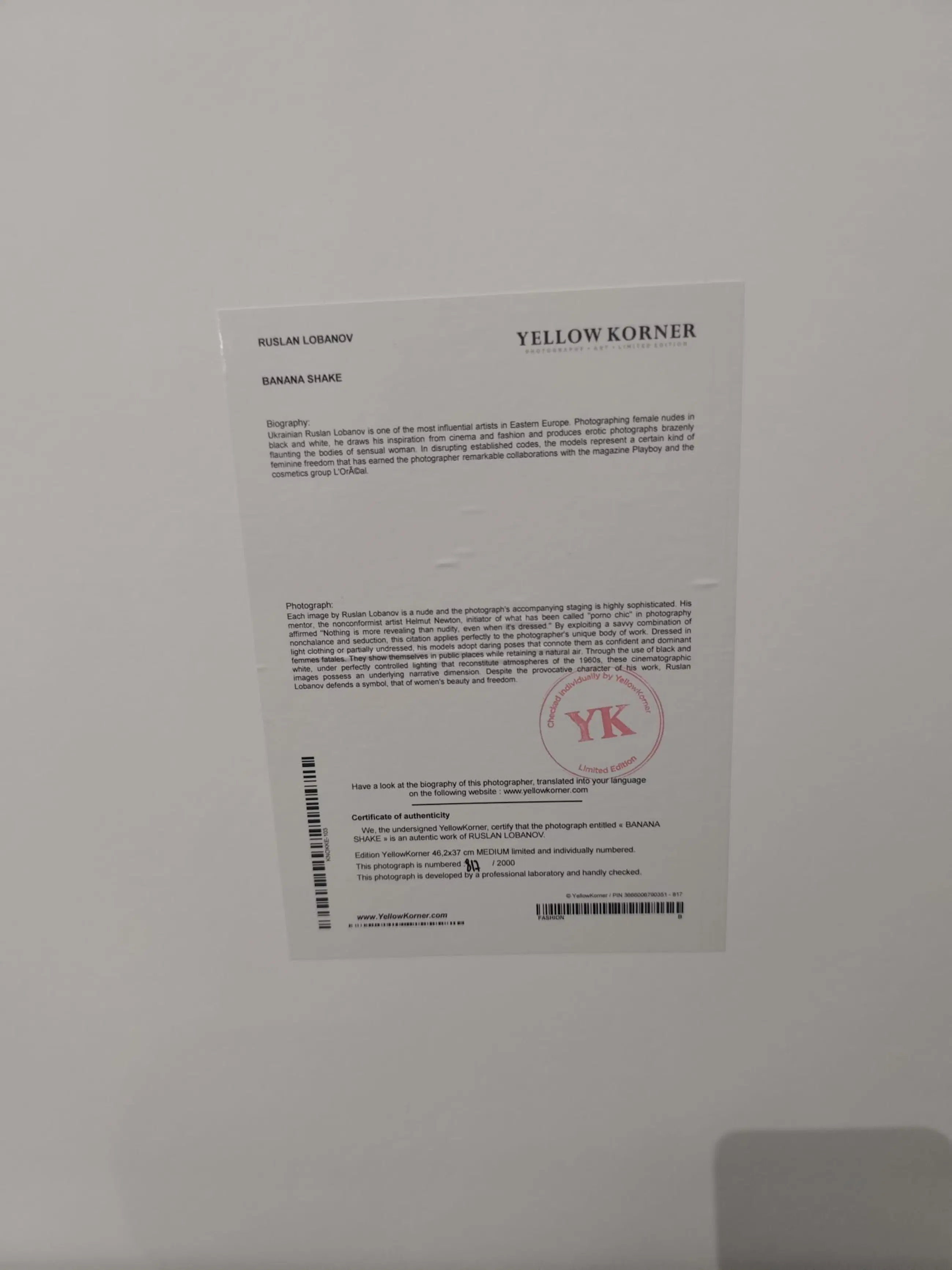 Het werk is af te halen op locatie. Als koper dient u zelf verpakkingsmateriaal mee te nemen. De locatie is: Sleidinge, België