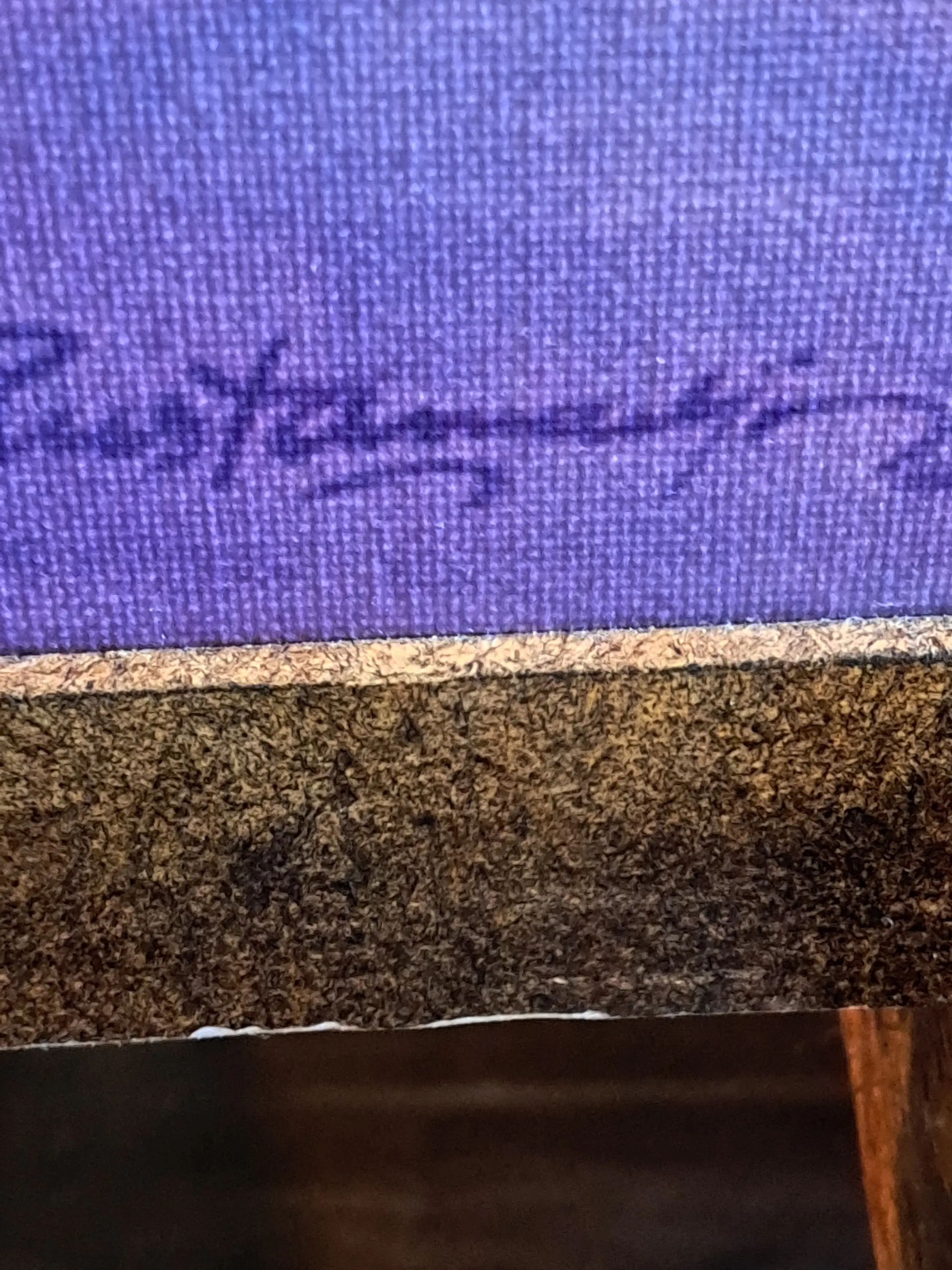 De giclée zelf is in een uitstekende staat. De lijst vertoont wel gebruikerssporen en lichte beschadigingen.