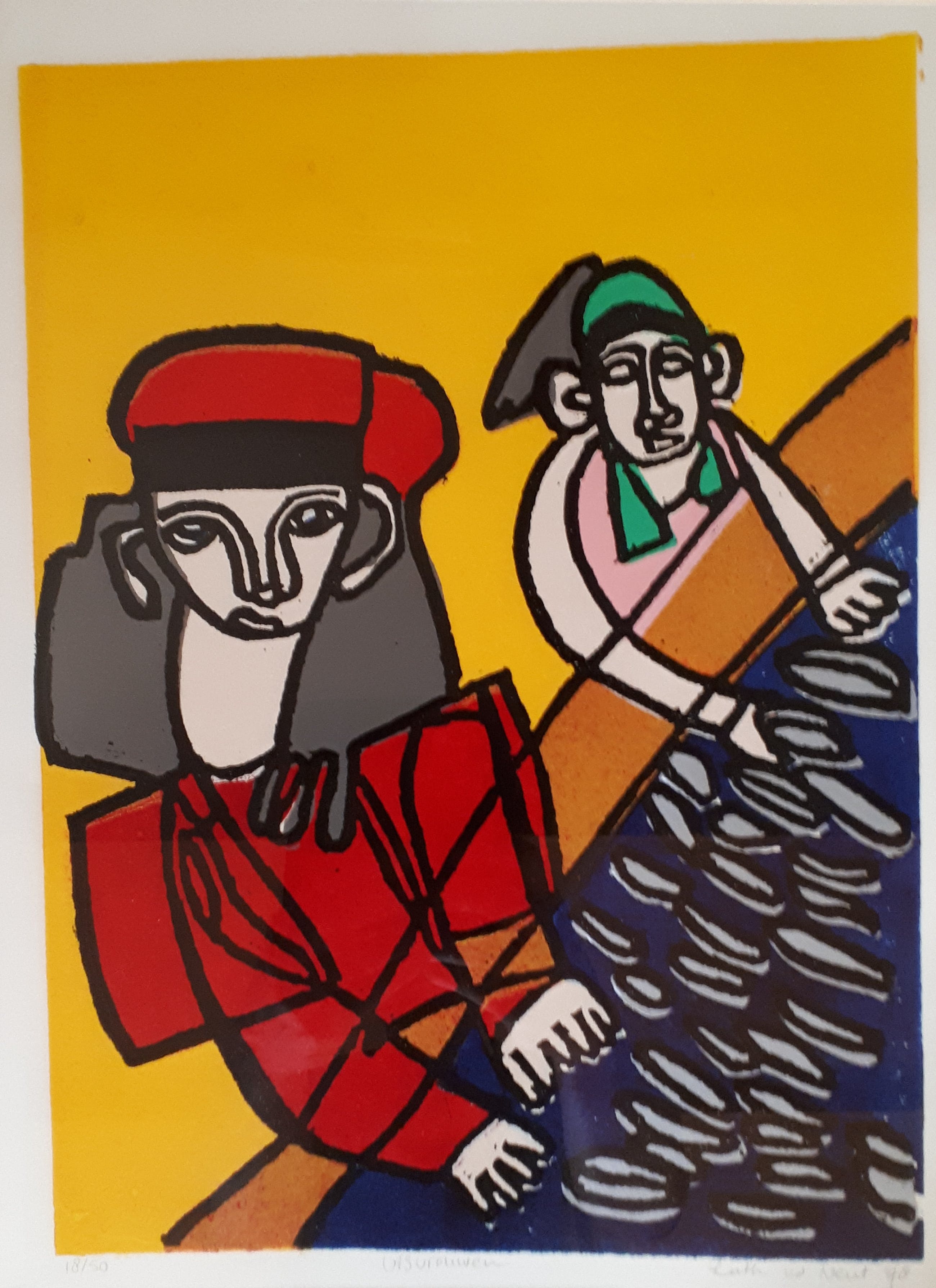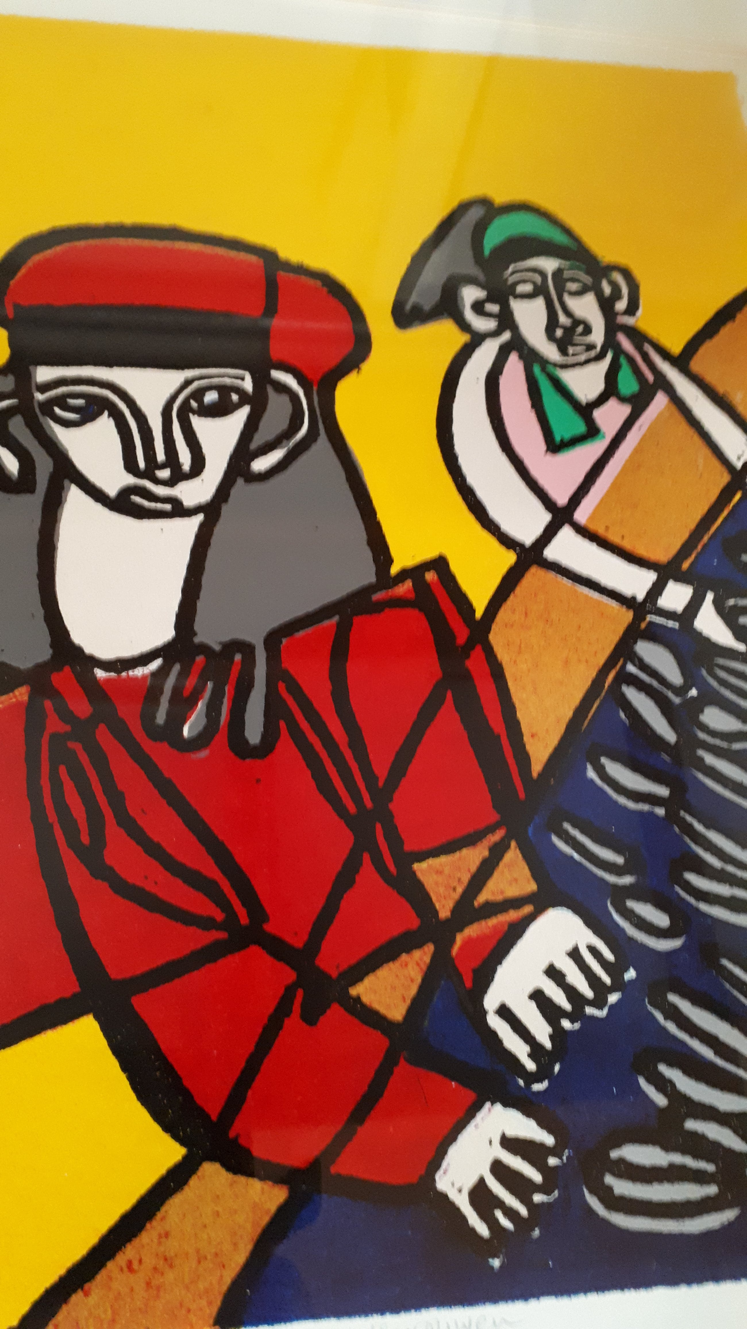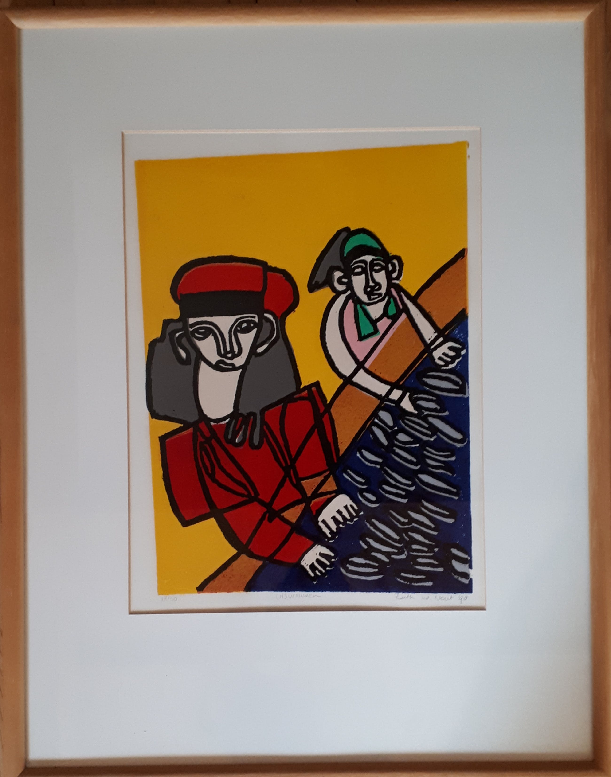 Knap en vrolijk werk van Ruth van der Neut, werk en lijst in zeer goede staat !