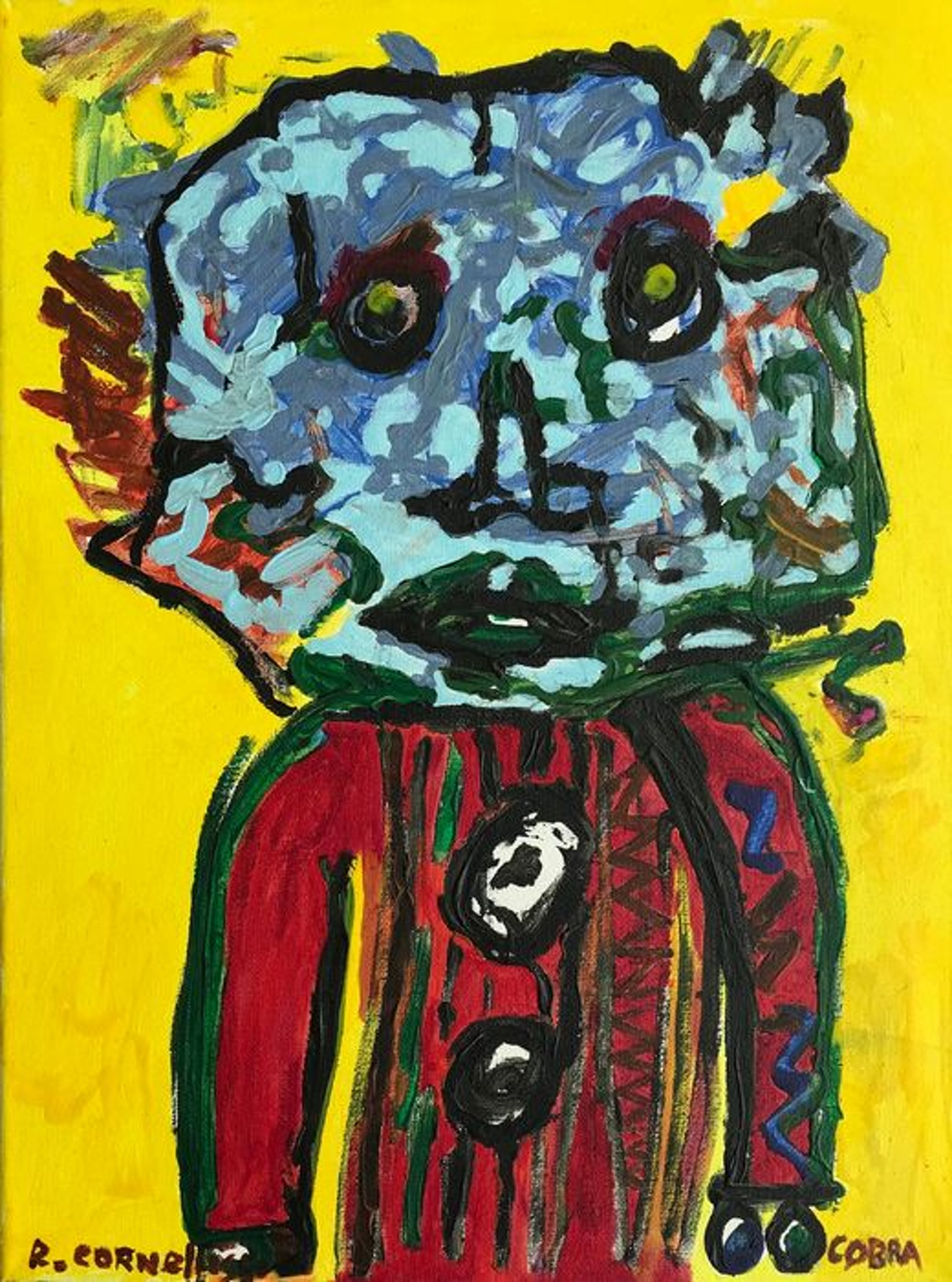 Acrylverfschilderij op doek. 30 x 40 cm. Titel: 'Cobra' Ruud Cornelisse (Amsterdam 1940 - ). Gesigneerd aan de voorzijde. Zijkanten zijn blauw geschilderd.