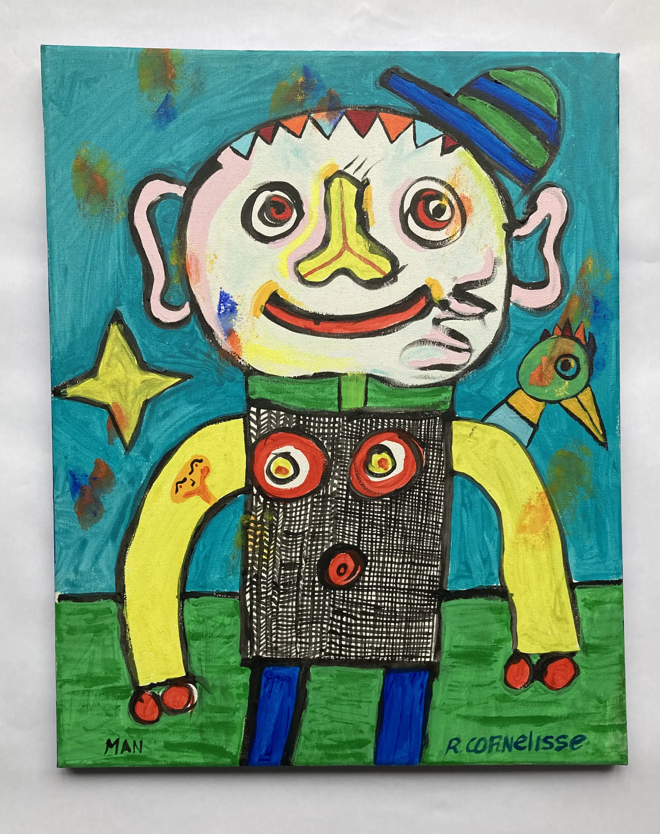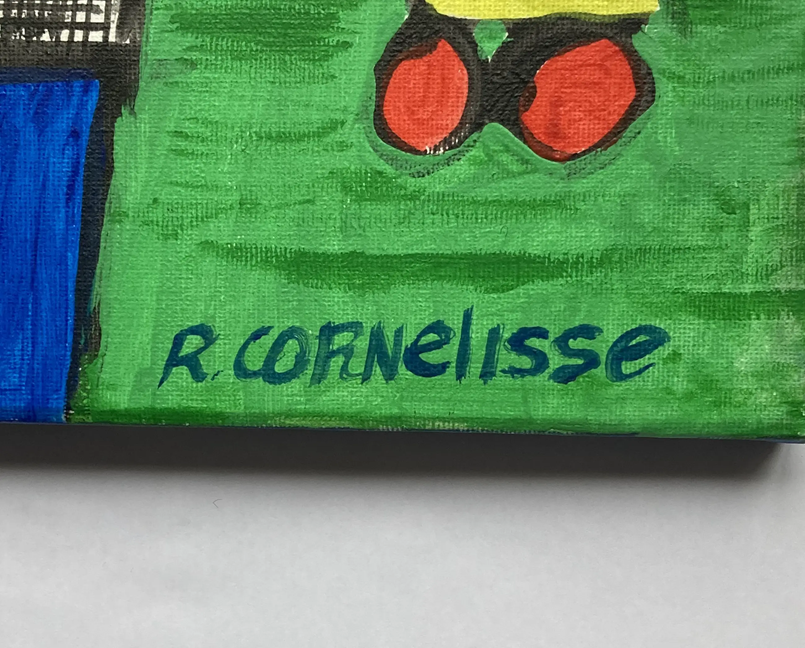 Ruud Cornelisse, geboren te Amsterdam in 1940, is een post-cobra schilder en tekenaar. Hij studeerde aan de Gerrit Rietveld Academie en aan het Instituut voor Kunstnijverheidsonderwijs te Amsterdam. Schilderij wordt verpakt tussen noppenfolie en platen.