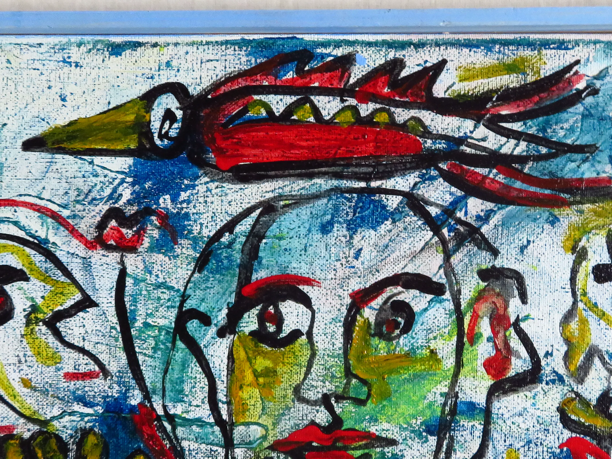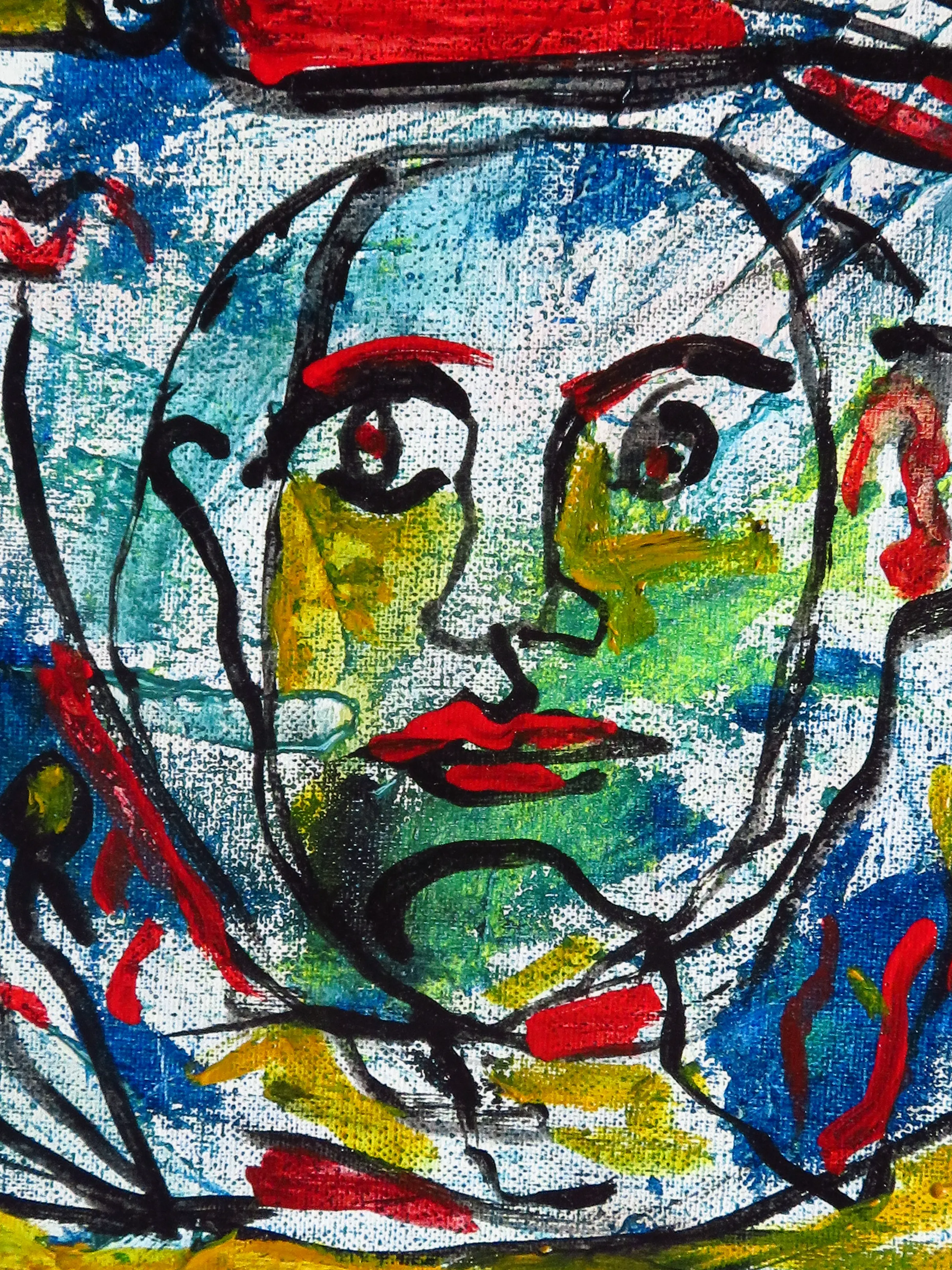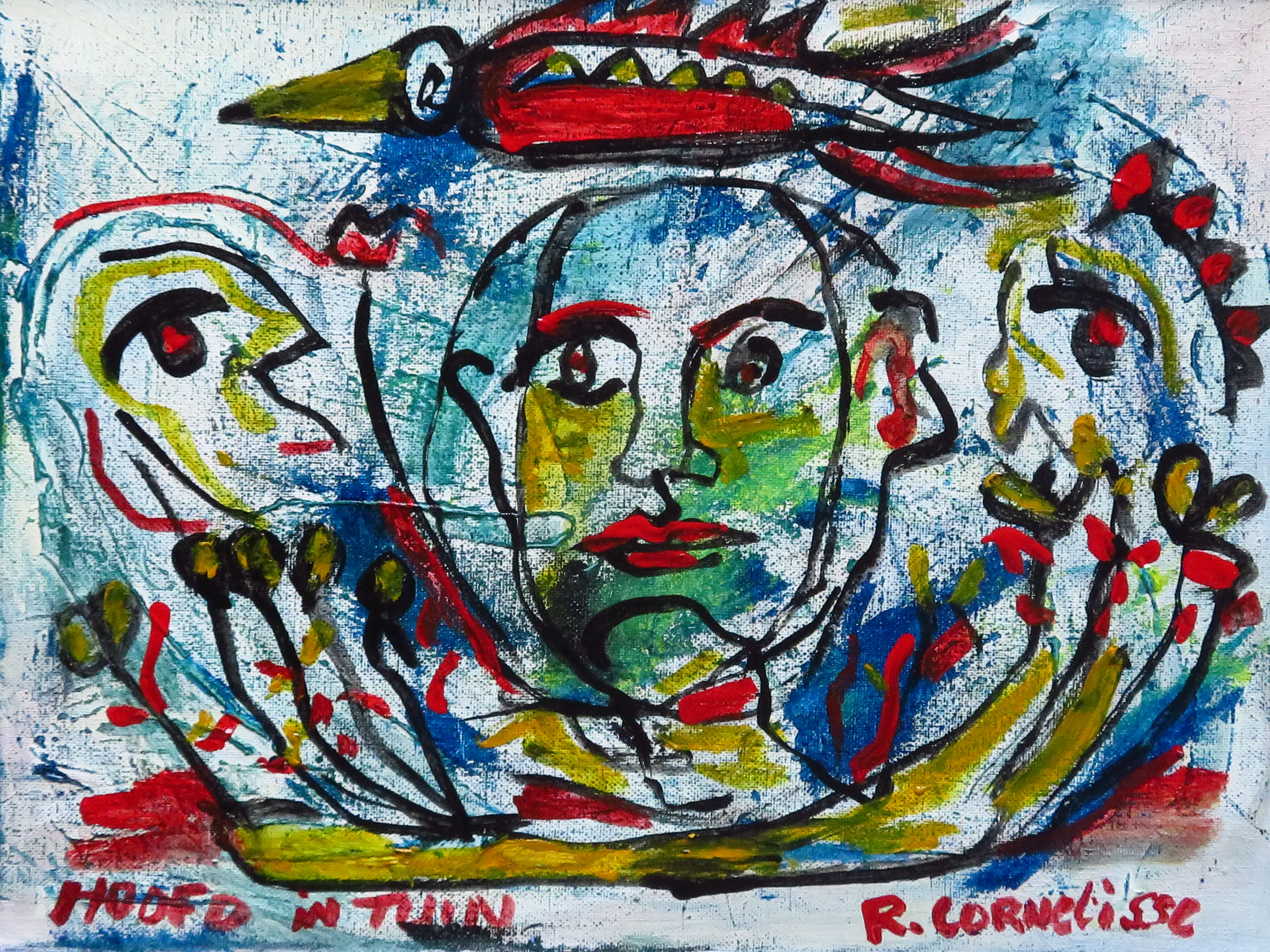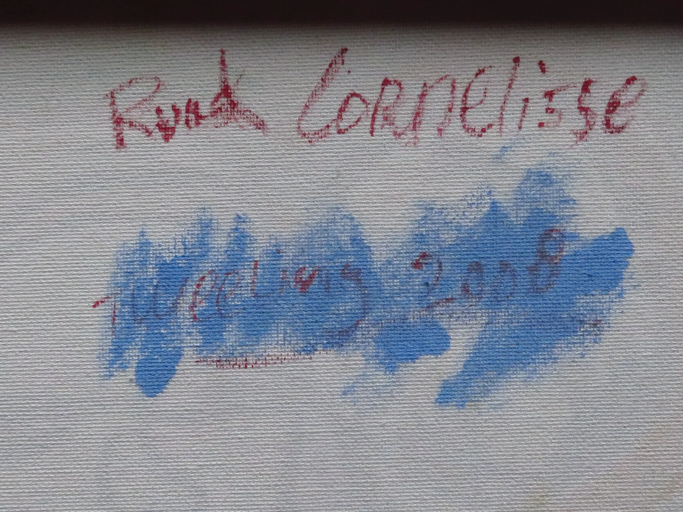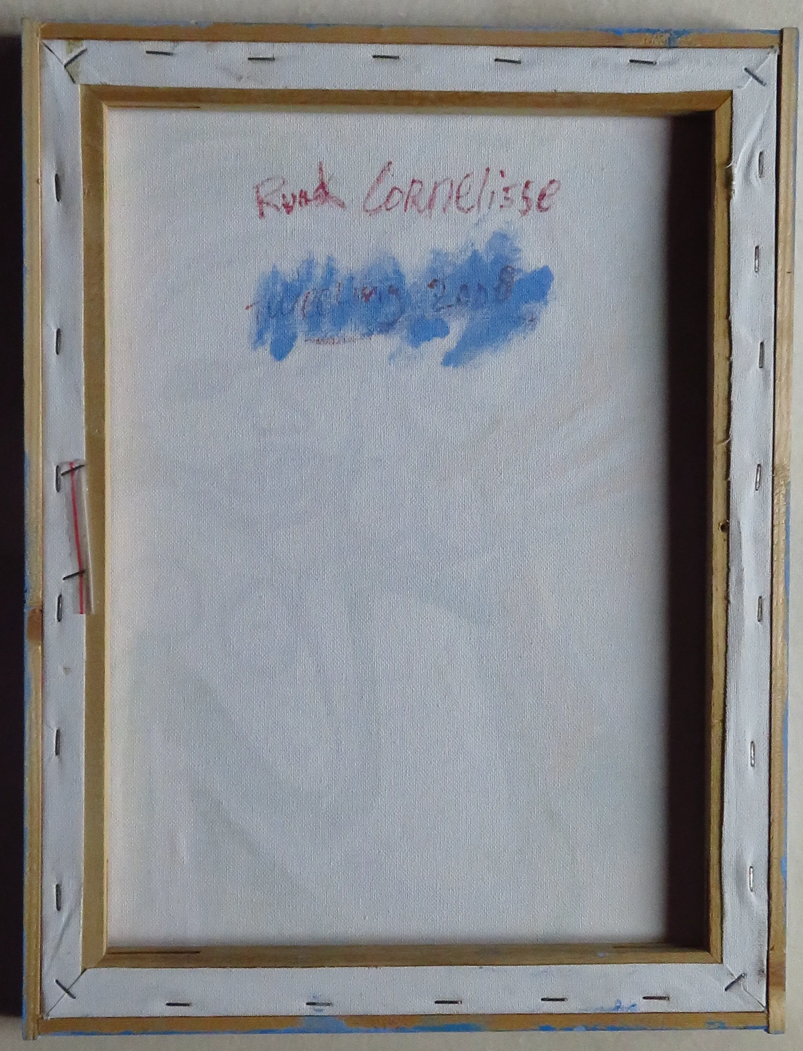 Op de achterzijde zijn de contouren te zien van een ander schilderij.
