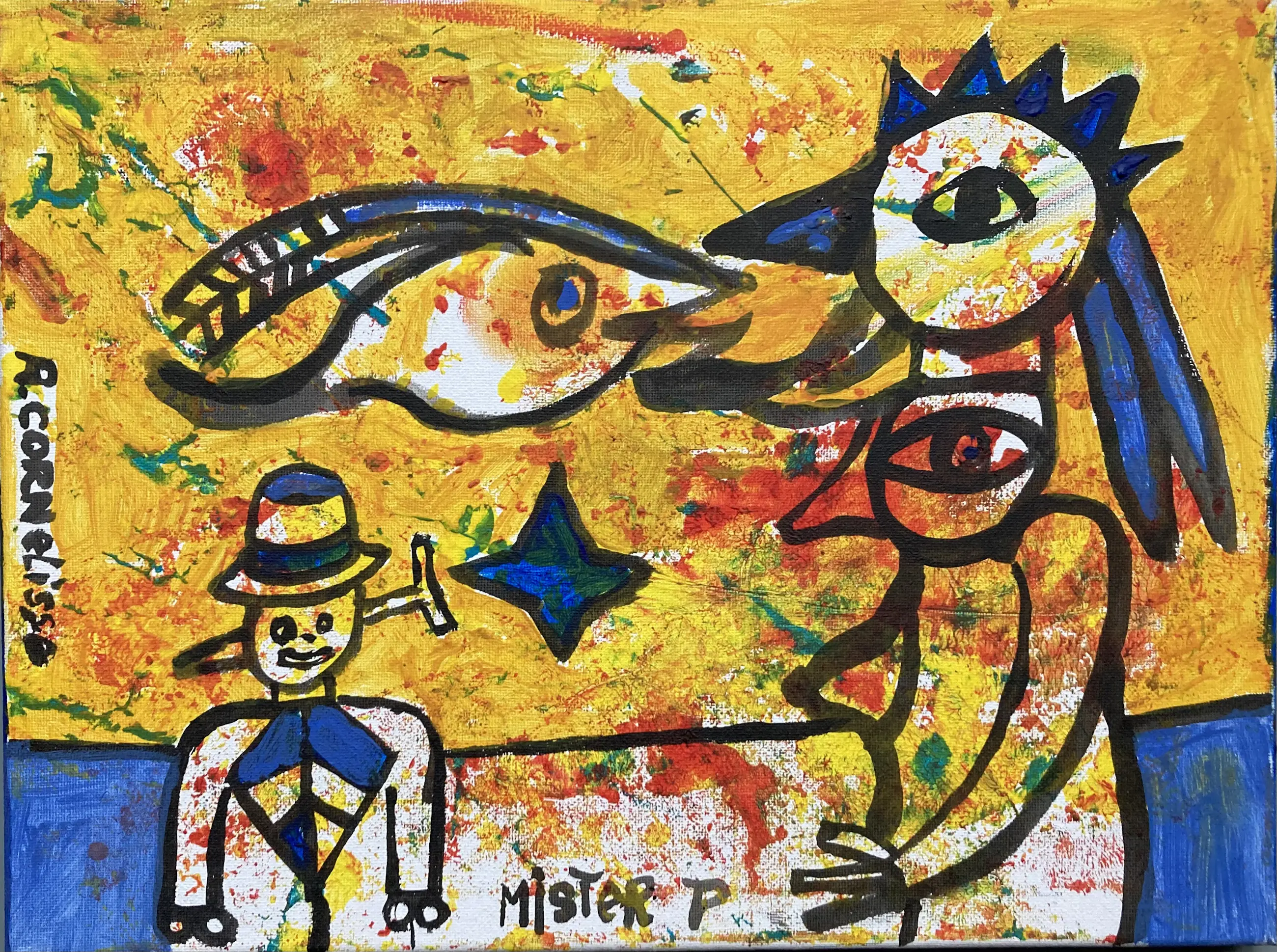 Acrylverf schilderij van Ruud Cornelisse, titel Mister P. Afmeting 30 x 40 cm.