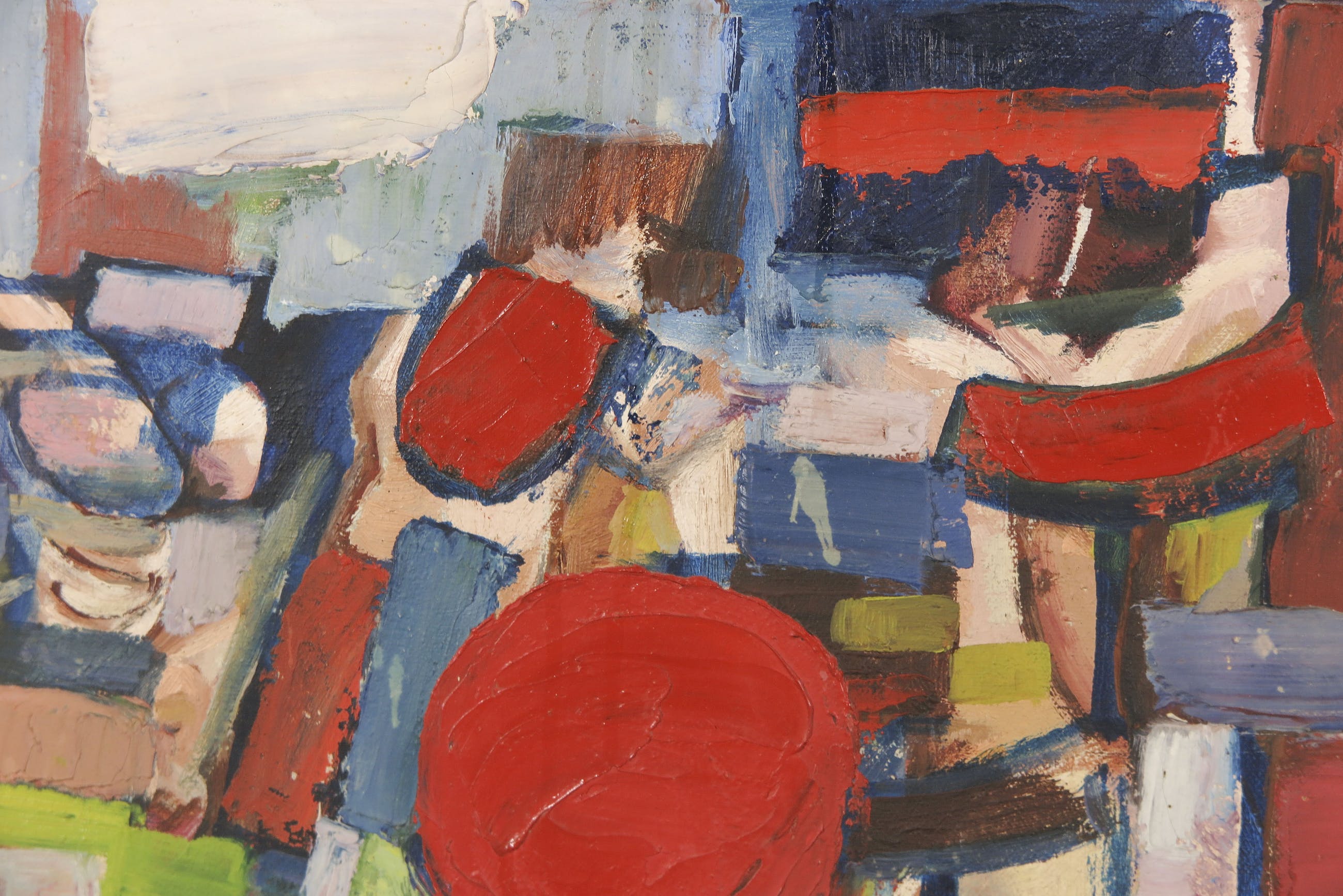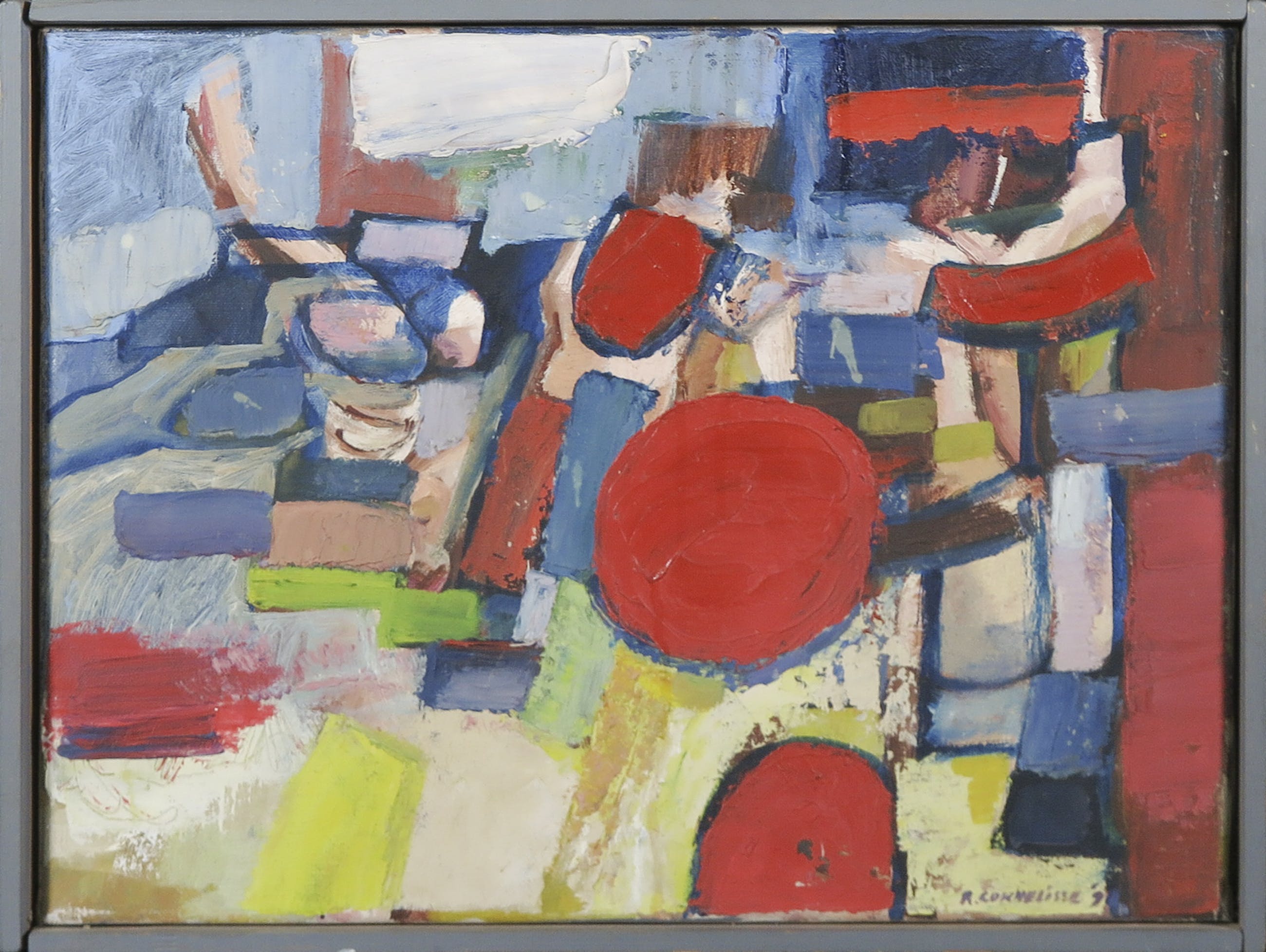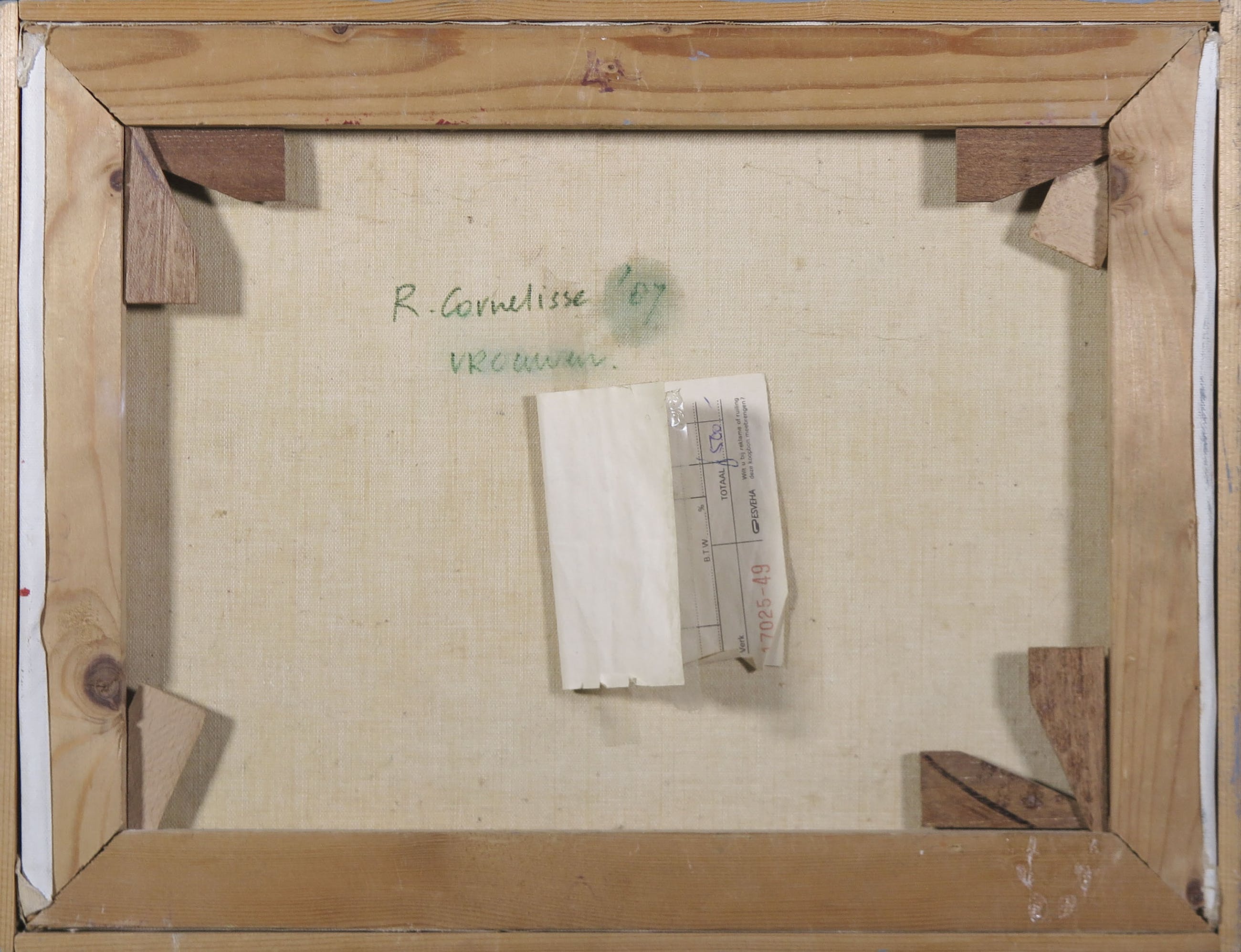 Klein olieverfschilderij op doek, getiteld 'Vrouwen' door R. Cornelisse.