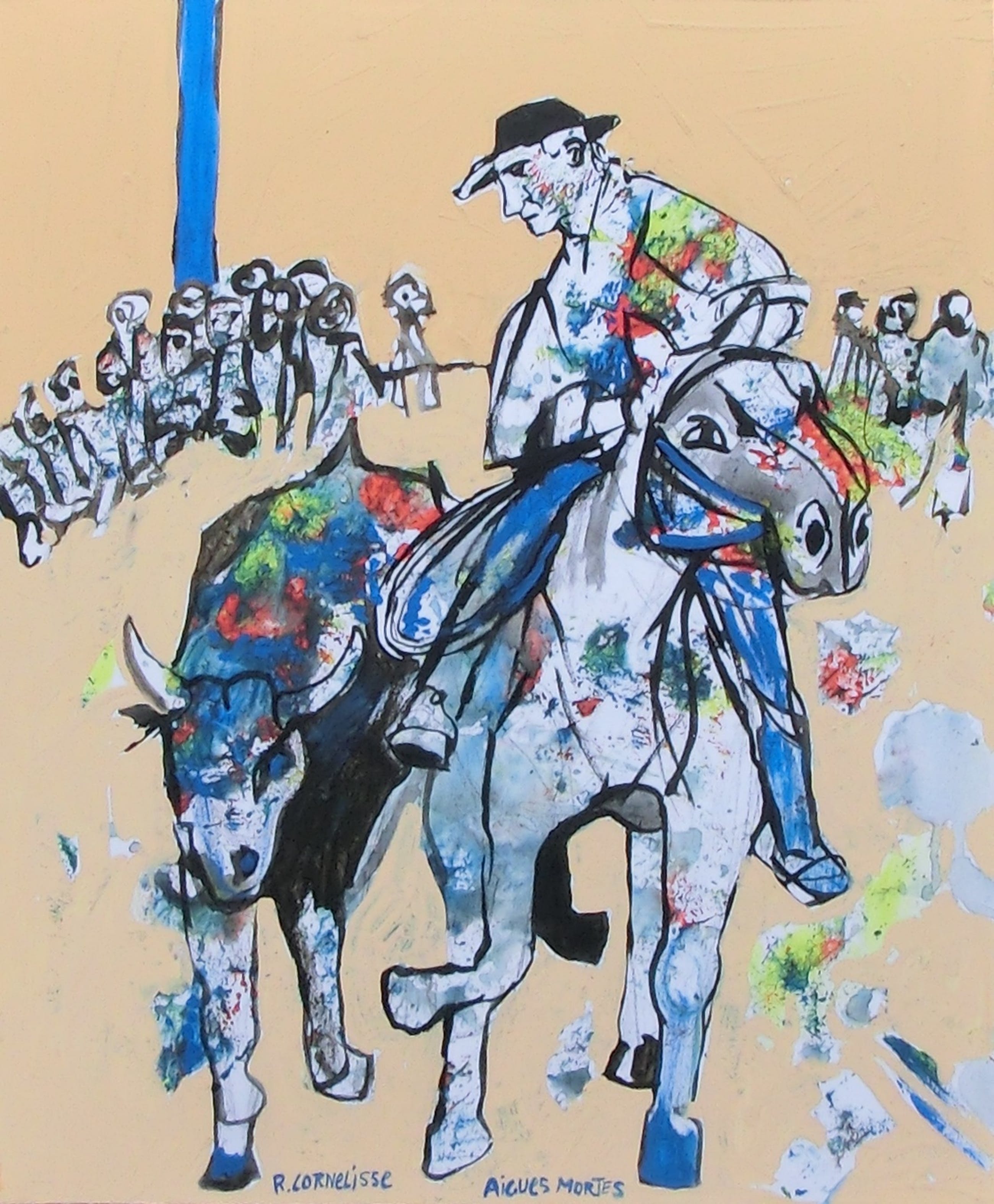 Ruud Cornelisse (1940) is een post-cobra schilder en tekenaar. Opgeleid aan de Rietveld academie en het Instituut voor Kunstnijverheidsonderwijs in Amsterdam met als docent Willem (Wim) Strijbosch. Zijn stijlkenmerken zijn typisch Post-Cobra met haar surrealistische en expressieve uiting. Naast de vele schilderijen en olieverf en acryl heeft Rudi vele grafische technieken gehanteerd zoals etstechniek, houtgravure, kopergravure en linoleumdruk. De onderwerpen zijn veelal de uitingen van de dialoog. Ruud verbleef jarenlang op de ruïne van Brederode in Santpoort waar hij vele culturele evenementen heeft georganiseerd. Ook daar stondt de ontmoeting, de dialoog op de eerste plaats. Hij heeft als decorbouwer ook jarenlang voor Hause Orkater meegewerkt. Ruud was lid van X65 te Haarlem, Kunst zij ons doel en wordt genoemd in vele publicaties. Het krachtige werk van Ruud Cornelisse blijft op het netvlies staan en duwt je bovenop het schilderij zoekend naar datgeen wat je bindt en wordt een plaats van herkenning die dieper gaat dan het op eerste gezicht lijkt.