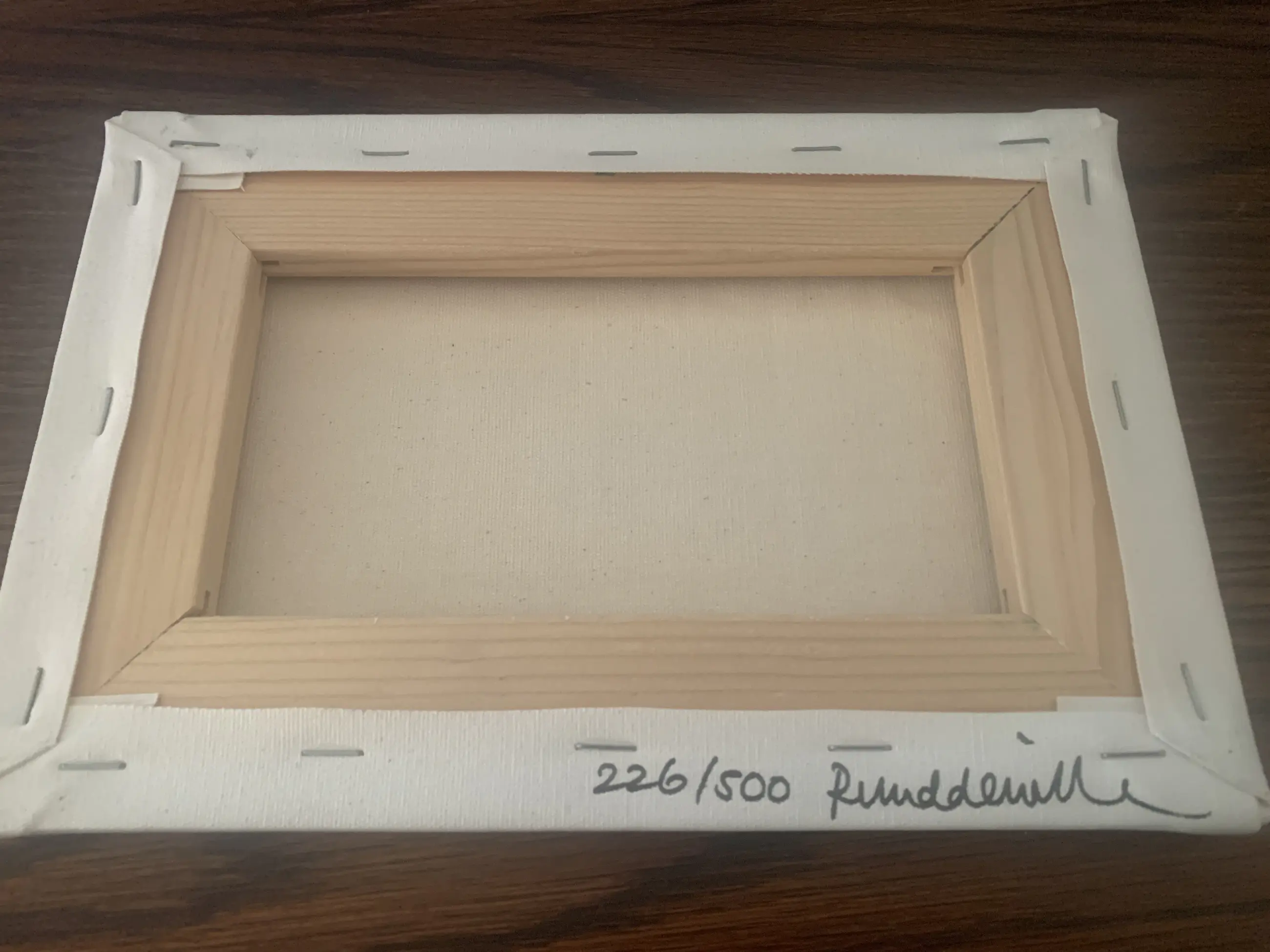 Het canvas is op de achterzijde met de hand genummerd (226/500) en gesigneerd in zwarte stift.