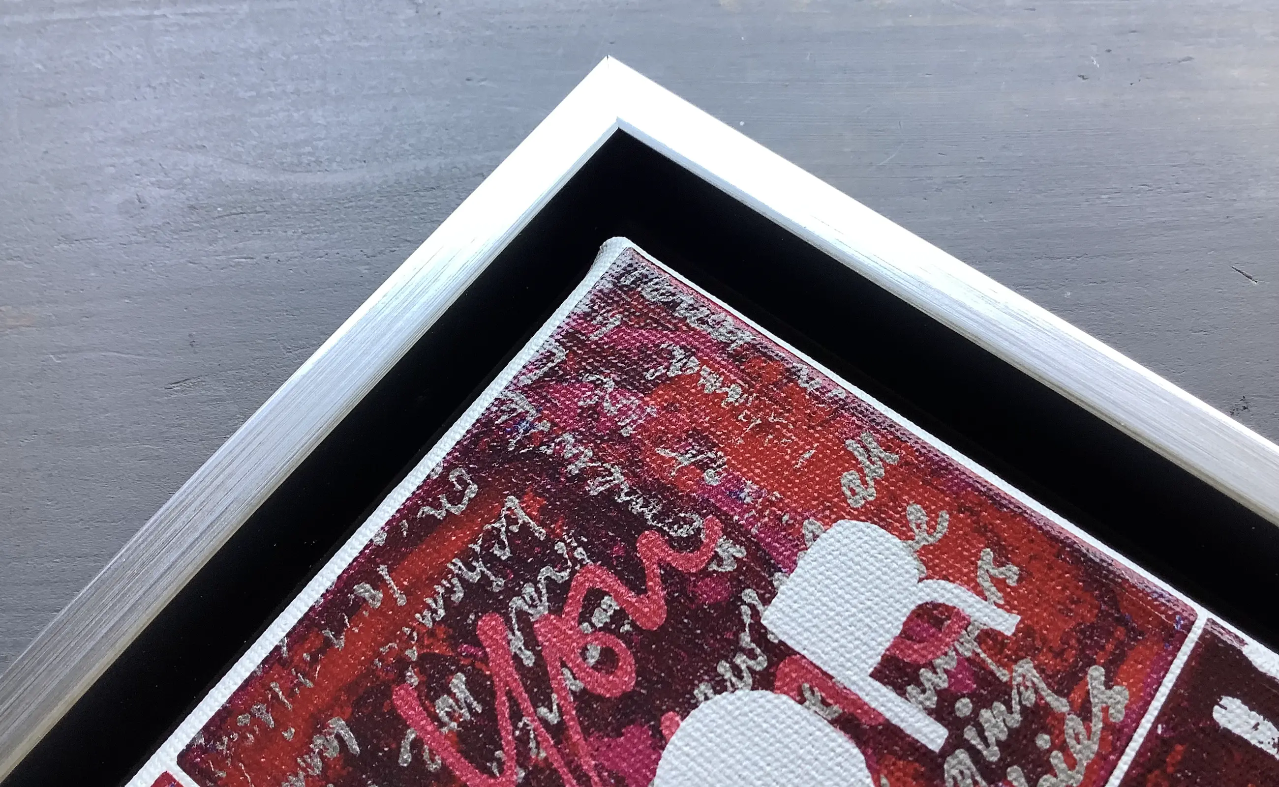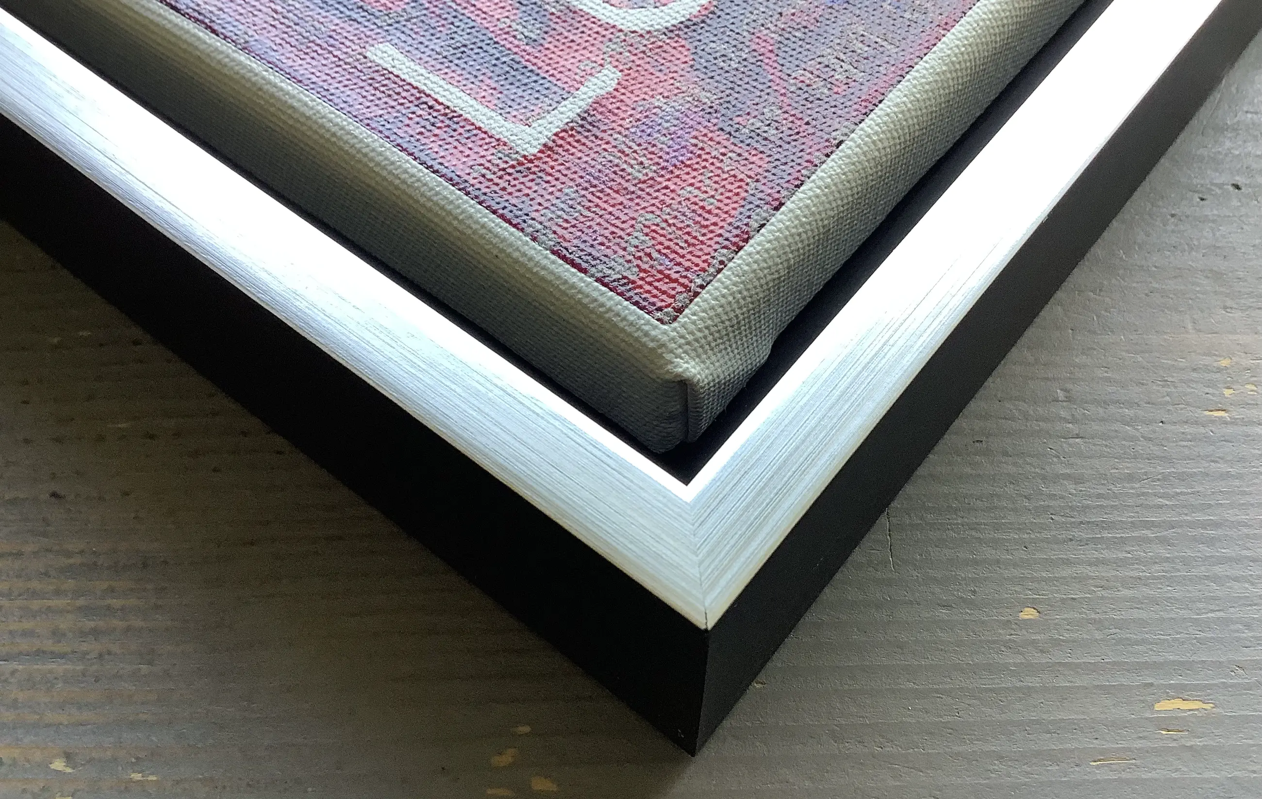 Ingelijst in nieuwe luxe baklijst met zwart en zilver.