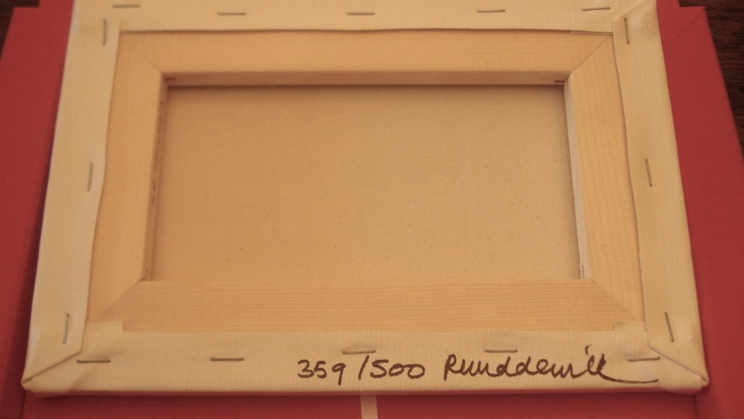 Het canvas is op de achterzijde met de hand genummerd (359/500) en gesigneerd in zwarte stift.