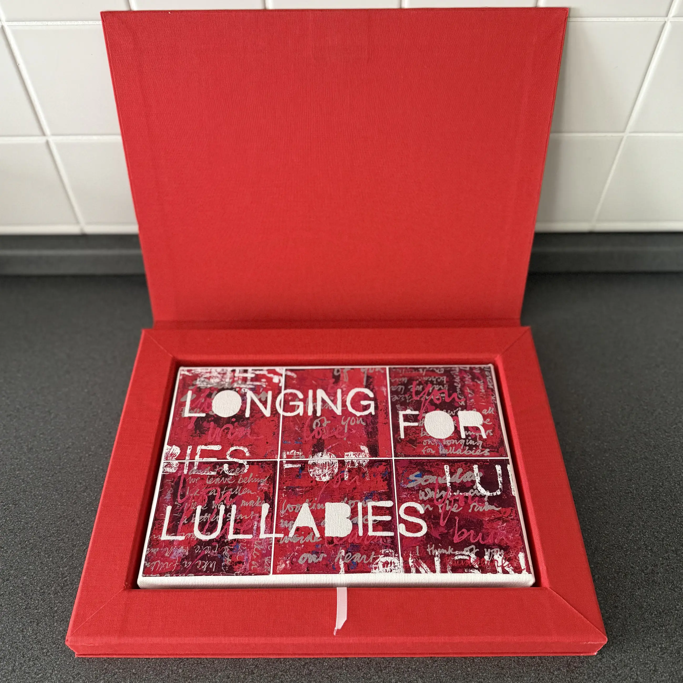Ik bied een kunstdruk aan van de beroemde Nederlandse schilder en radiopresentator Ruud de Wild. Het werk, "Longing for Lullabies", is gemonteerd op een houten frame van 27x18 cm en is met de hand gesigneerd en genummerd door de kunstenaar. Het is nummer 276 van een gelimiteerde oplage van 500 exemplaren.