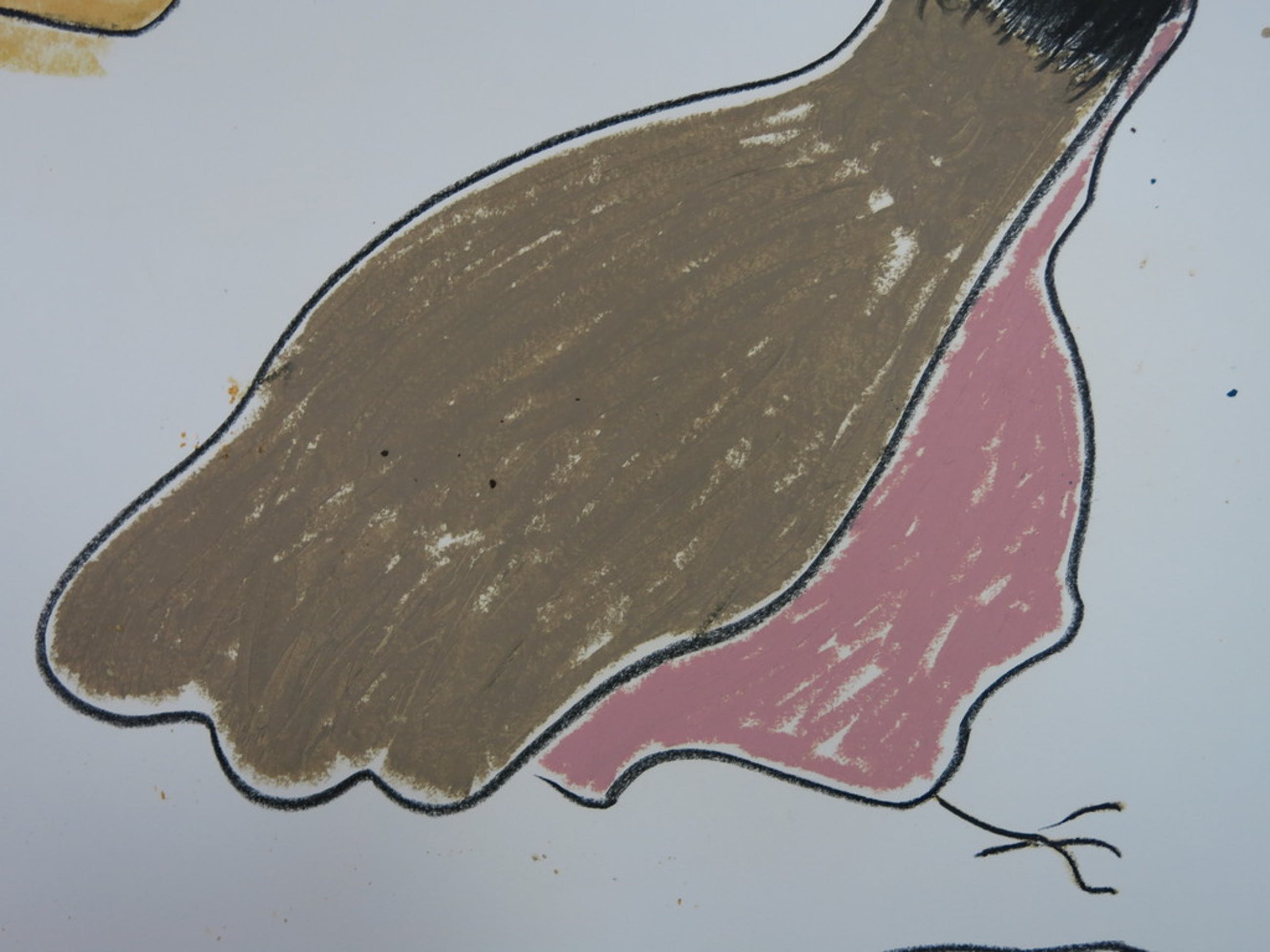 Materiaal: Gemengde techniek, o.a. acryl en krijt op papier