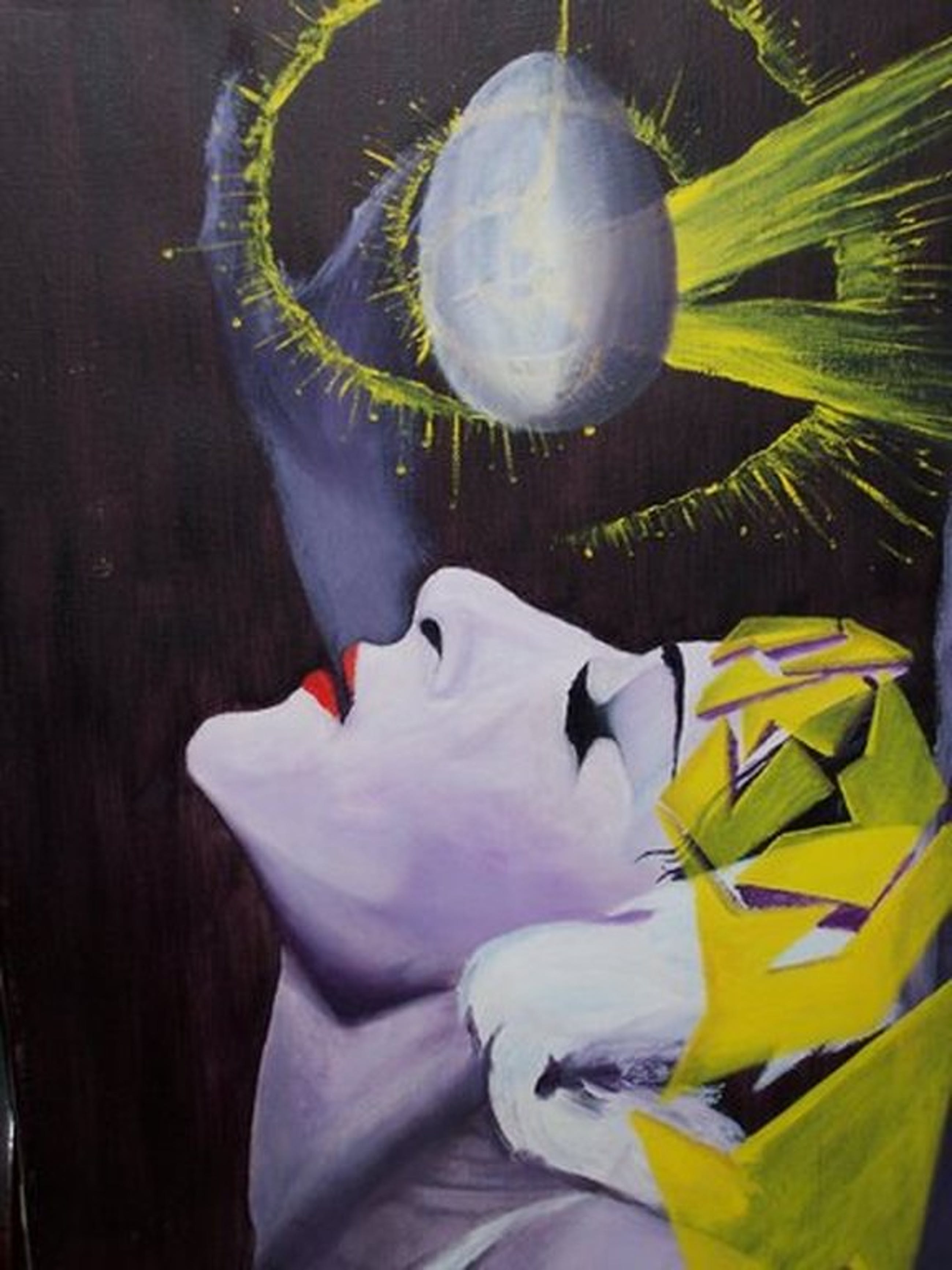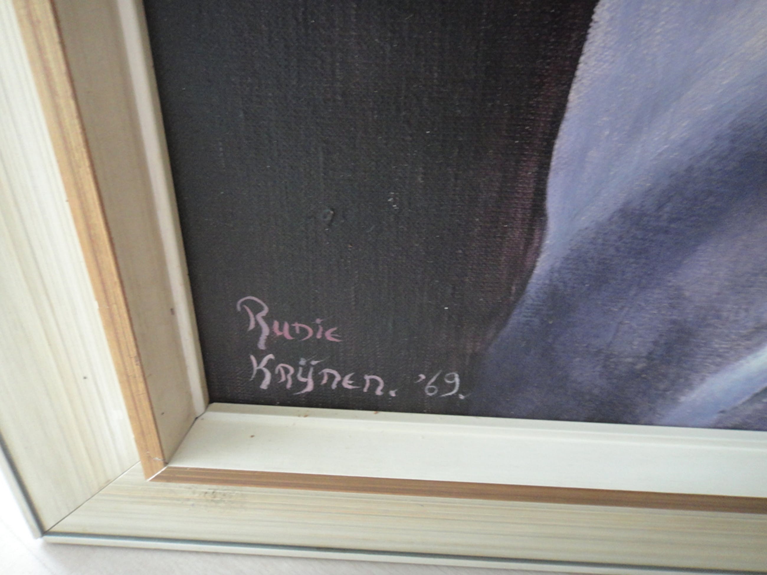 Omschrijving: Dame met ei, gesigneerd en gedateerd rechtsonder: Rudie Krijnen '69.
