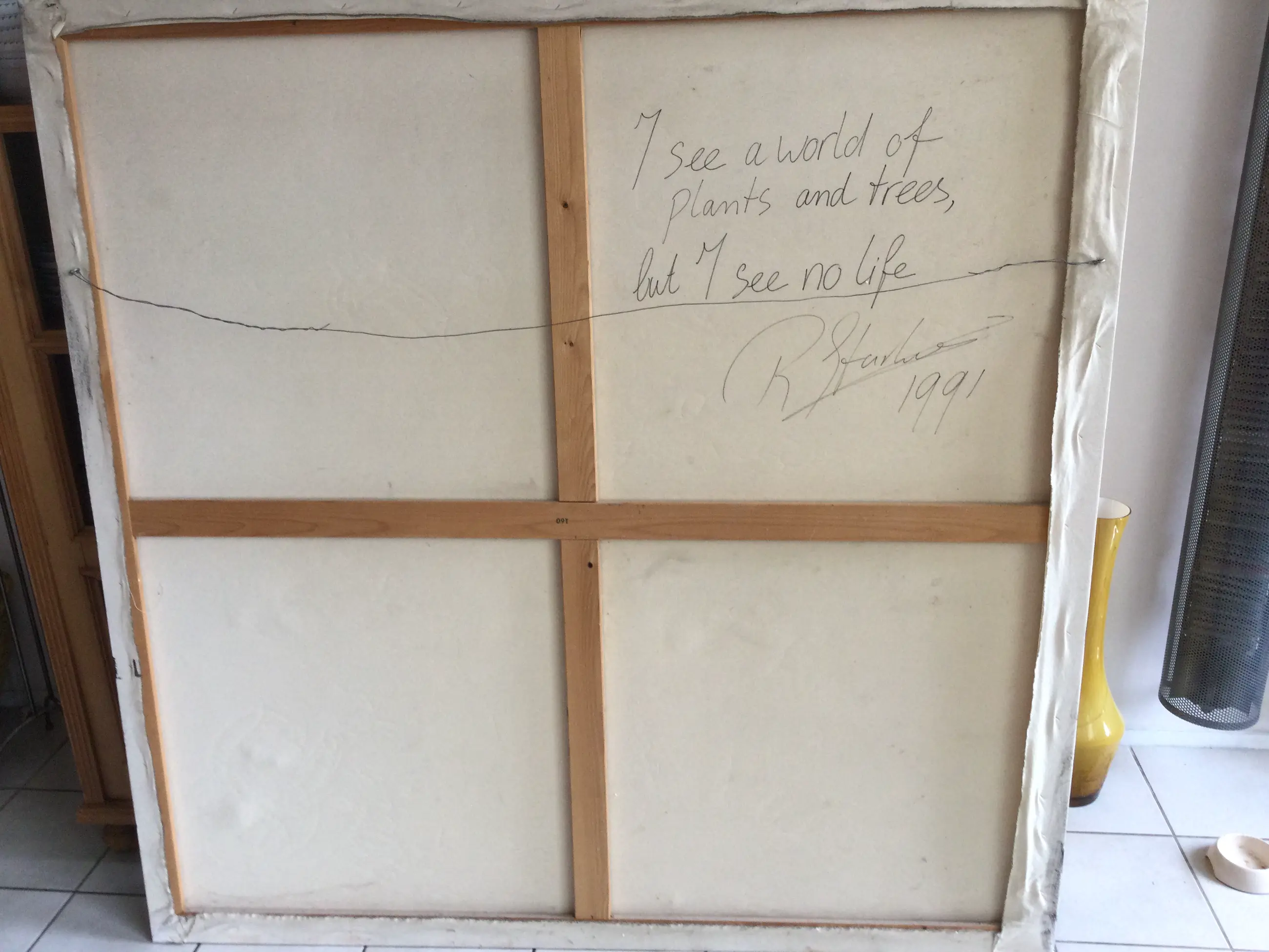 Het schilderij is gesigneerd aan de achterkant en voorzien van bovengenoemde tekst