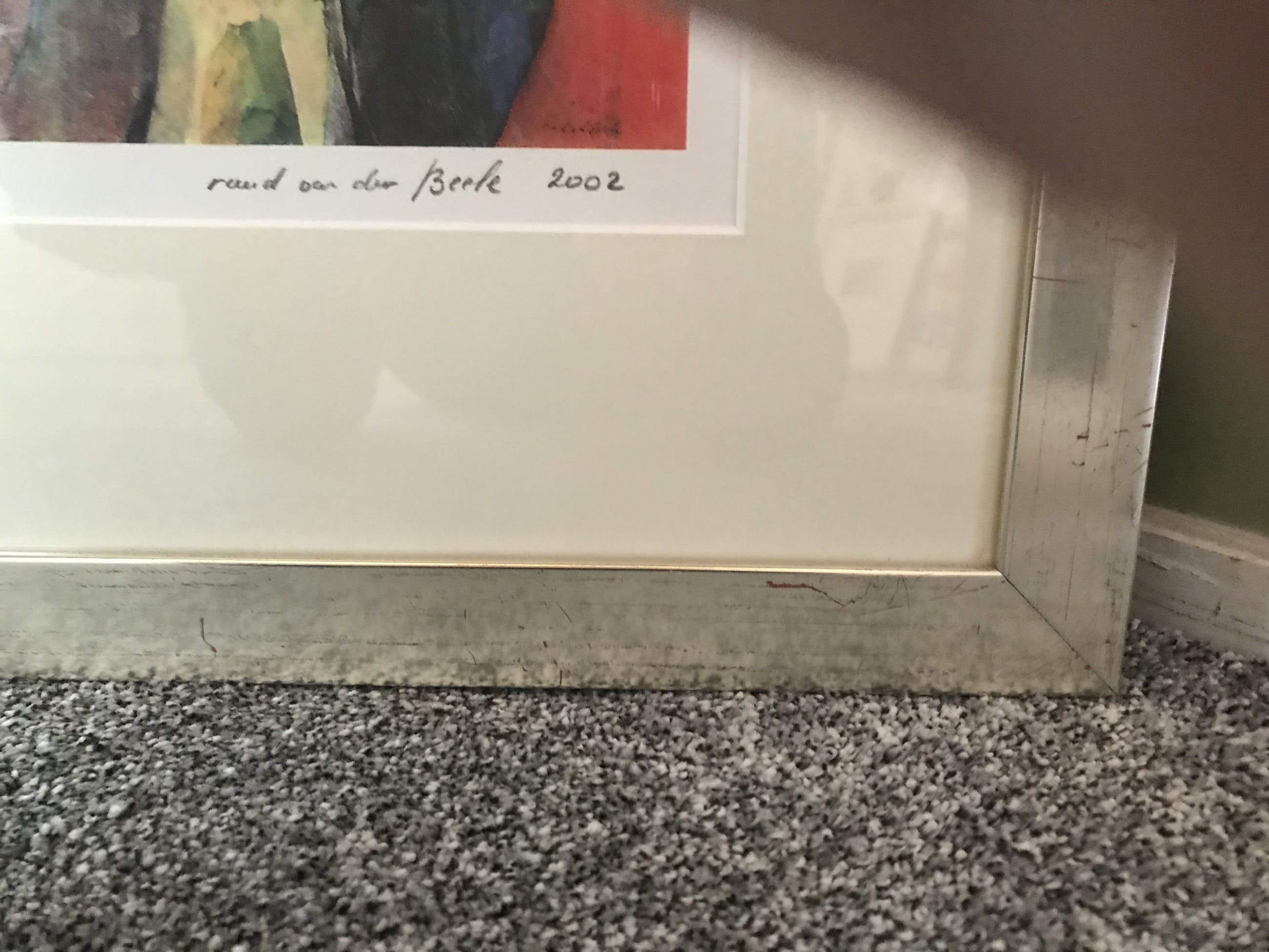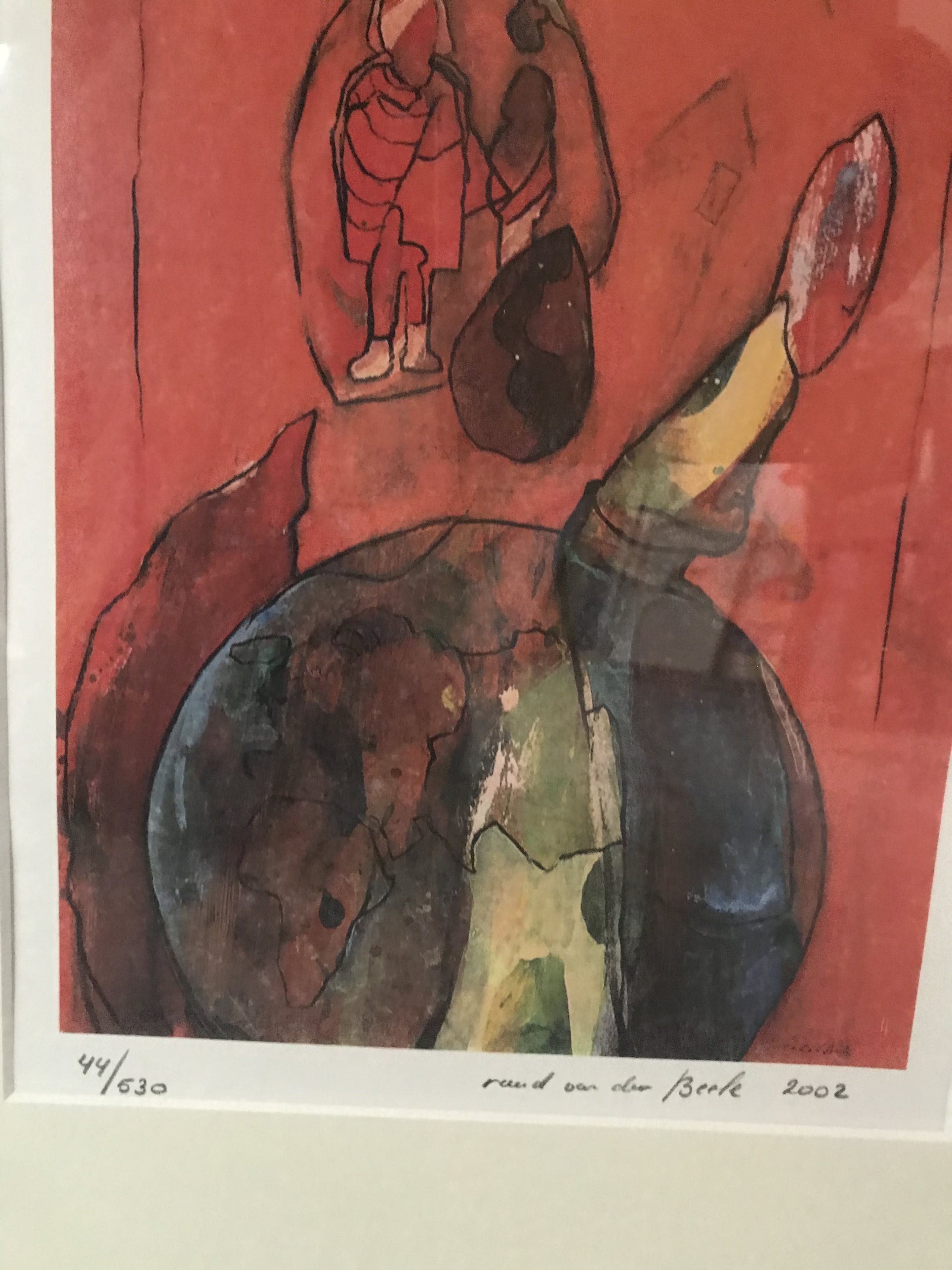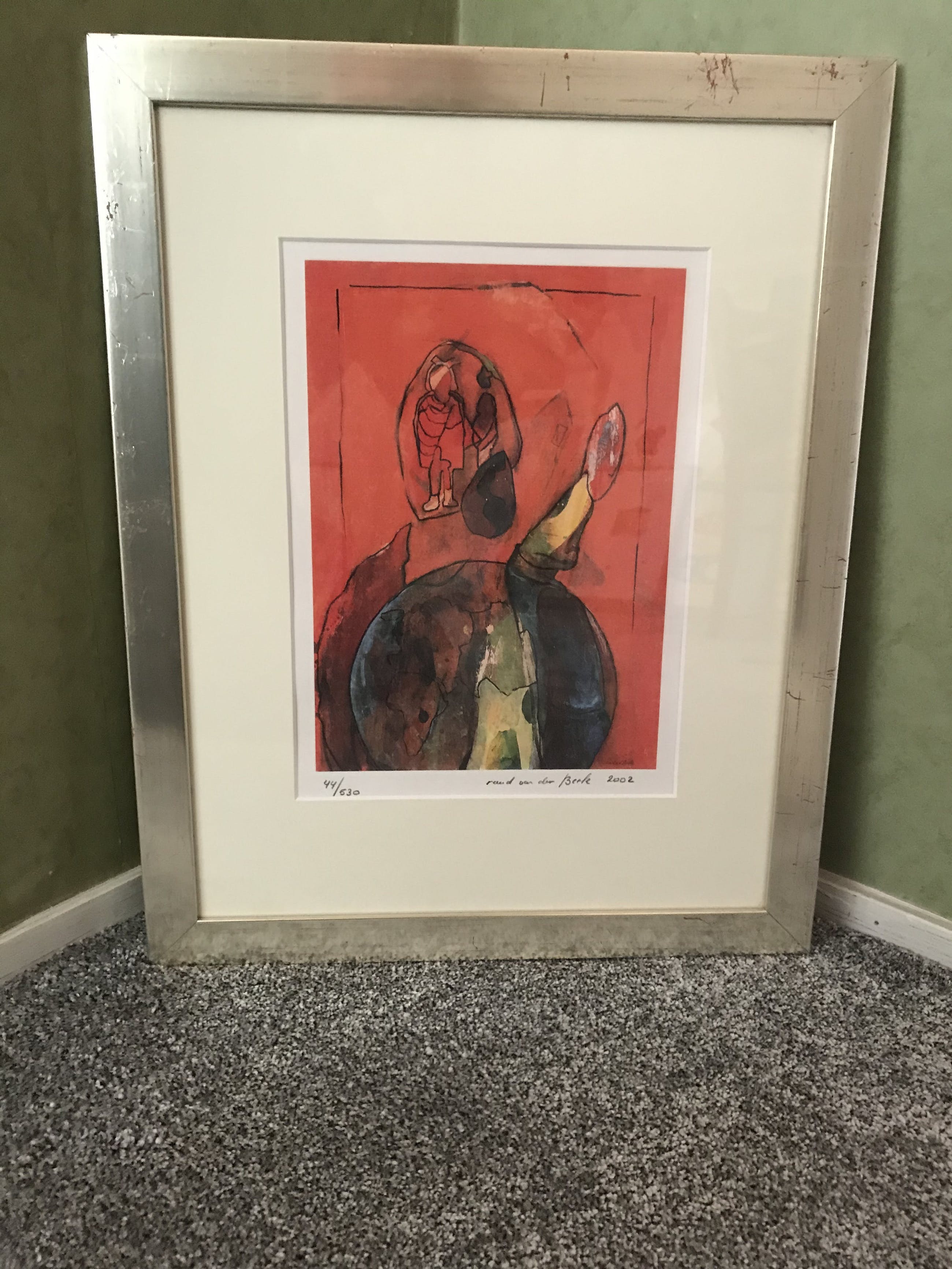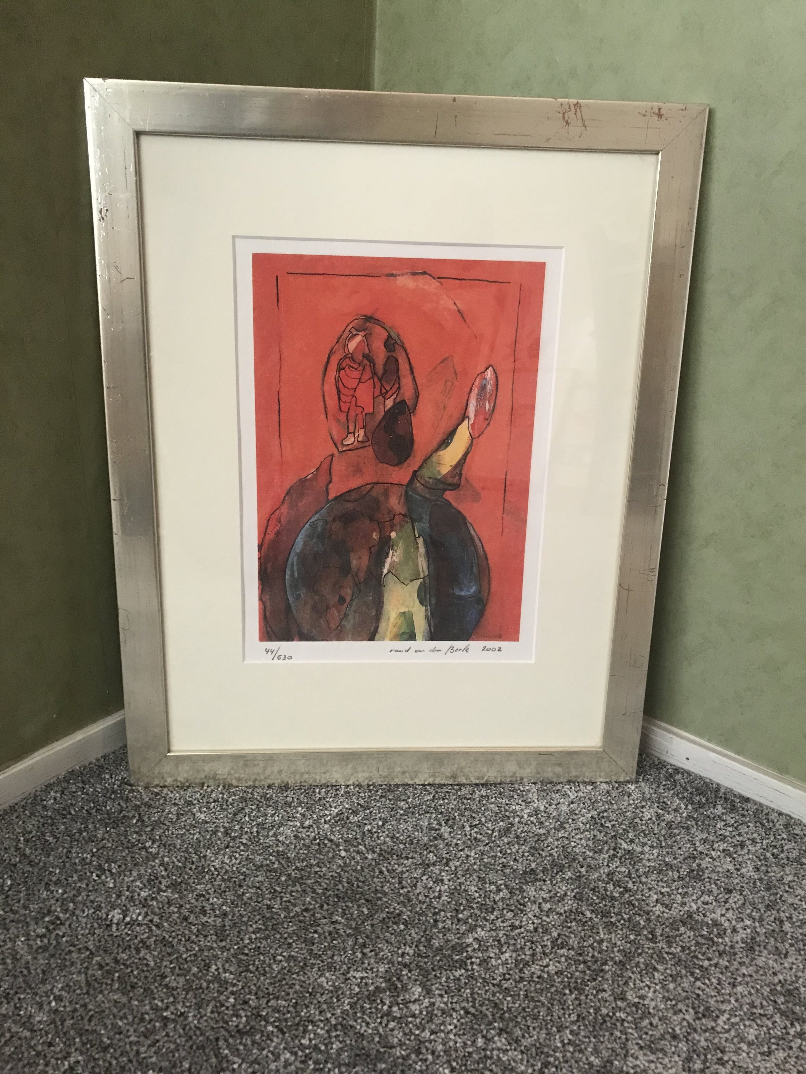 Een prachtige zeefdruk die fraai is ingelijst en zo aan de muur kan komen te hangen. Hand-gesigneerd