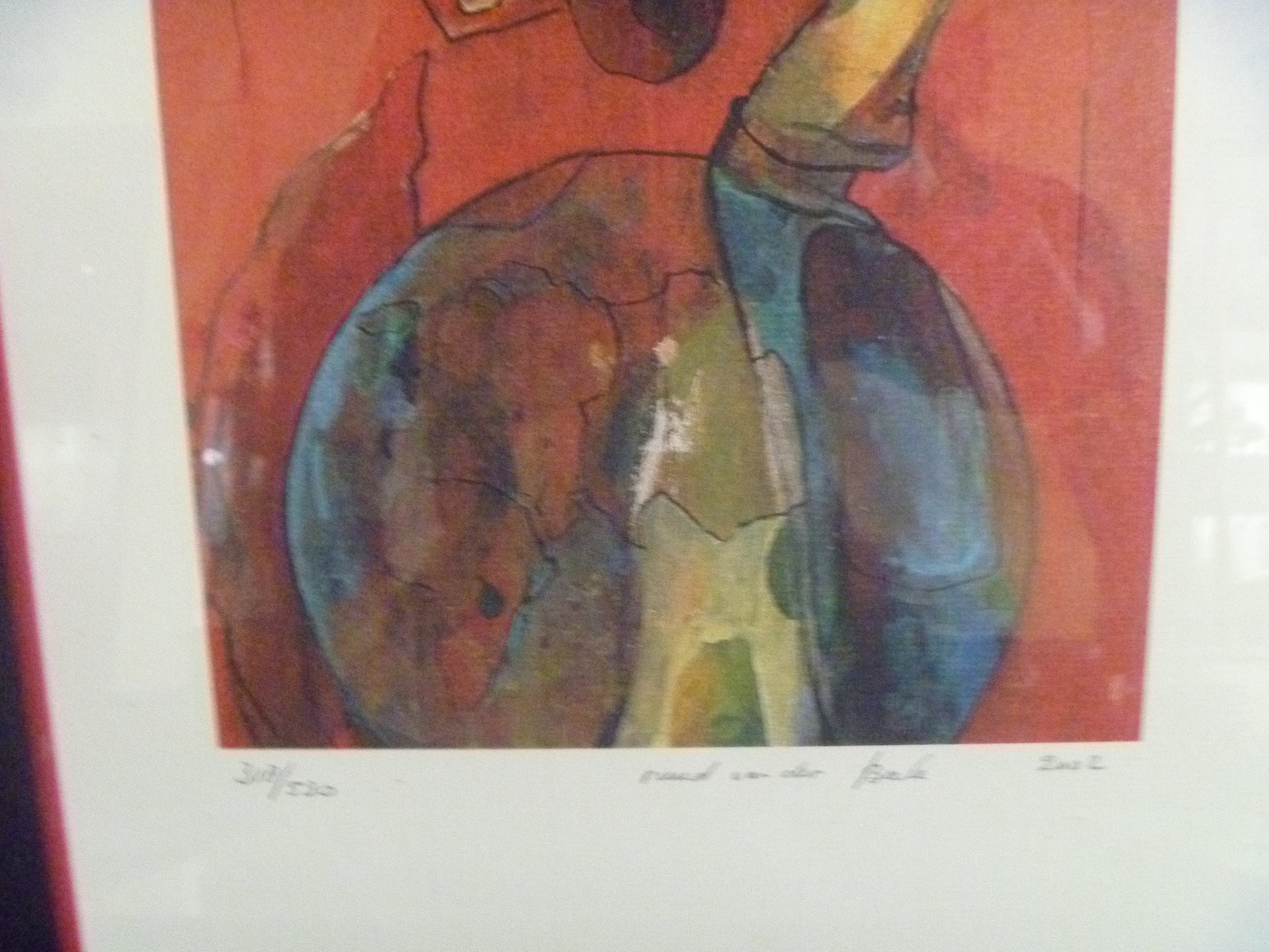 zeer mooie zeefdruk , fraai ingelijst waardoor het werk nog meer eruit springt .
