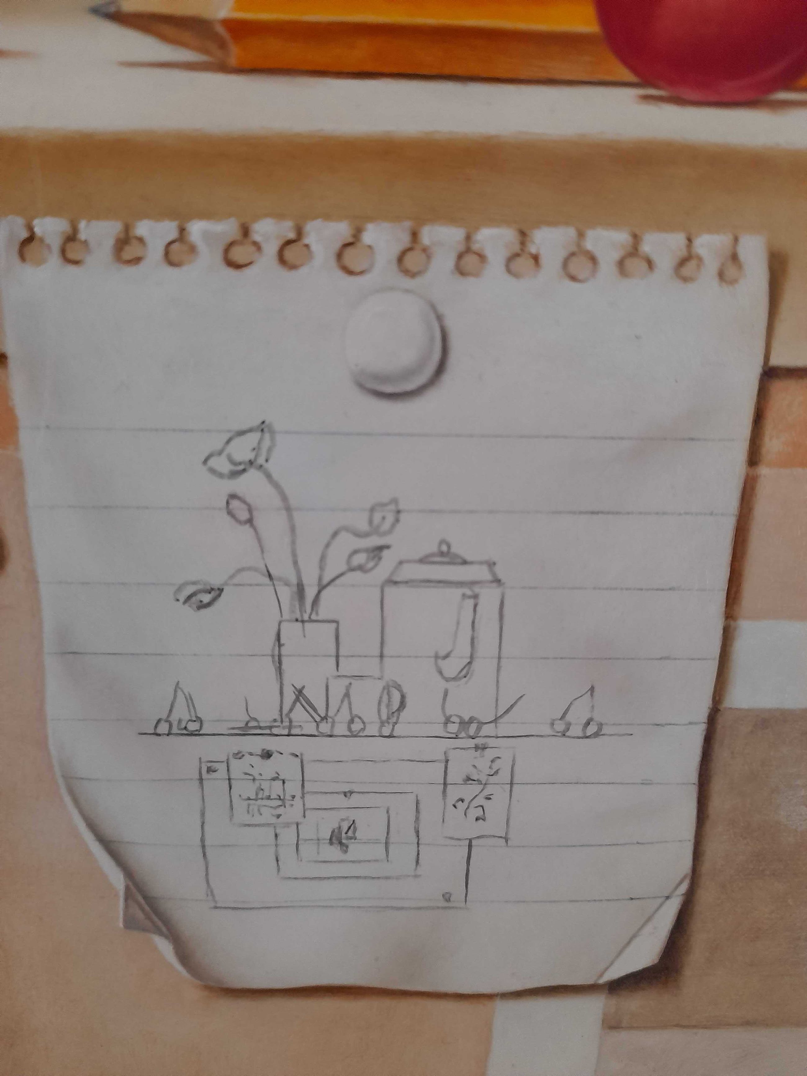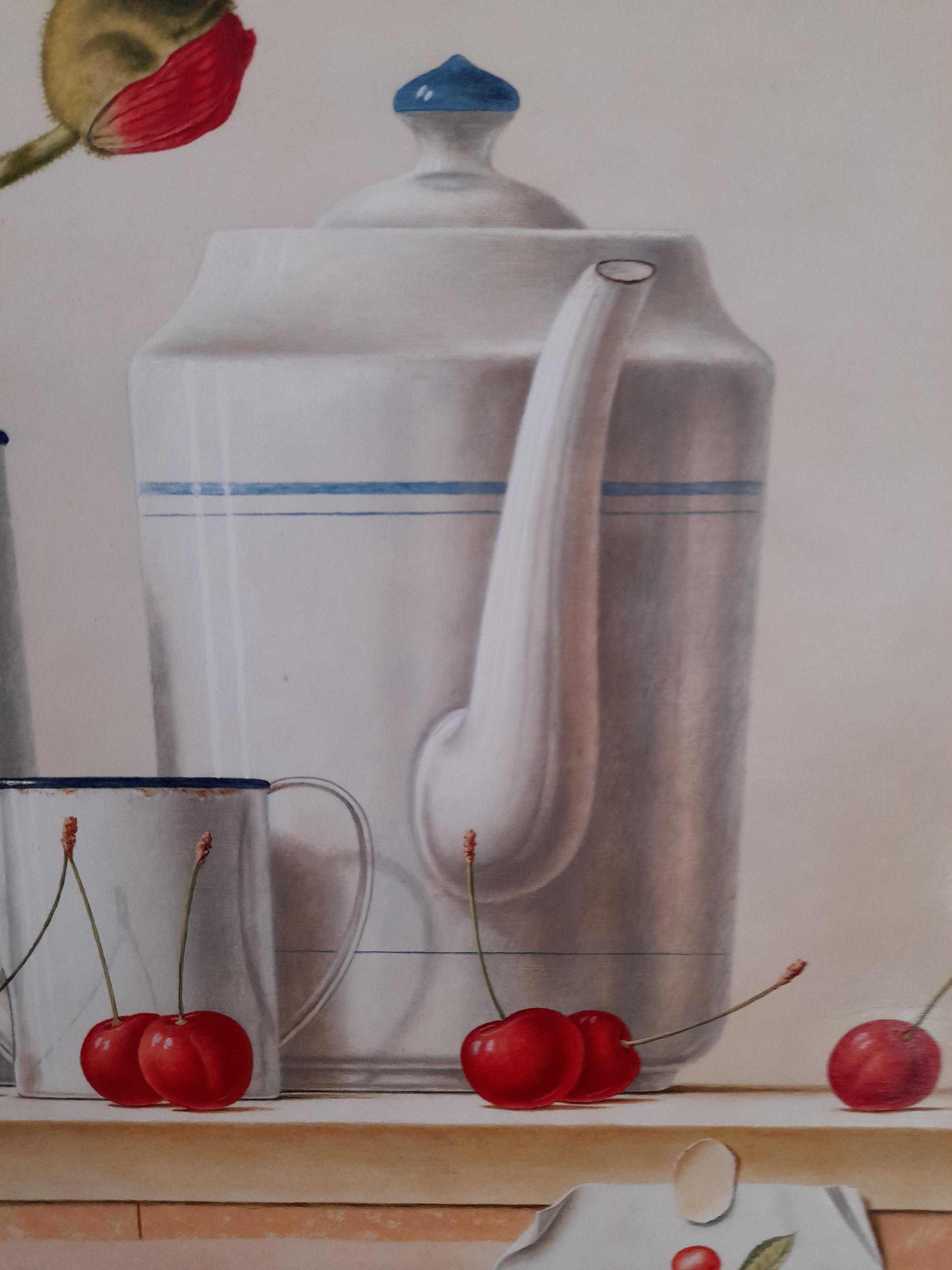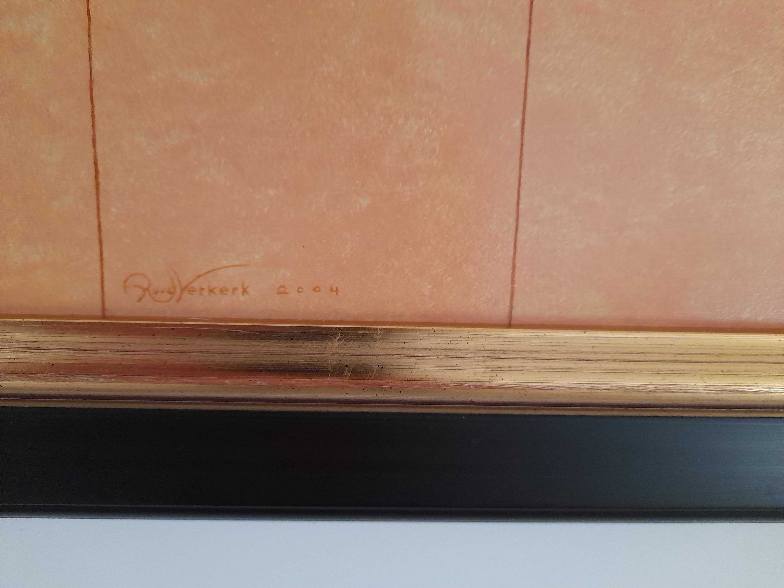 Prachtig werk van de Goudse realist Ruud Verkerk. Geschilderd met een enorme precisie. Op het papieren voorbeeld is het ontwerp geschilderd. Het geeft het werk een speelse dimensie. Afhankelijk van de woonplaats van de koper kan het werk tegen geringe meerkosten bezorgd worden.