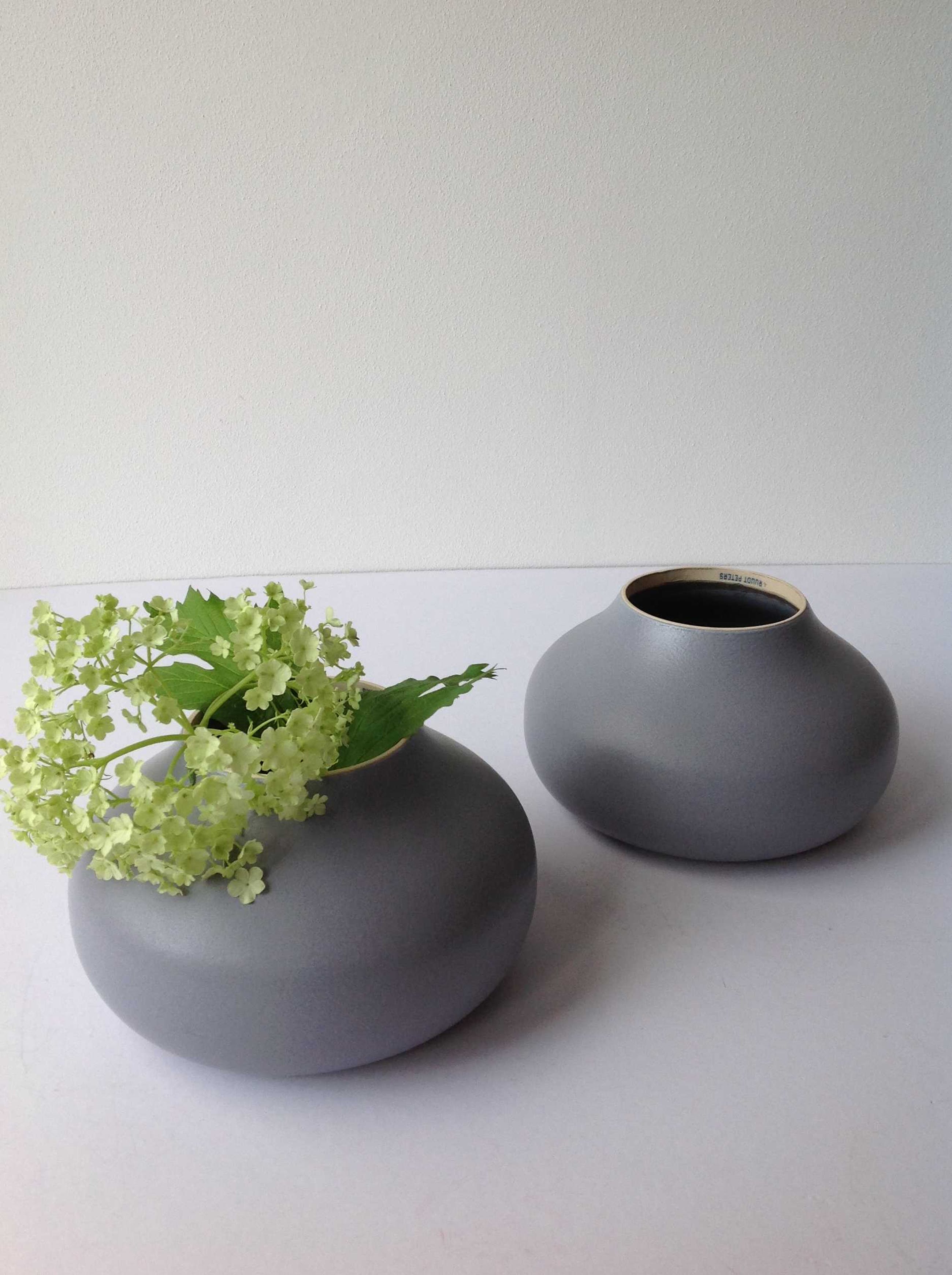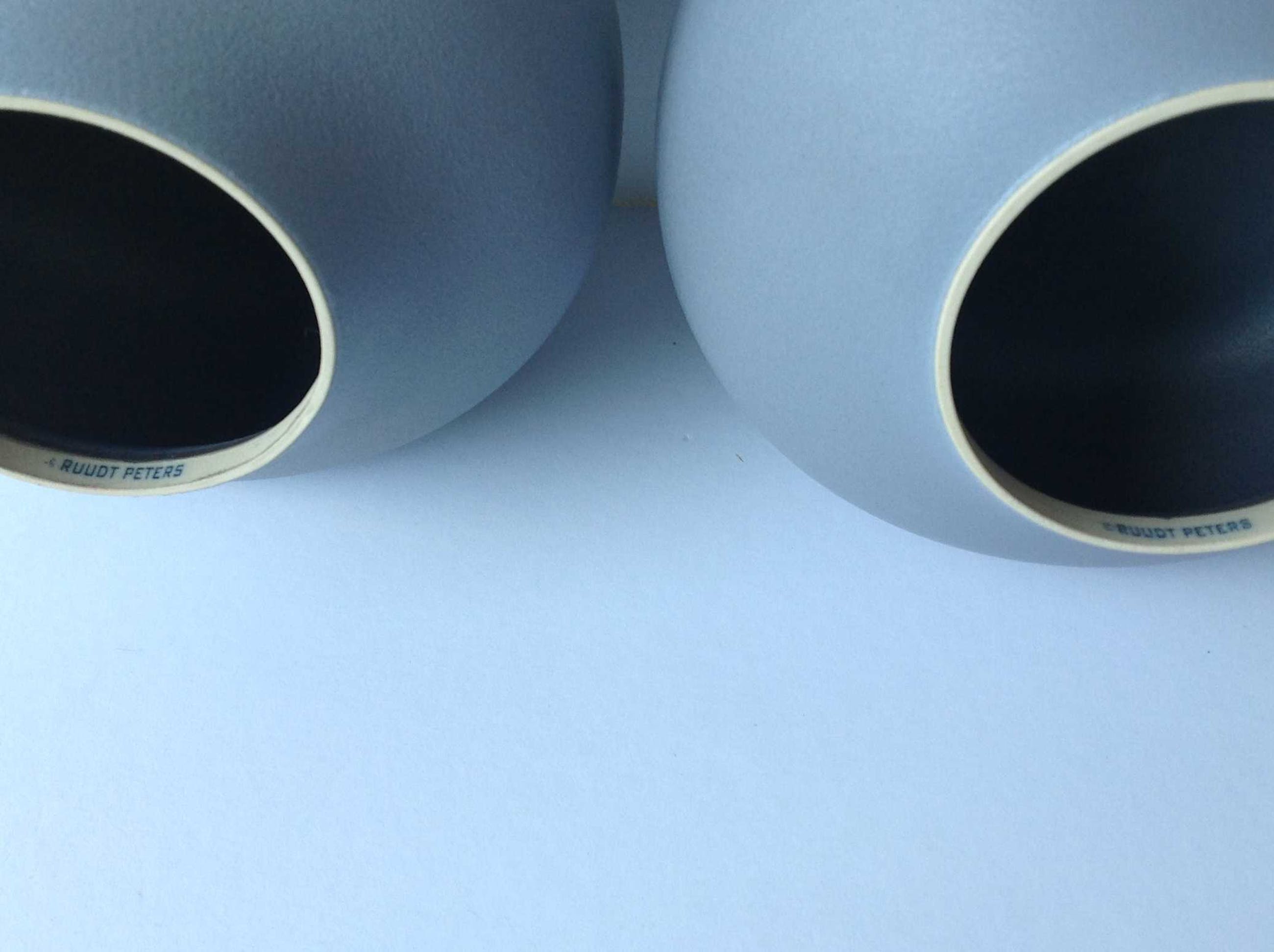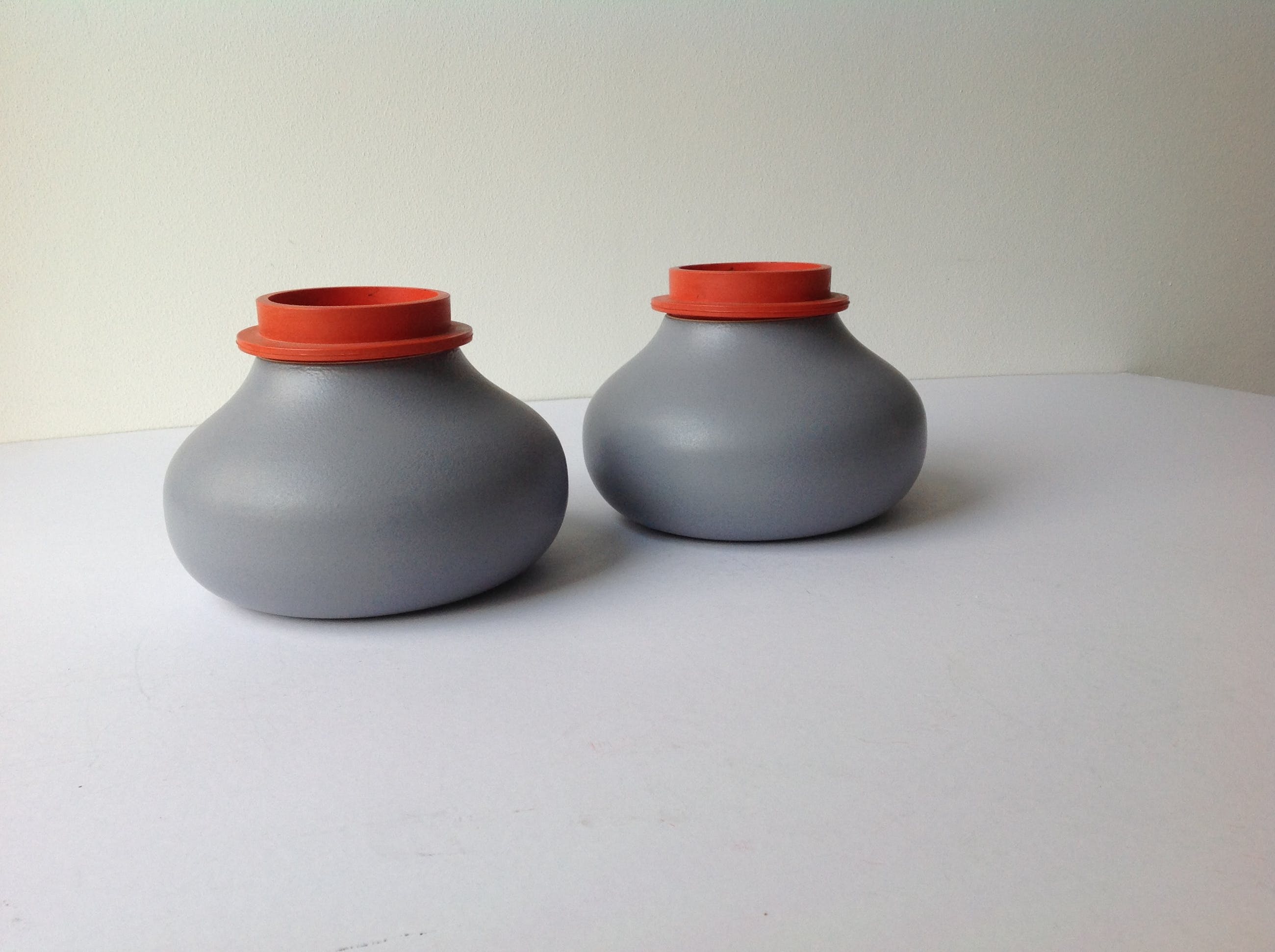 Een bijzonder, uitdagend ontwerp dat nooit in productie is genomen door Tichelaar in Makkum omdat het technisch erg moeilijk zo niet onmogelijk was, een container te maken met steeds dezelfde opening. (zodat het rubberen deksel er op paste). Daarom zijn er zijn er maar 30 prototypes vervaardigd. ( 15 sets van twee containers, 10 wit en 5 grijs)