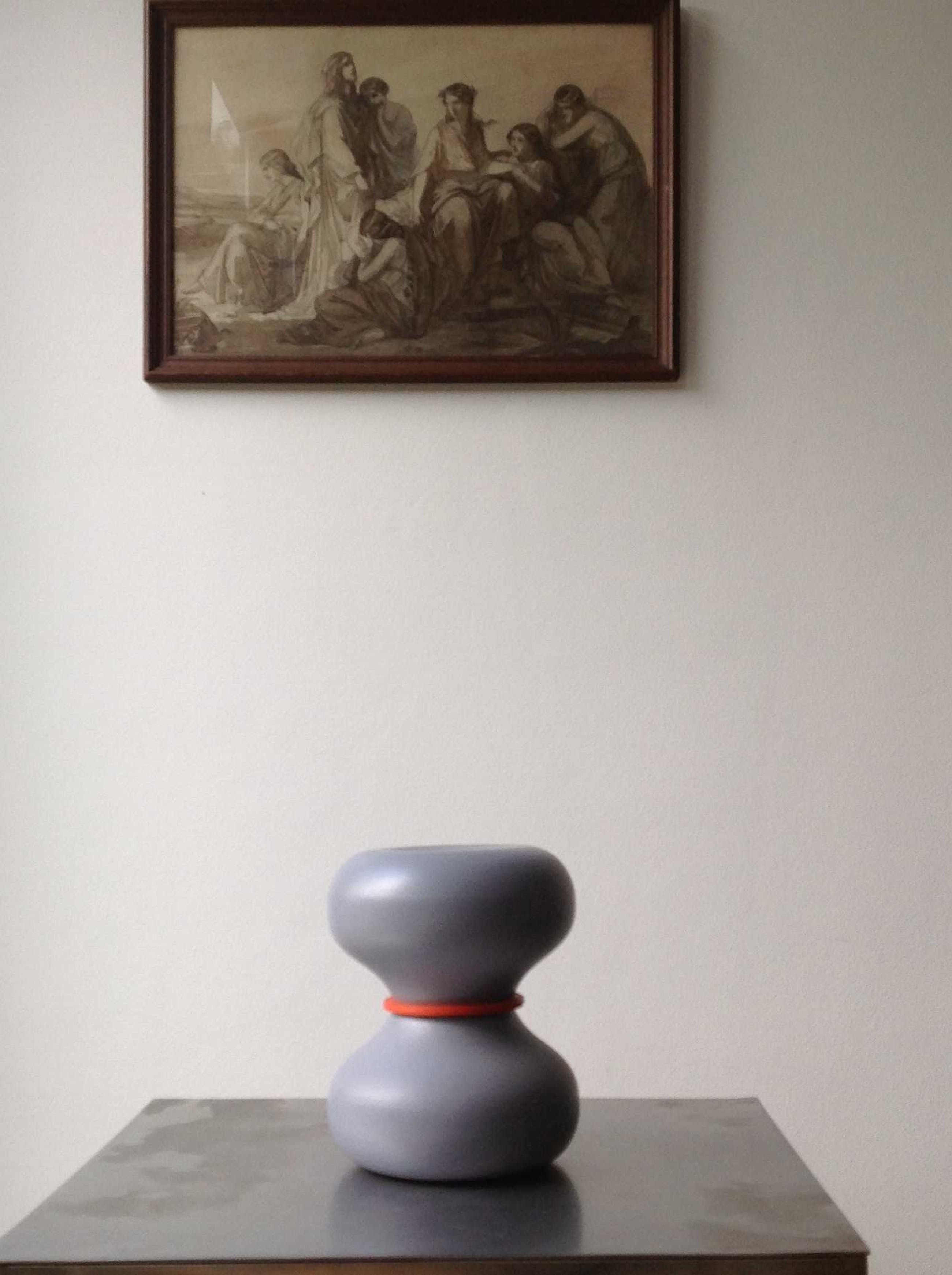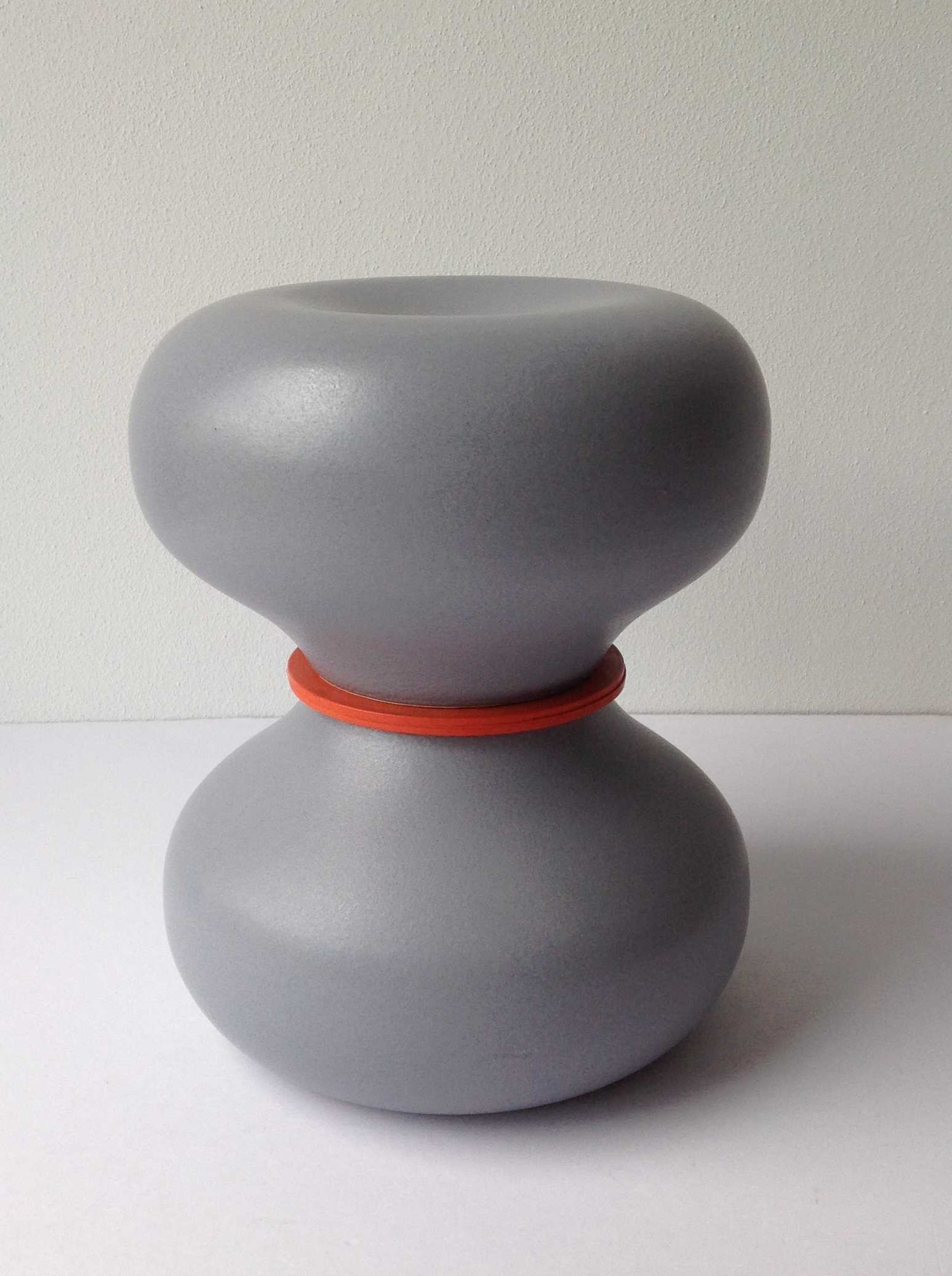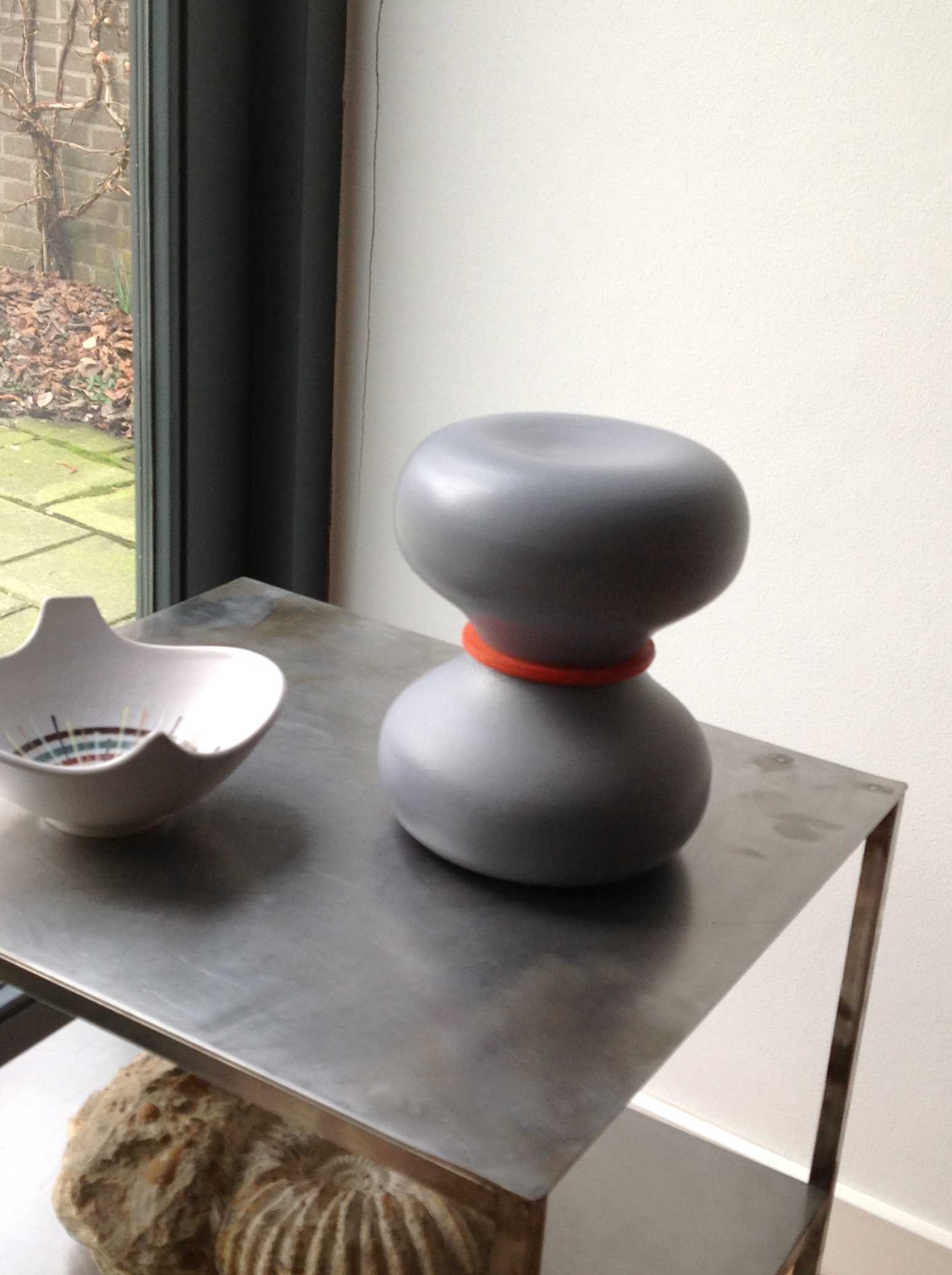 Ruudt Peters heeft in 2000/2001 in samenwerking metTichelaar in Makkum een container van steengoed ontworpen met een deksel van oranjerood rubber.
