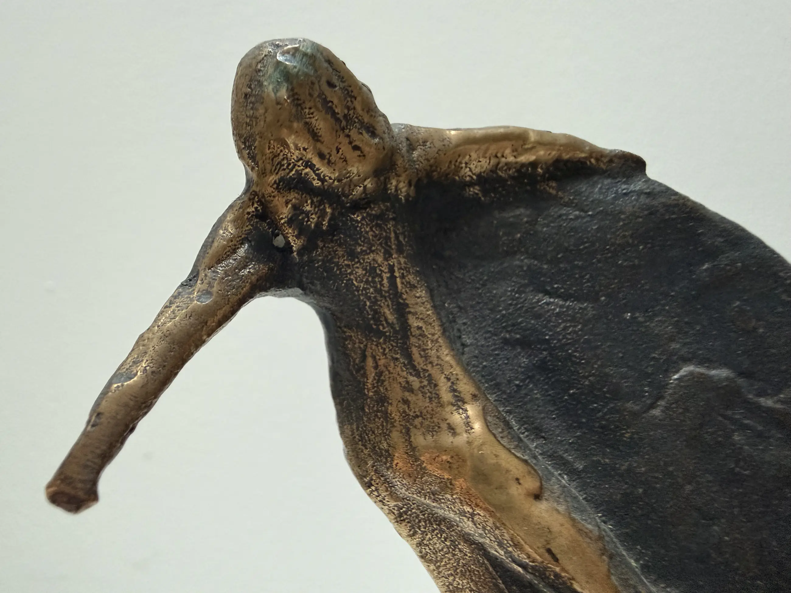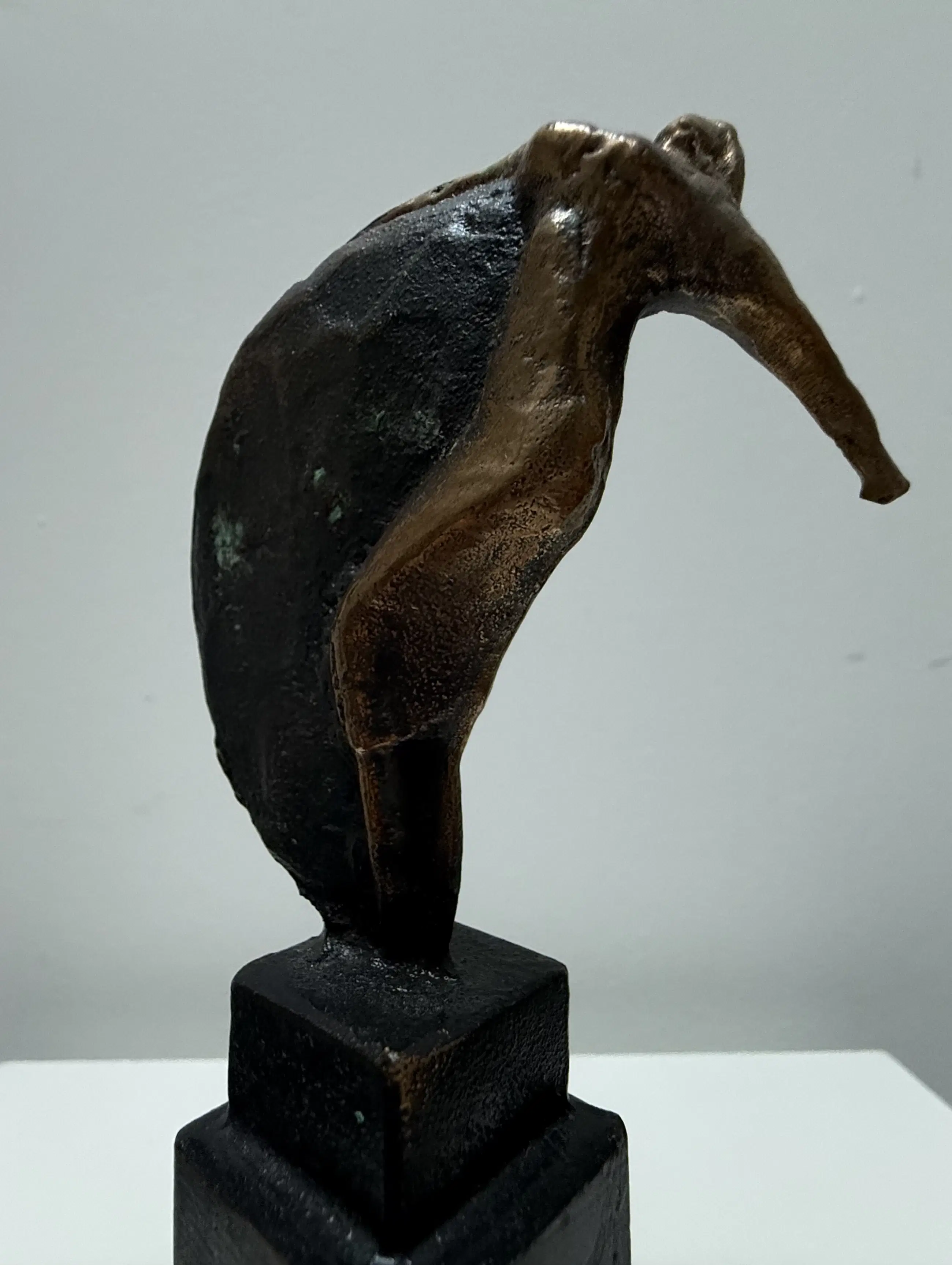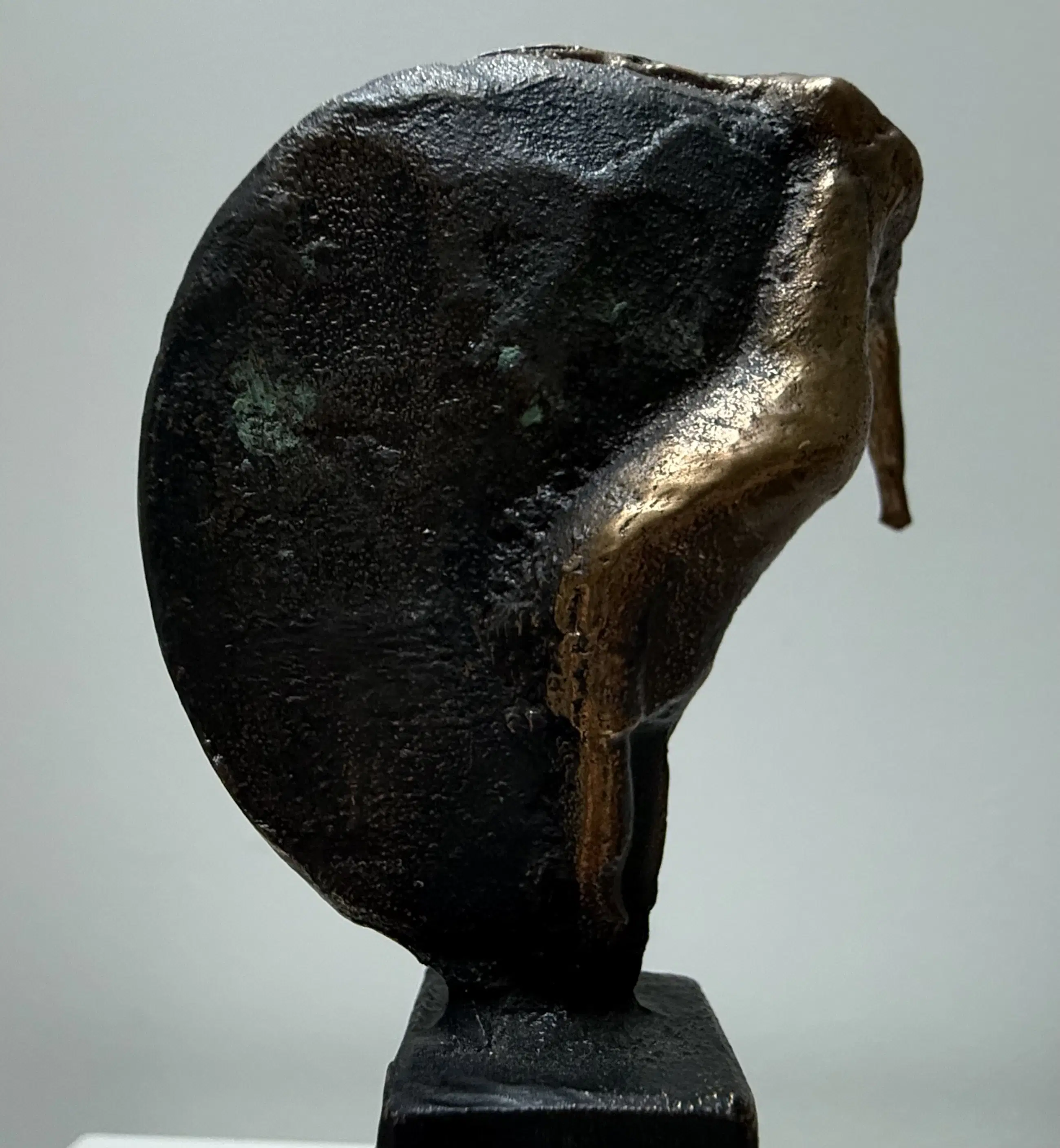 Mooi vormgegeven naakt vrouwfiguur met een halve cirkel. Het sculptuur is volledig van brons.