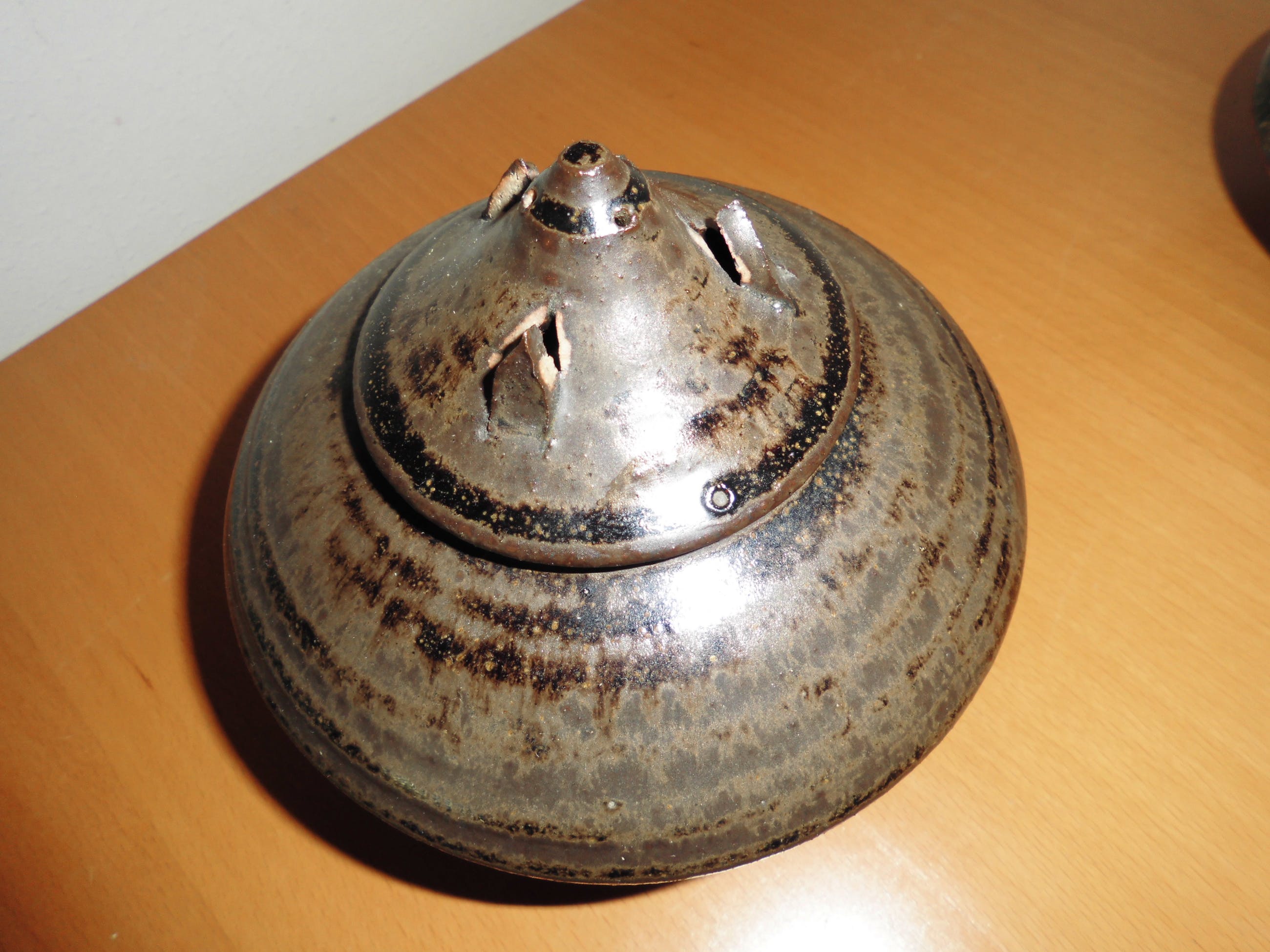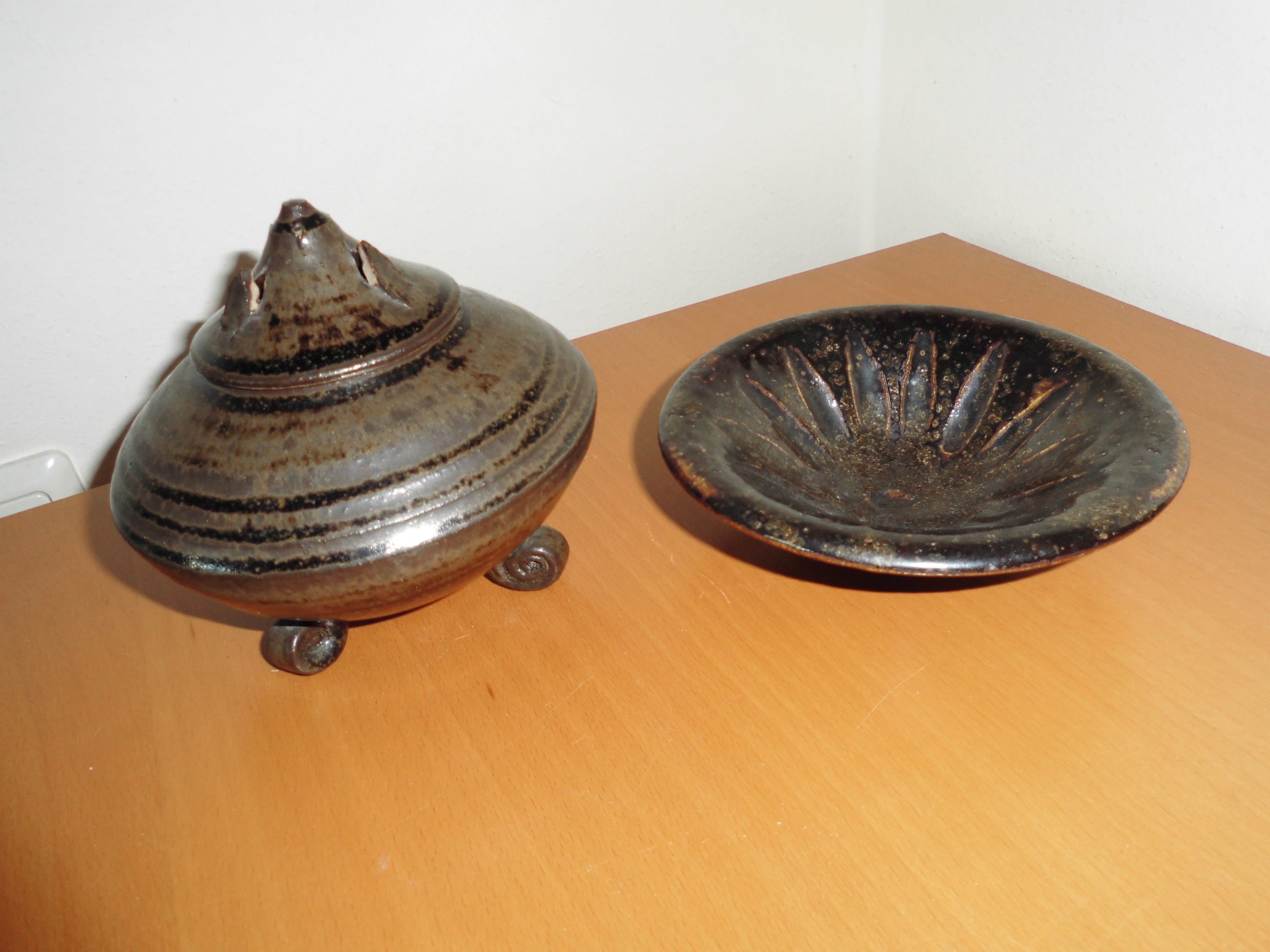 beide bruin geglazuurd en gemerkt onderop