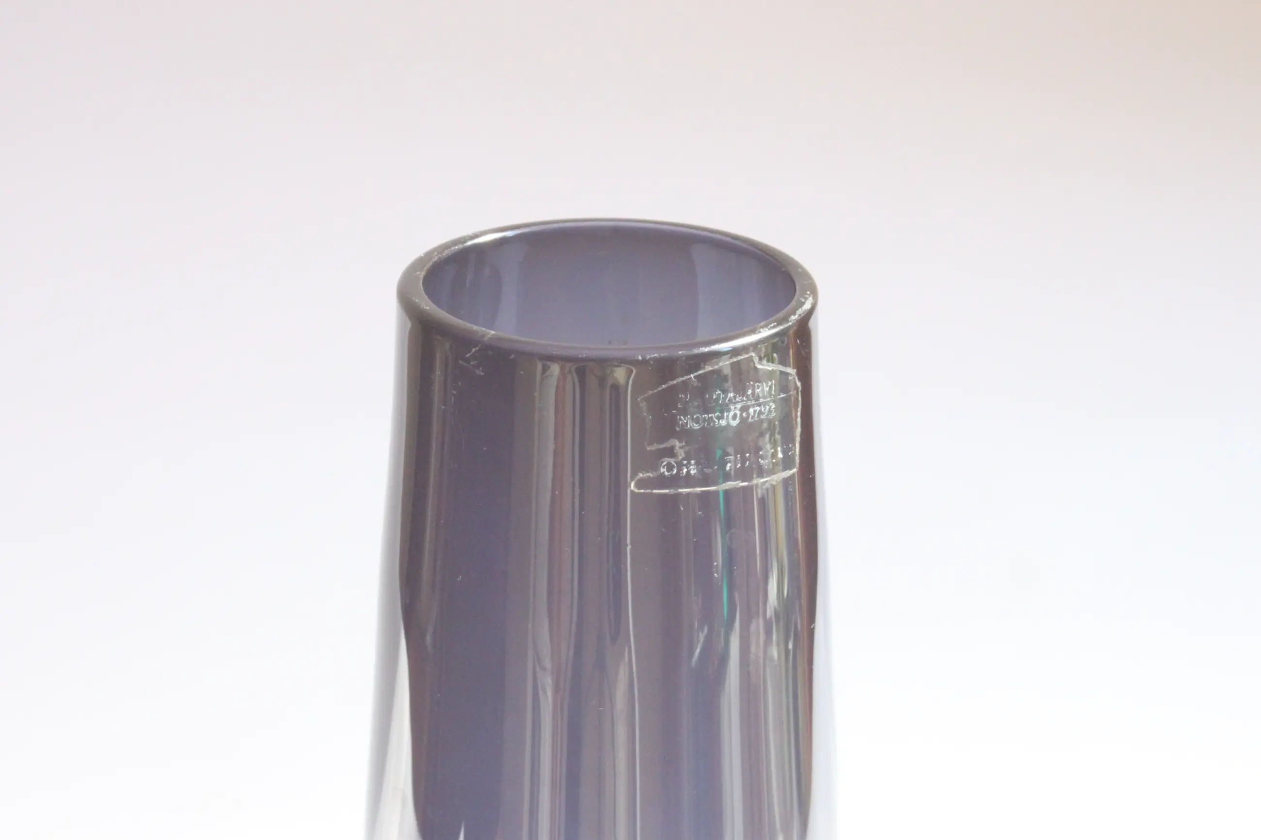 Het glasdorp Nuutajarvi werd in 1793 gesticht door Jacob Wilhelm de Pont en Harald Furnhjelm. De locatie was perfect vanwege de bosrijkdommen, omdat het bakken van het glas veel brandhout vereiste. Van de vele glasfabrieken van zijn tijd onderscheidt Nuutajarvi zich nog steeds van de anderen. Het was de oudste nog werkende glasfabriek in Finland tot het in 1988 fuseerde met Iittala. Vaasje in goede vintage staat, geen barsten of chips. Wat waas of aanslag aan de binnenkant.