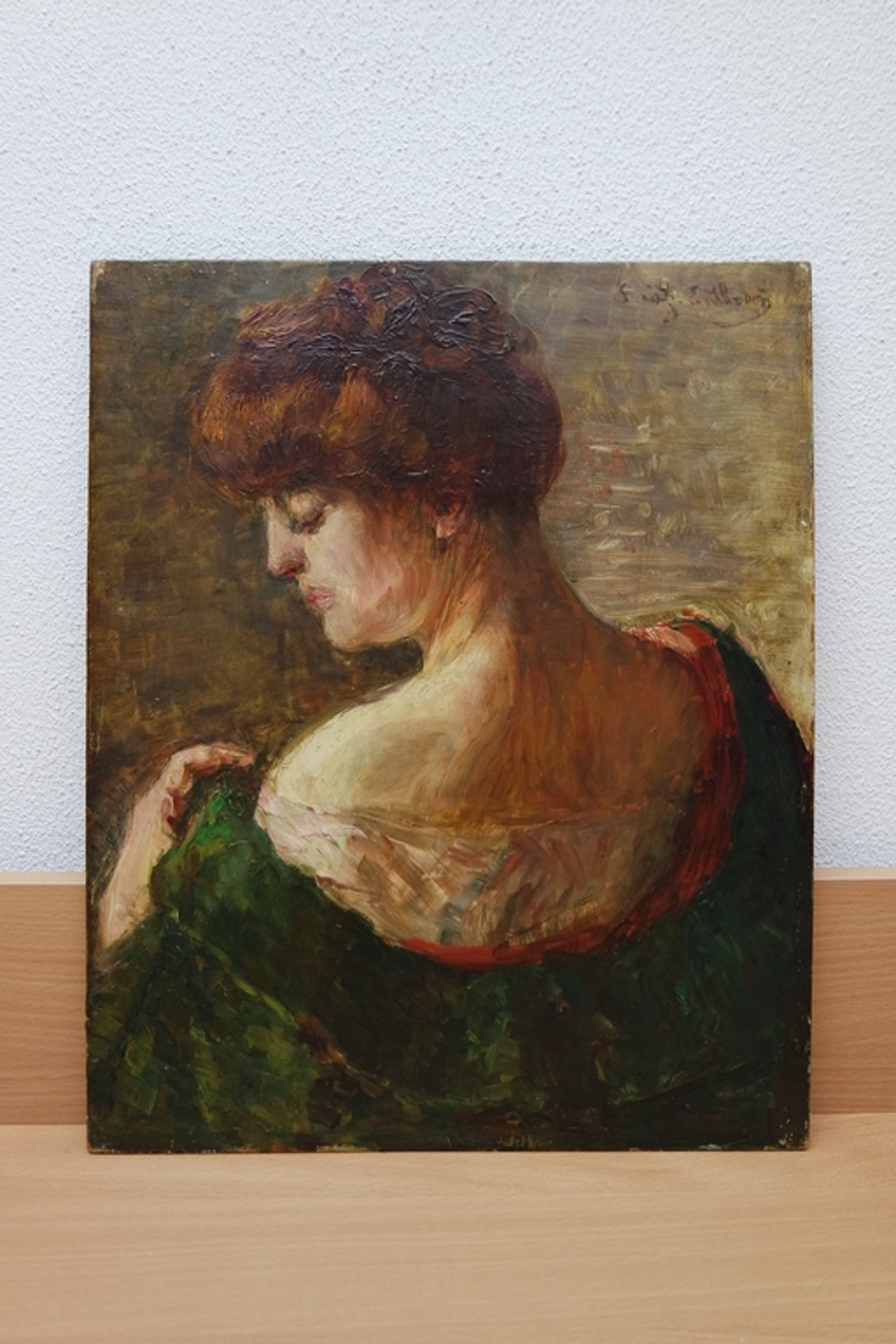 Een prachtig portretschilderij van de kunstenares Saartje Hélène CATZ-ENTHOVEN (1866-1955). Niet gelijst. Gesigneerd rechts boven. Afmetingen paneel: 46 cm. x 37 cm. Conditie: heel goed. Het kunstwerk wordt goed gepakt en gratis (binnen Nederland) verzonden. De verzendkosten naar Belgie zijn verlaagd. Afhalen is uiteraard ook mogelijk. Info: www.rkd.nl/enthoven.