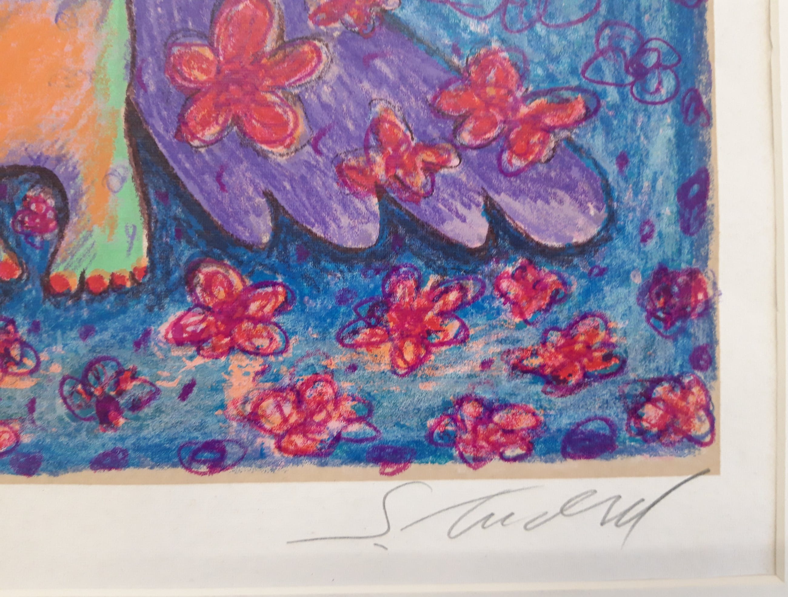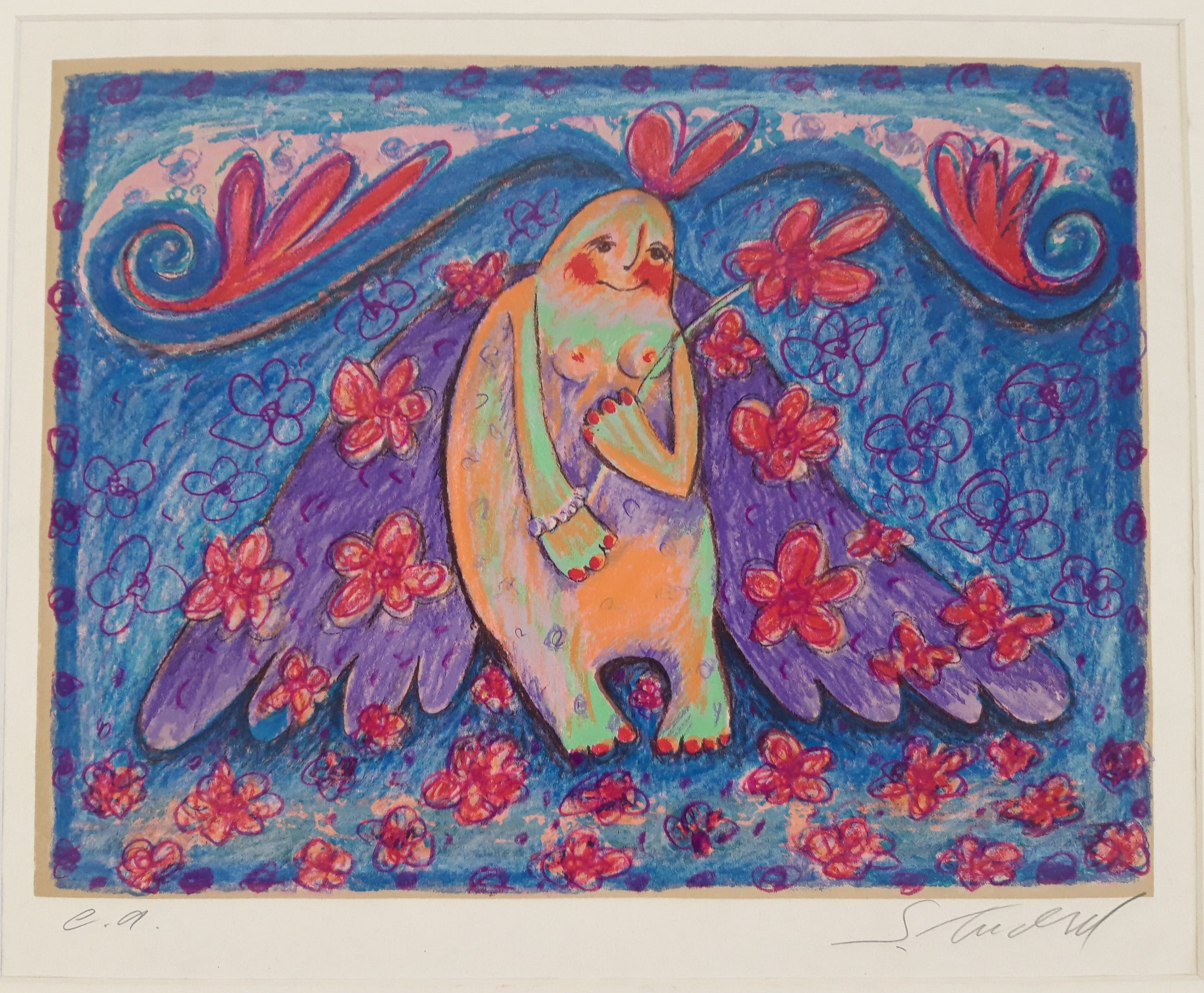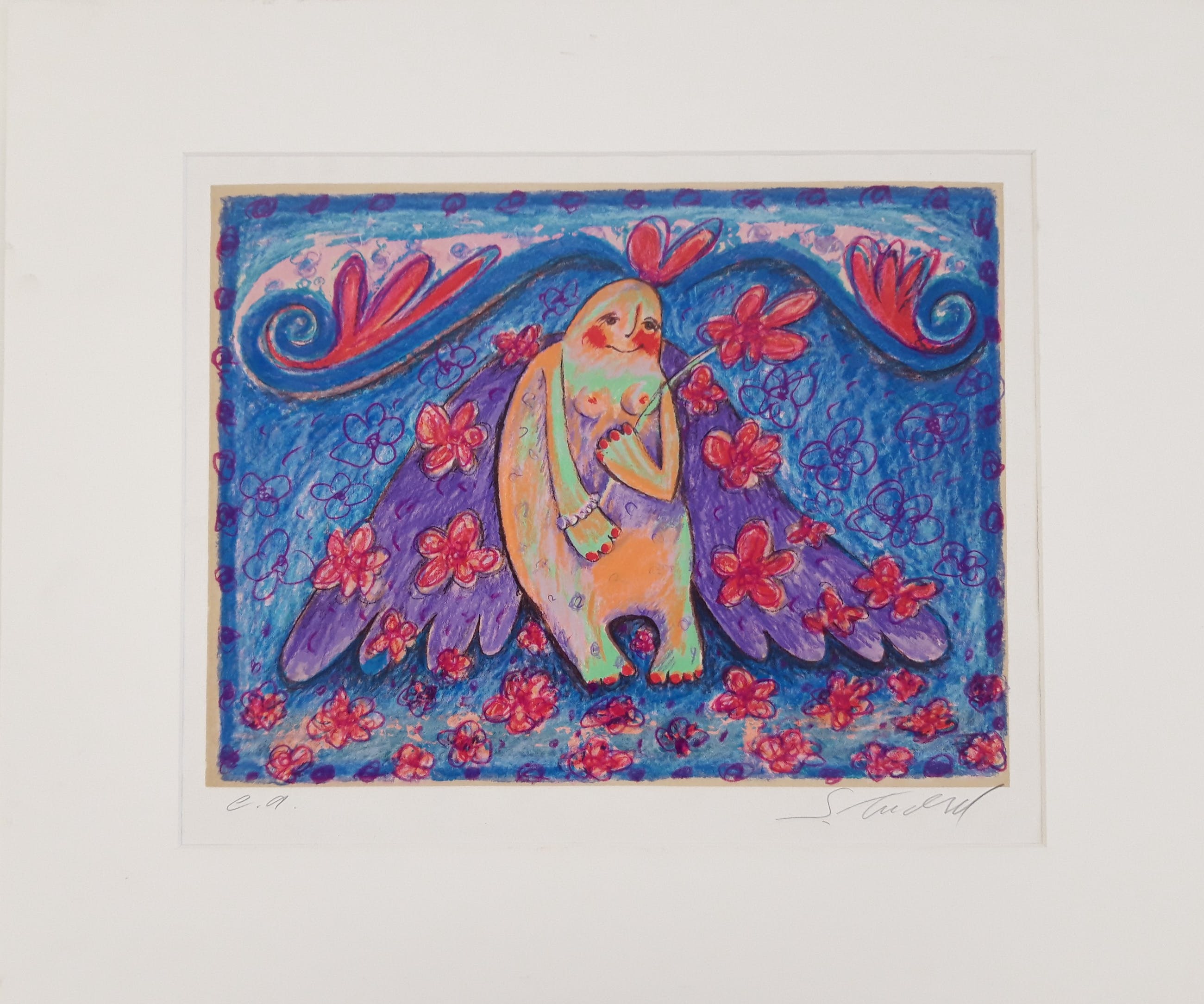 Sabine Tuchel (Dresden, 1968) woont en werkt sinds 1999 in Baarlo. Haar feeërieke zeefdrukken bevatten sprookjesachtige figuren vol kleur en kinderlijke levendigheid.