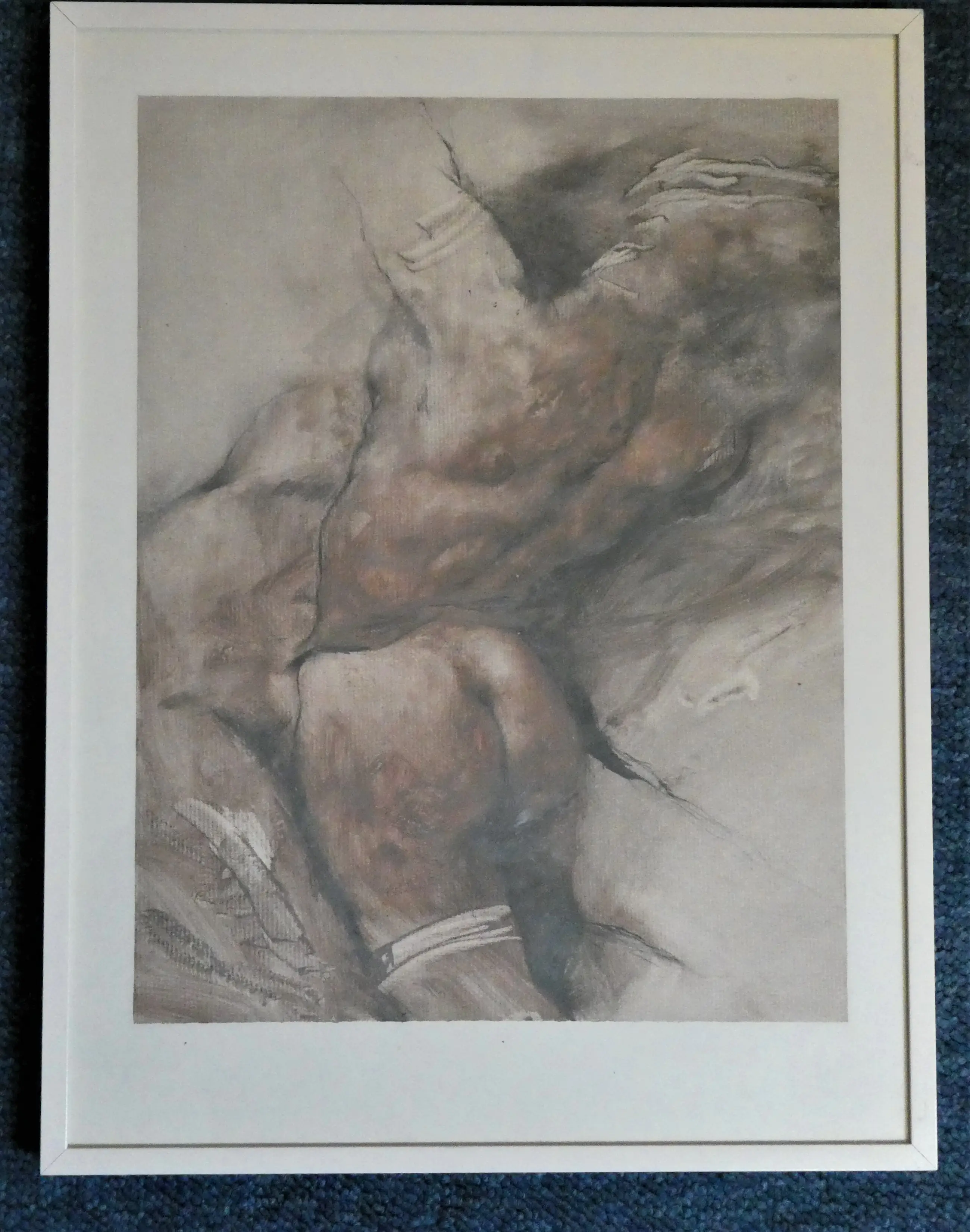 Figuur is op de rug gezien . Heeft wel iets weg van Michelangelo .Met vlotte maar zeer beheerste streken met de kwast neergezet .