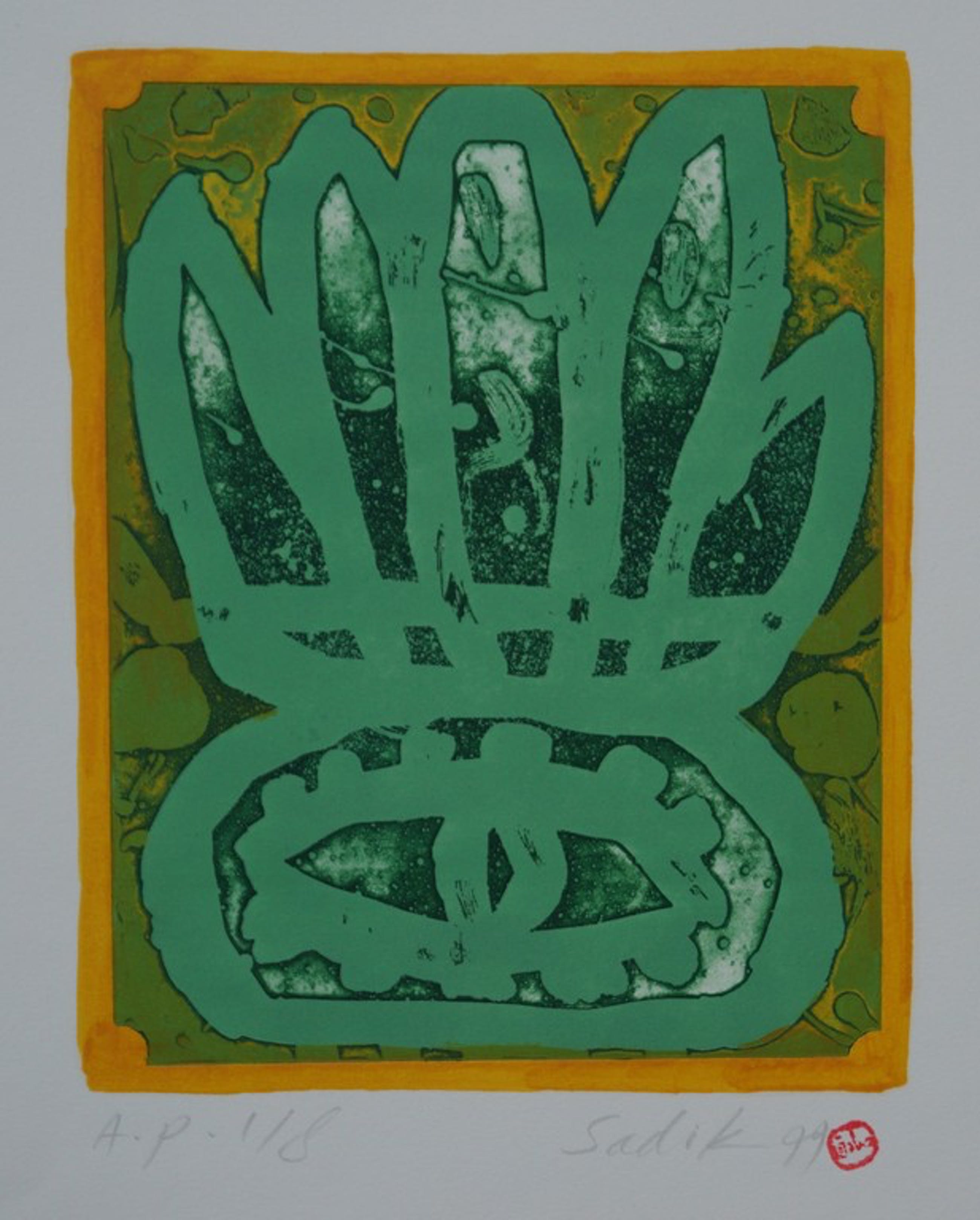 Bijzonder mooie gesigneerde en gestempelde ets van Sadik Kwaish Alfaji