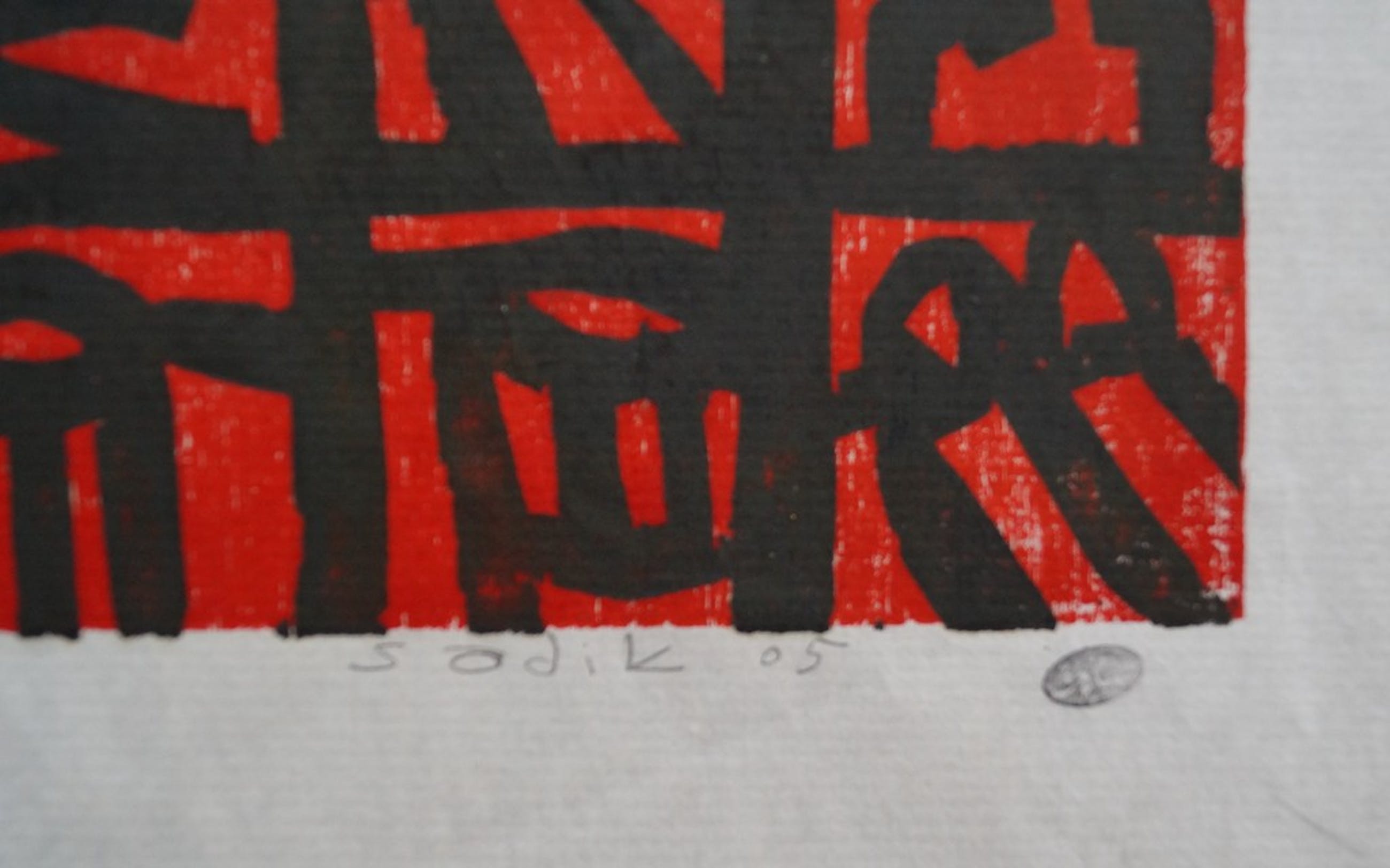 Mooie zeefdruk op rijstpapier van Sadik Kwaish Alfaji