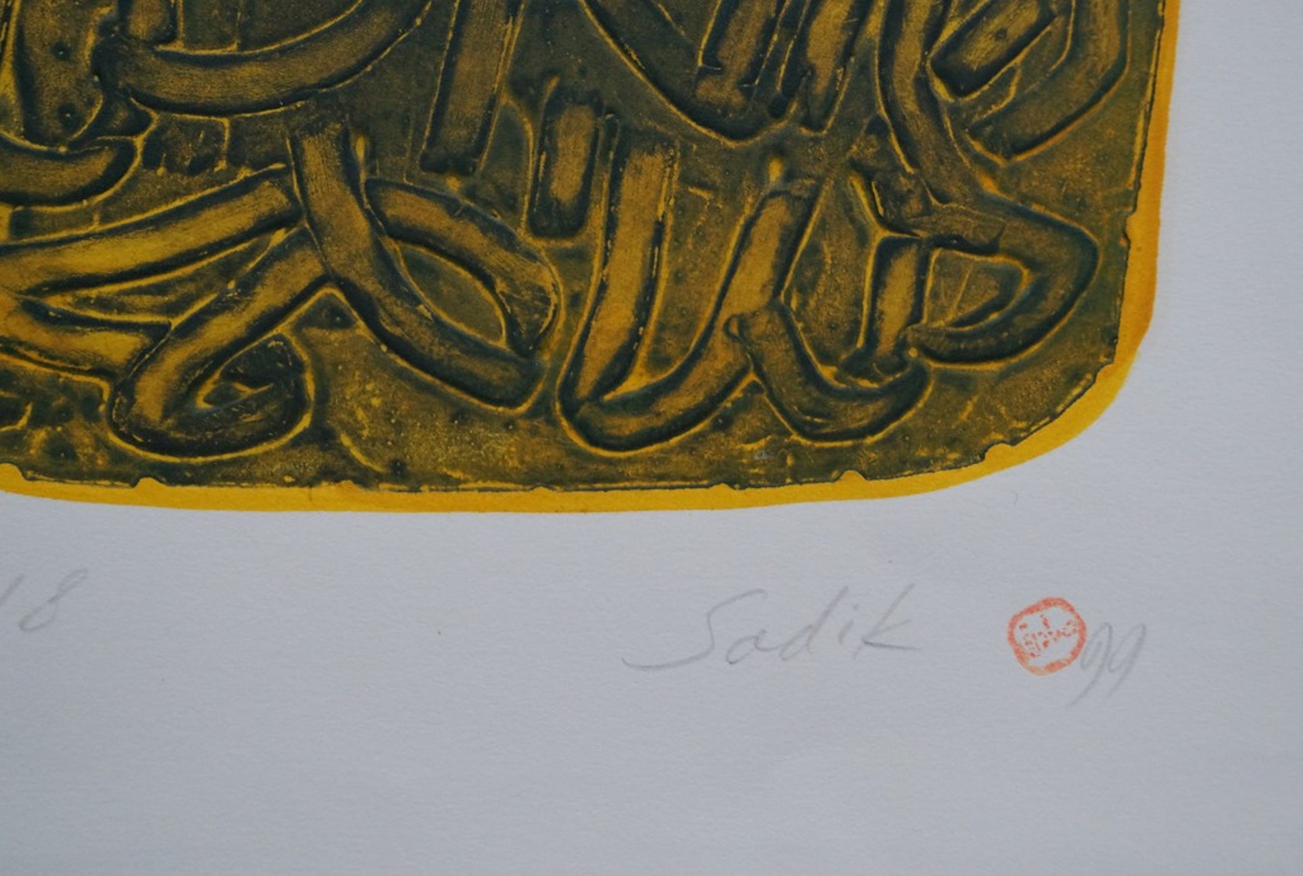 Mooie gestempelde zeefdruk met reliëf van Sadik Kwaish Alfaji