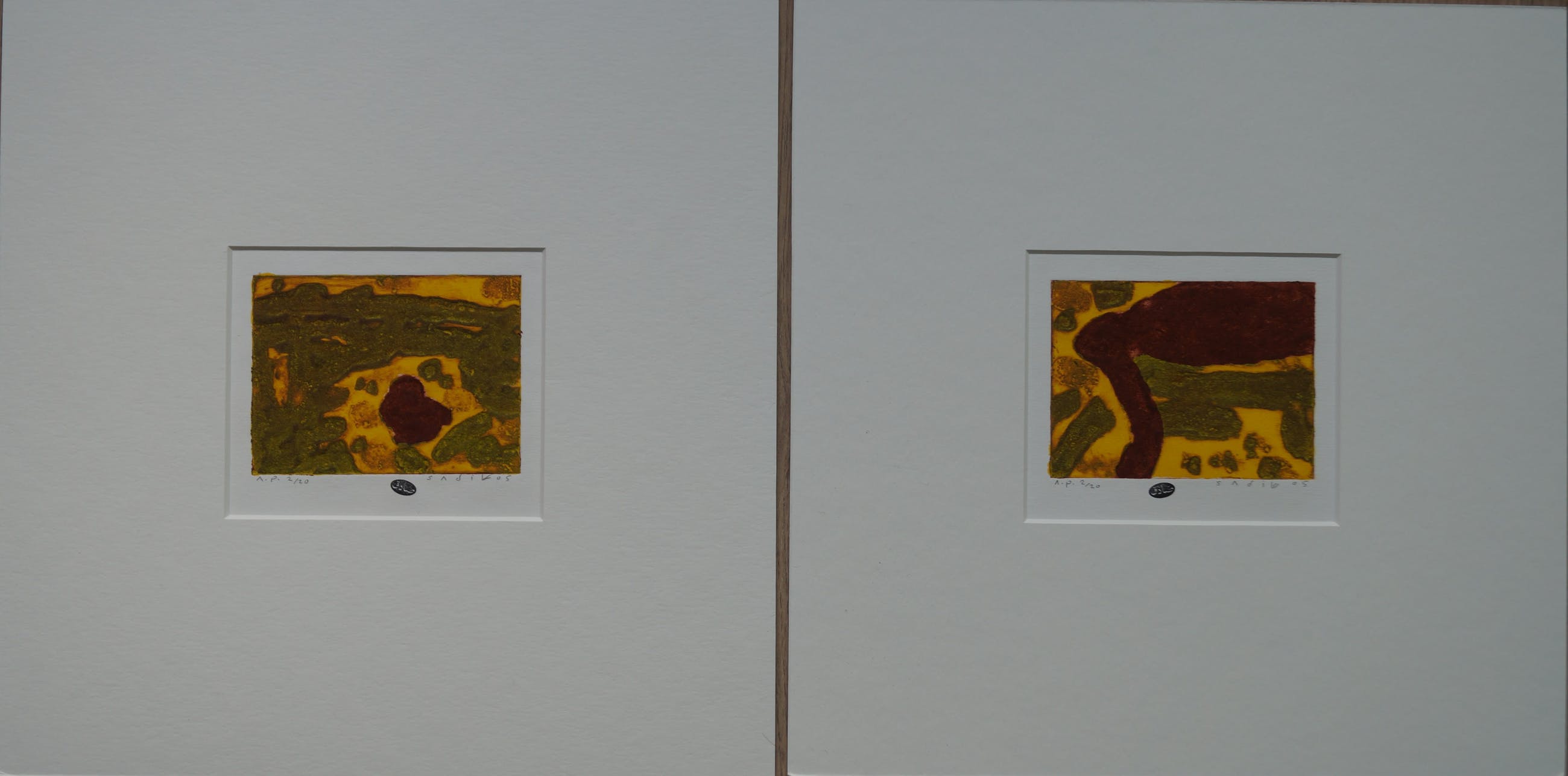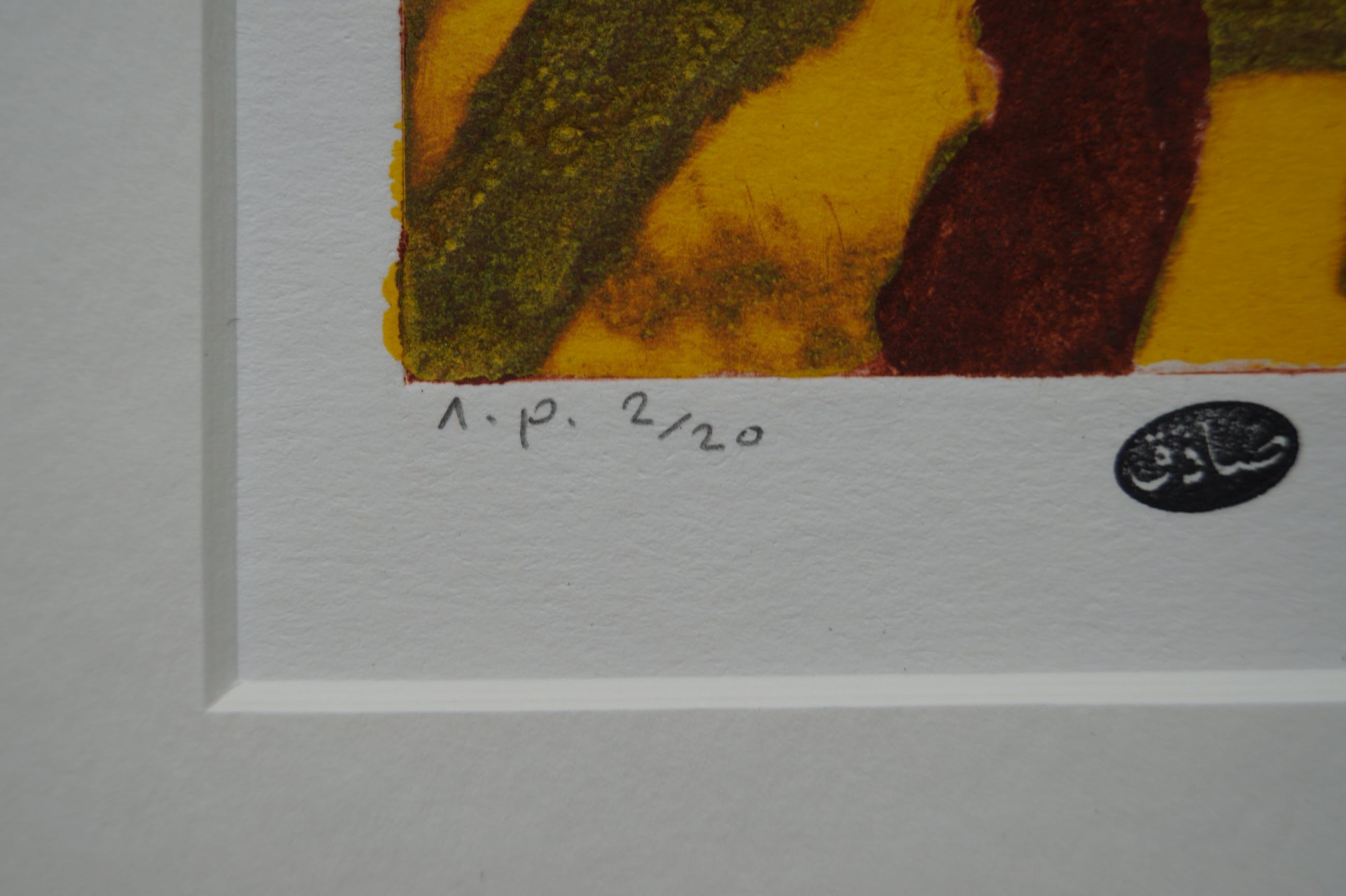 Twee prachtige kleine etsen van Sadik Kwaish Alfaji De etsen hebben hetzelfde oplagenummer: A.P. 2/20 Passe-partouts (35x35 cm) zijn in zeer goede staat