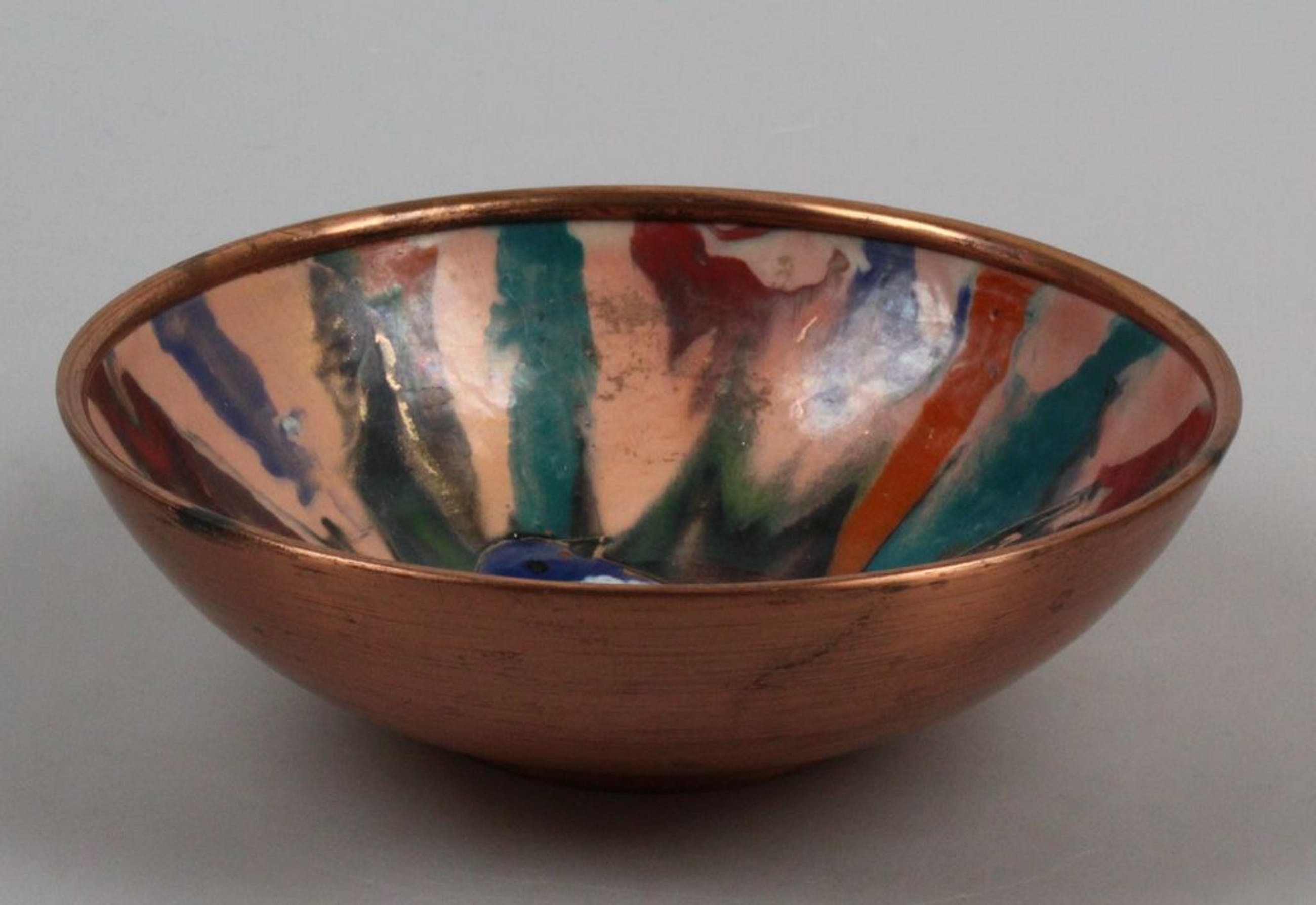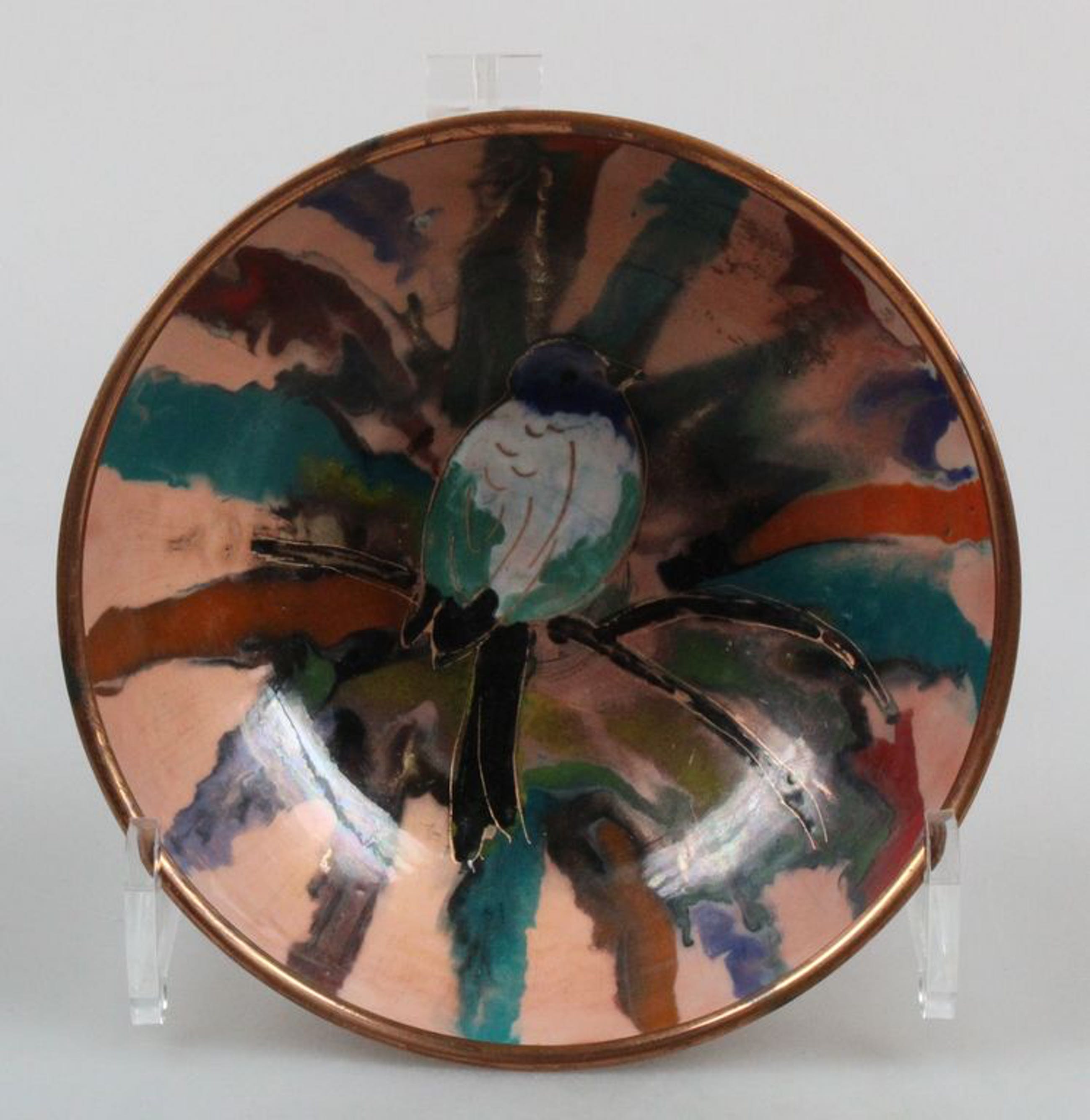 Sagitta mid-century kom met vogel koperemaile. Uitstekende staat en gemerkt. Diameter ca. 11 cm.