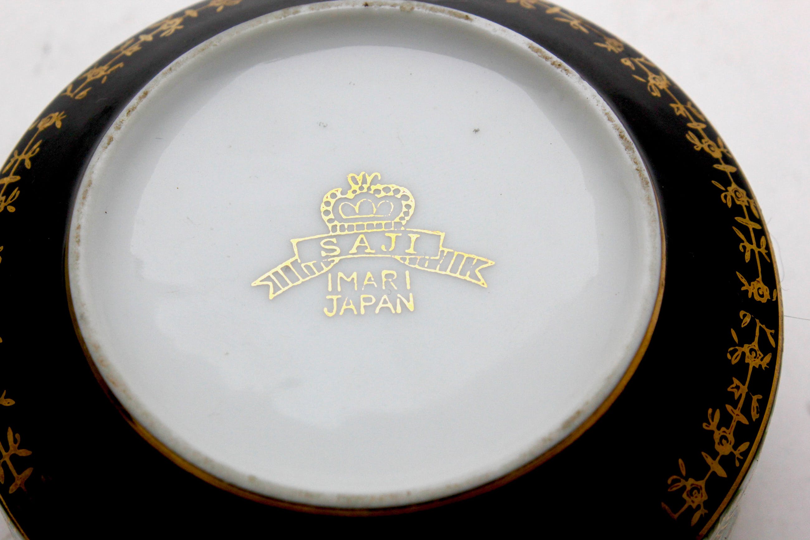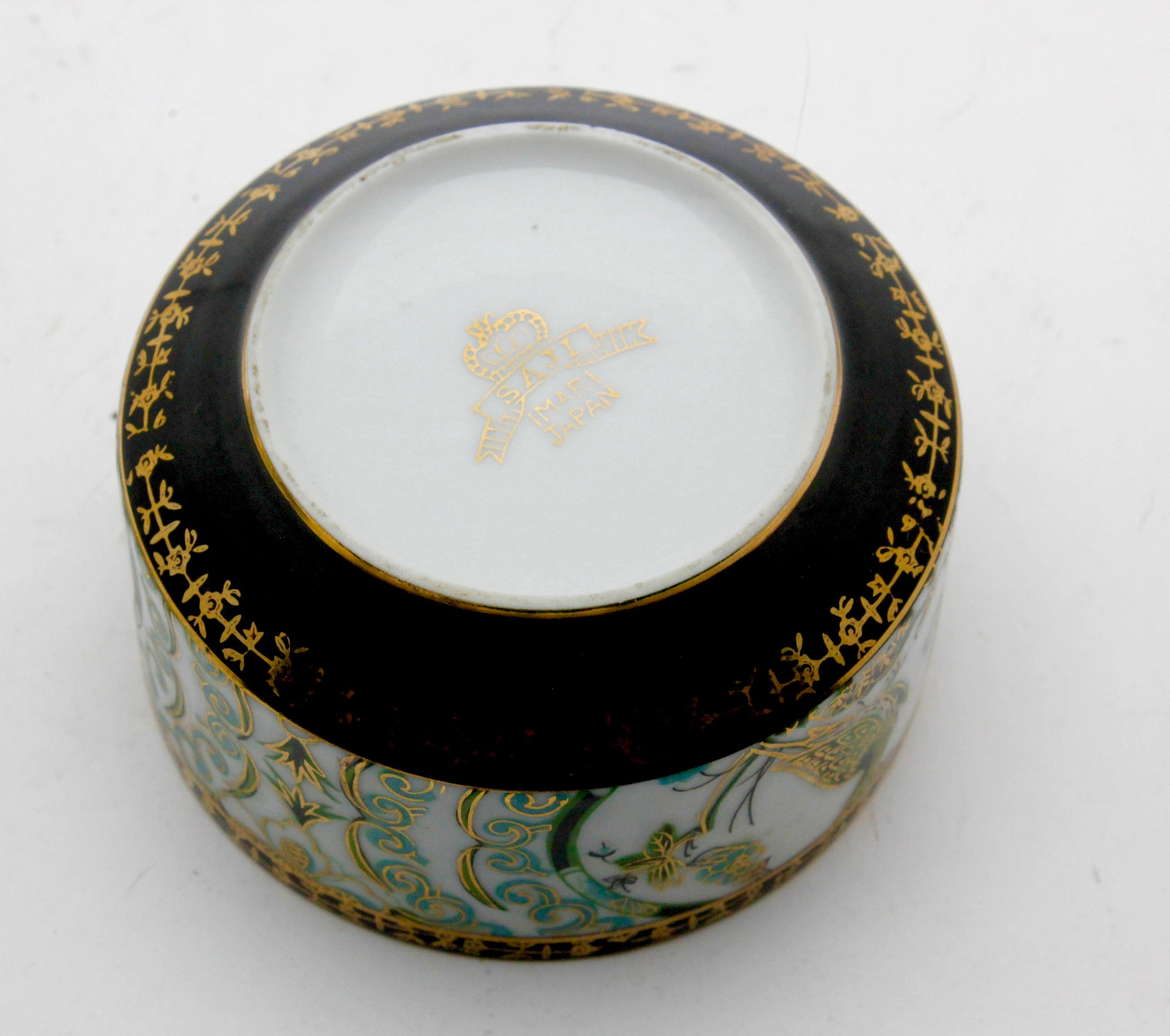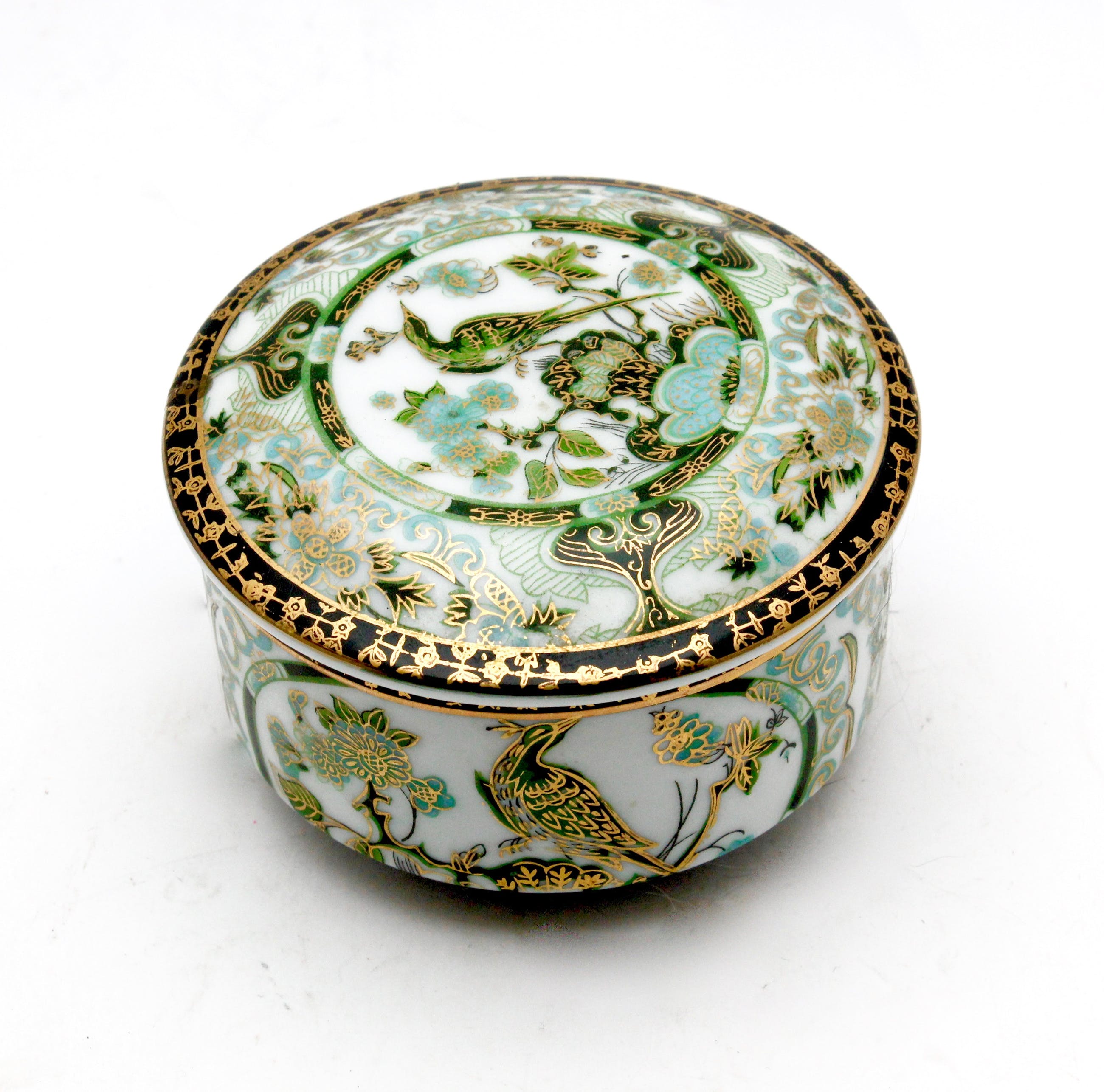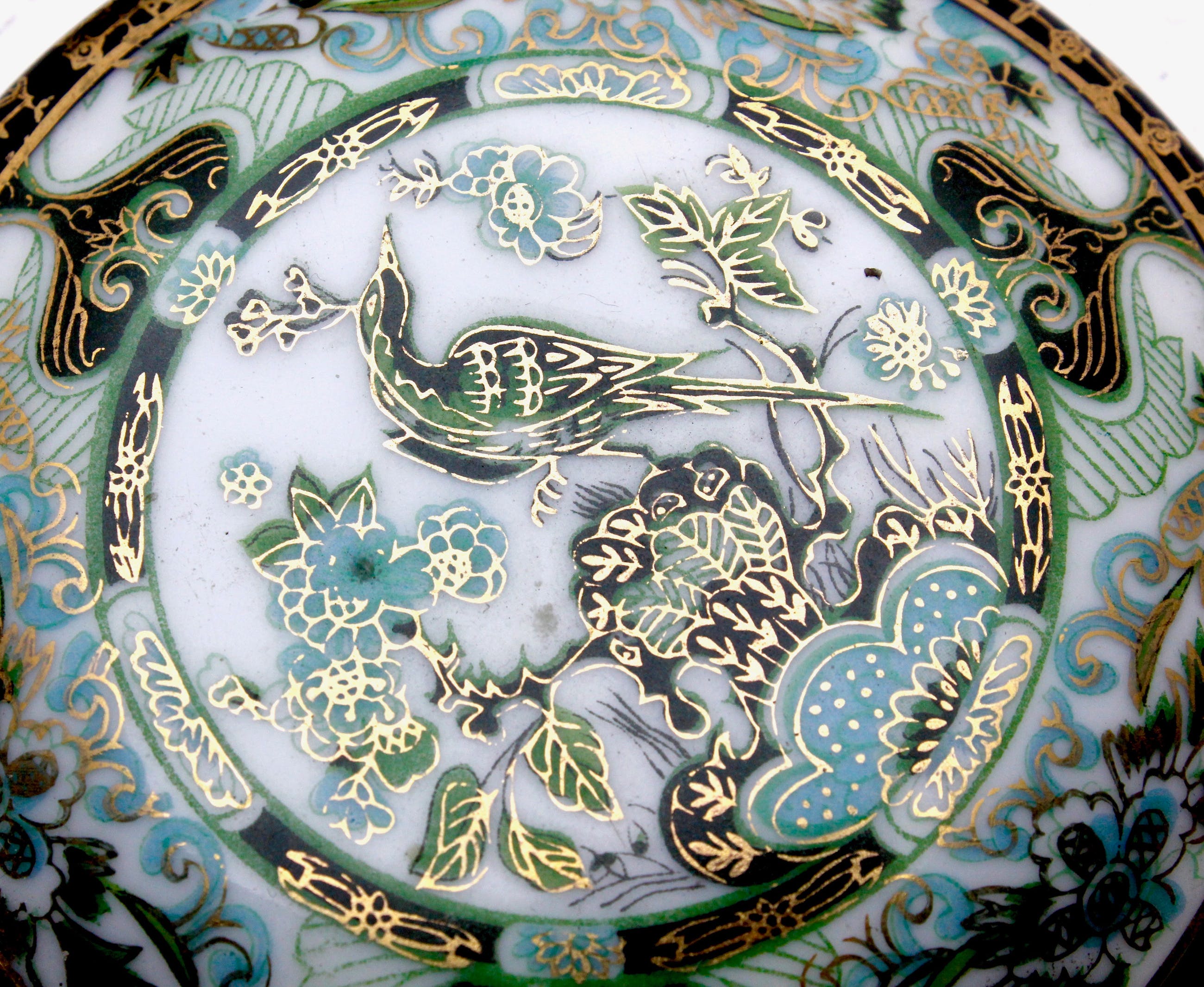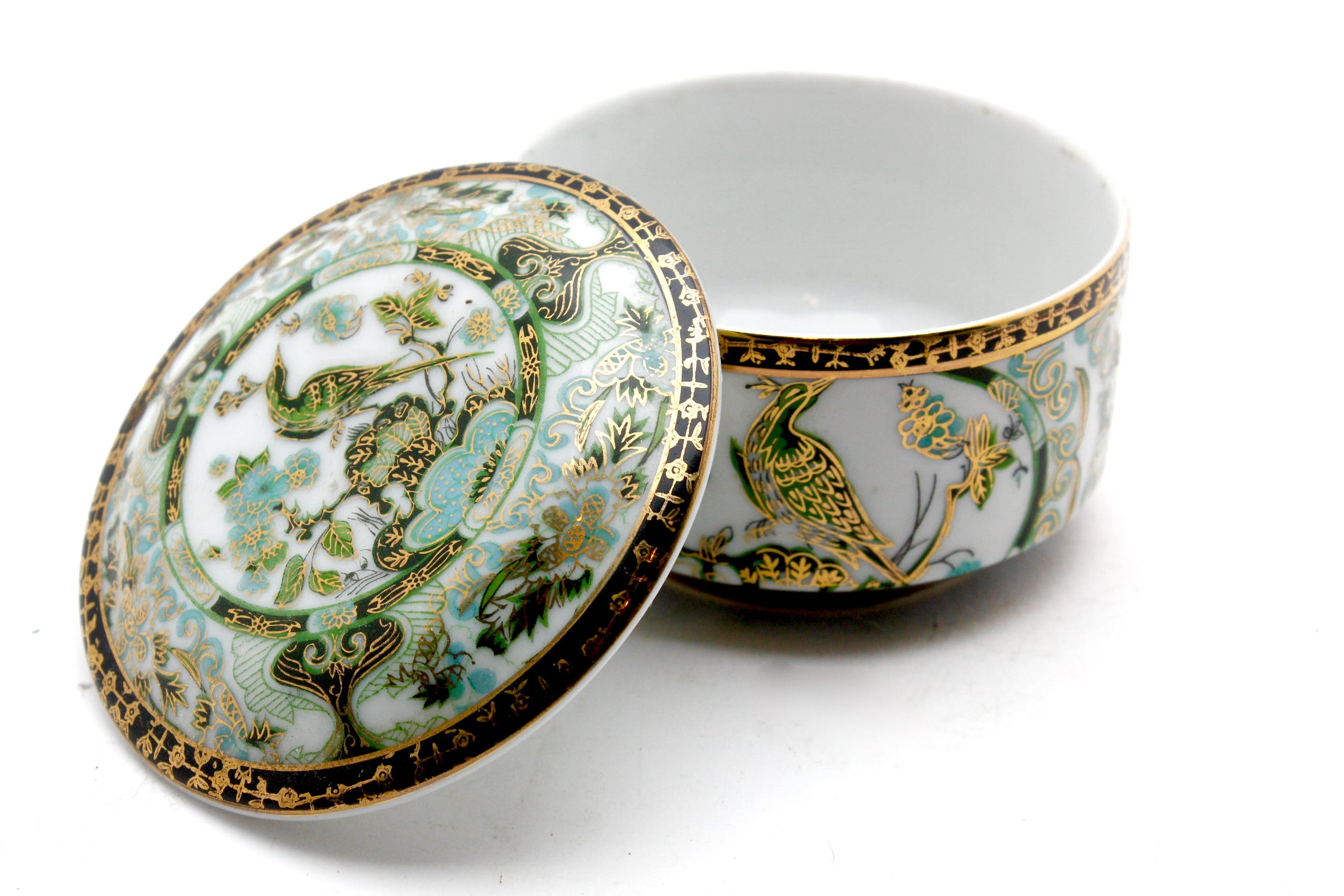 Uitstekend ontworpen Imari dekselschaal met groen 'Saji' decor met (Flora en fauna) gouden details.