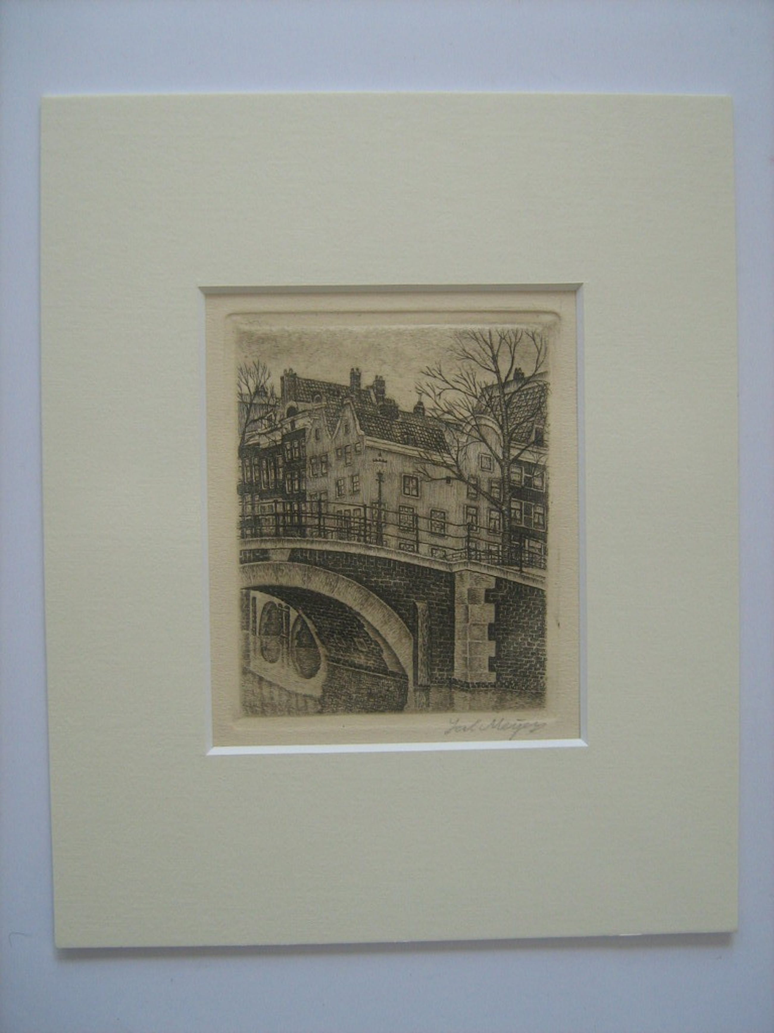 Reguliersgracht - Ets 9 x 7 cm - Materiaal: ets op stevig papier met ruime marges in Passepartout - gesigneerd: Sal Meijer.