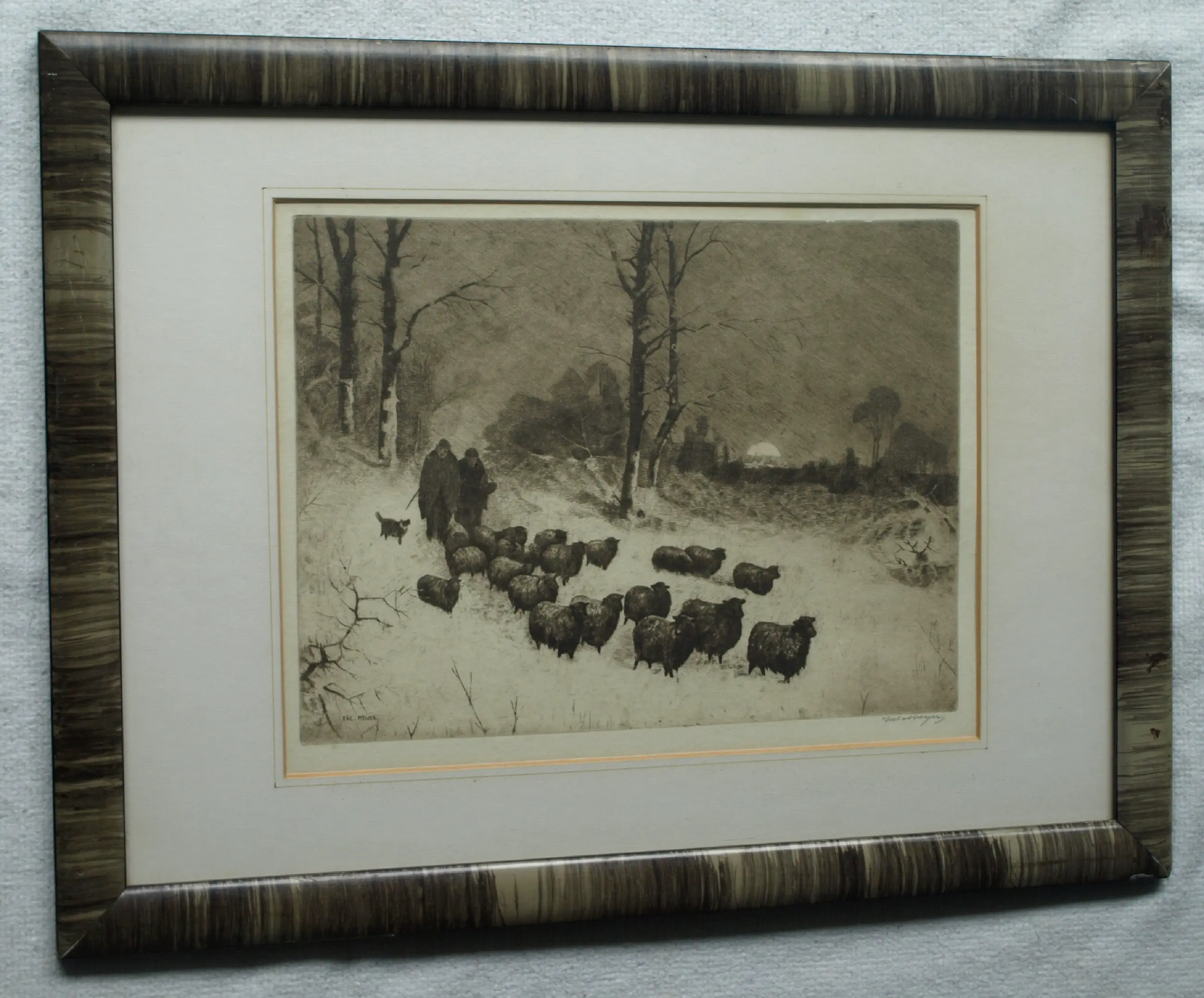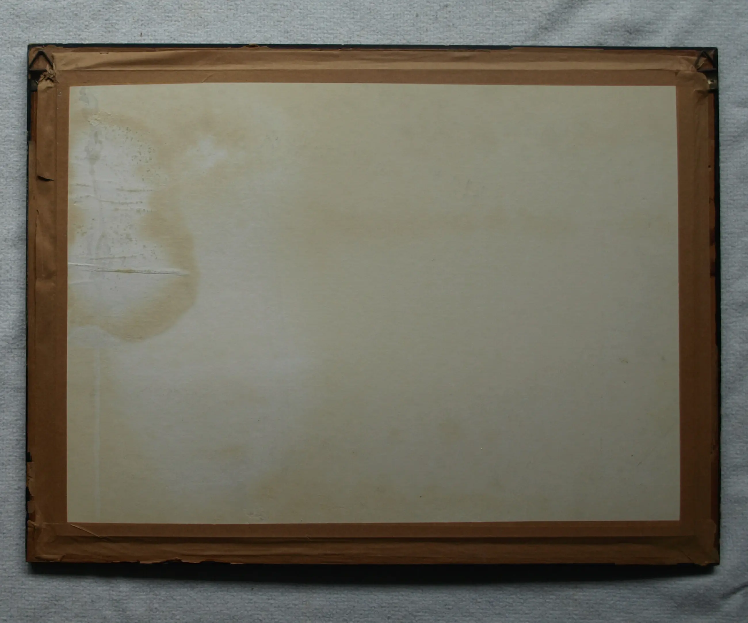 De ets is in goede staat. Het papier van de ets en het passe-partout zijn licht ‘vergeeld’. De lijst heeft slijtplekjes. De kartonnen achterplaat heeft vlekken. Zie ook alle foto’s voor een eigen indruk. Kan zo aan de muur.