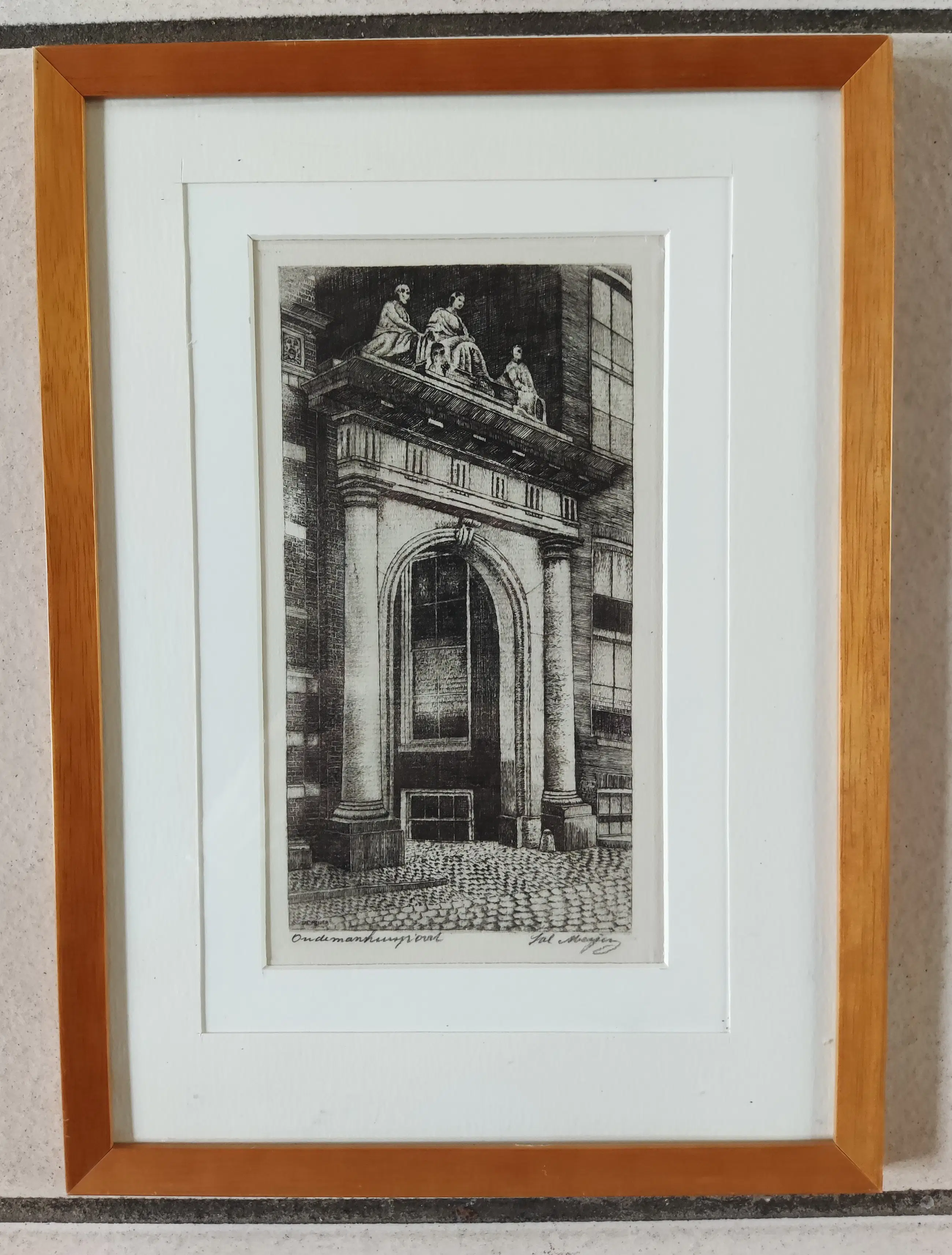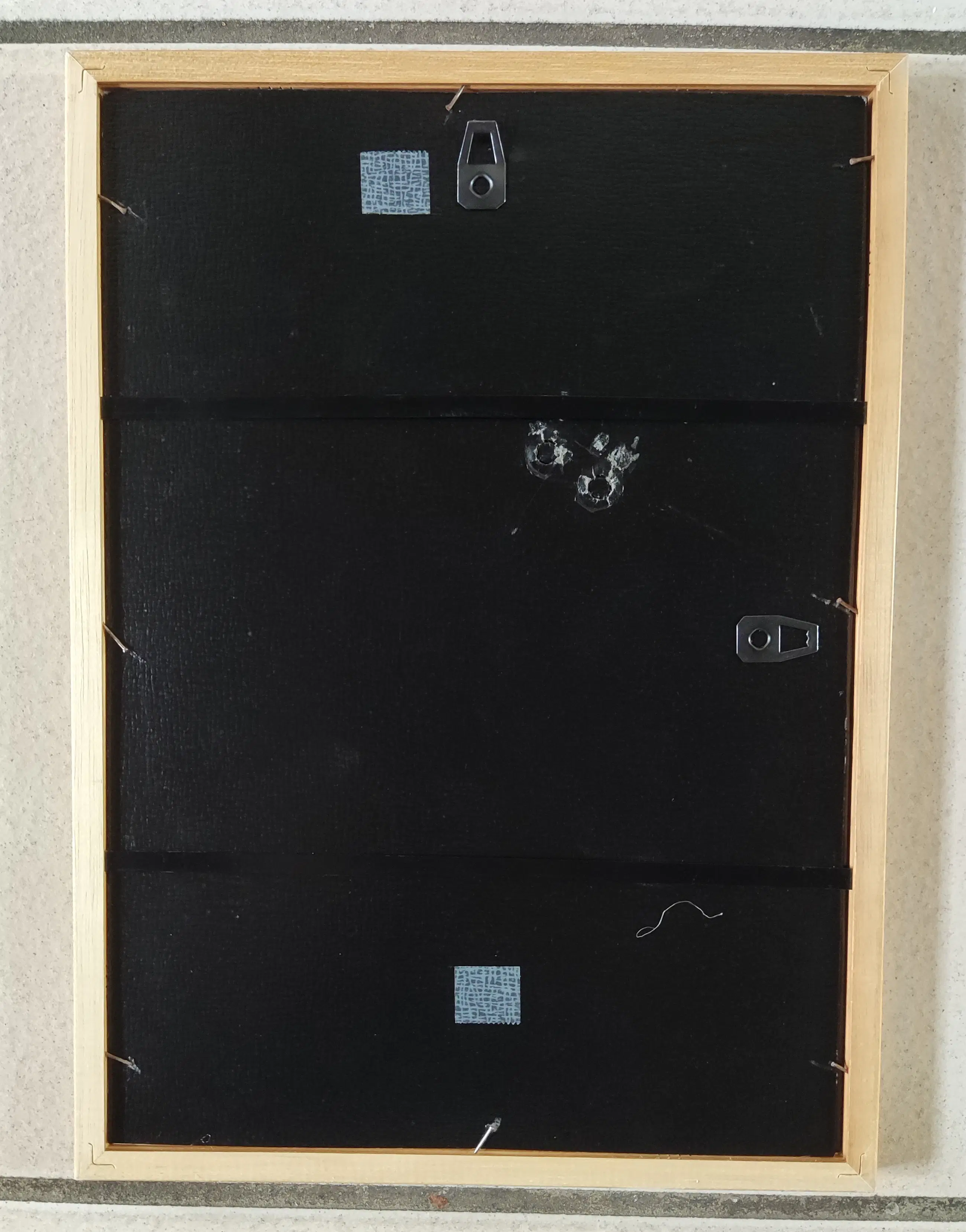Beeldmaat 18,5x10 cm. Lijstmaat 31,5x23x1,3 cm.