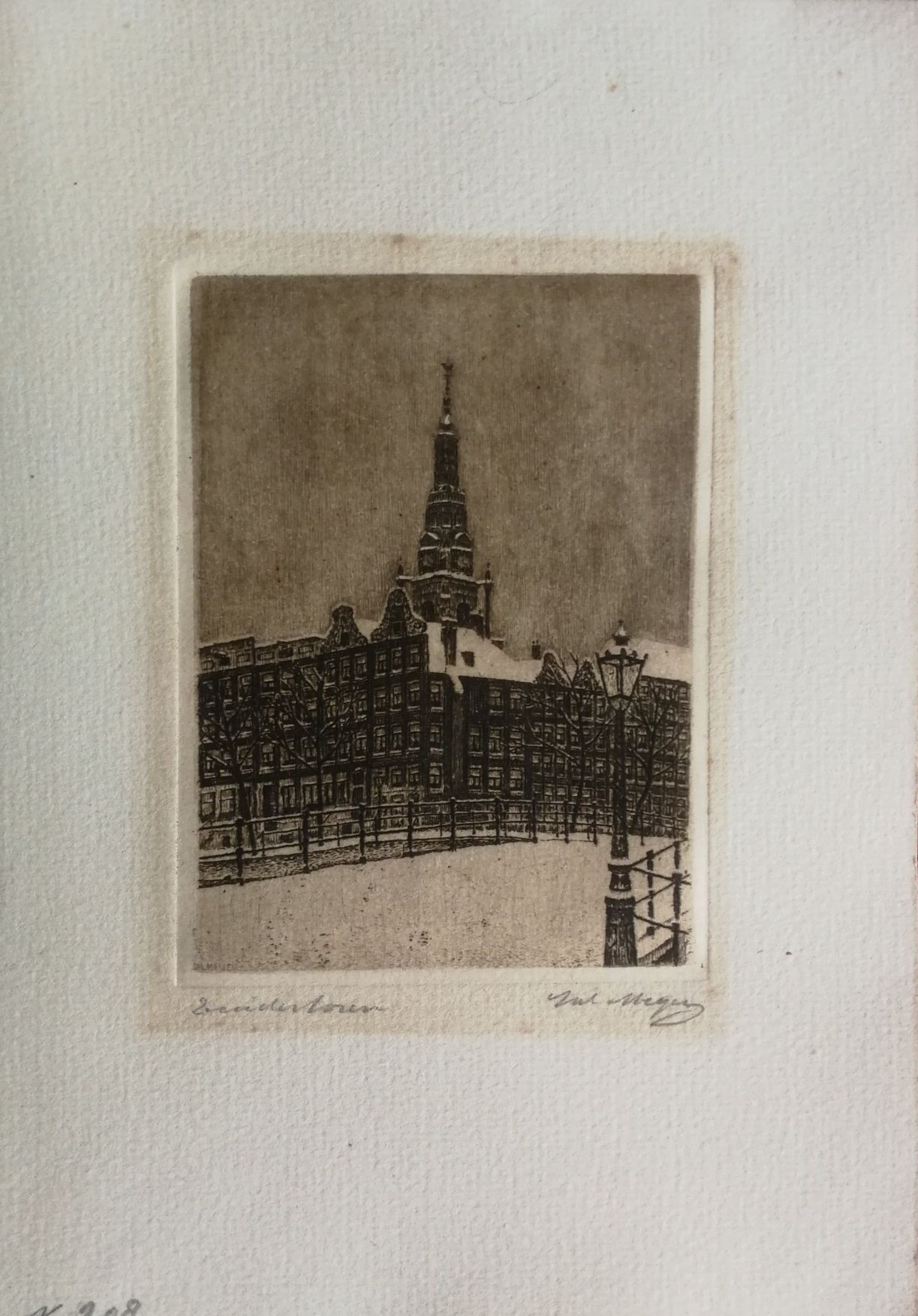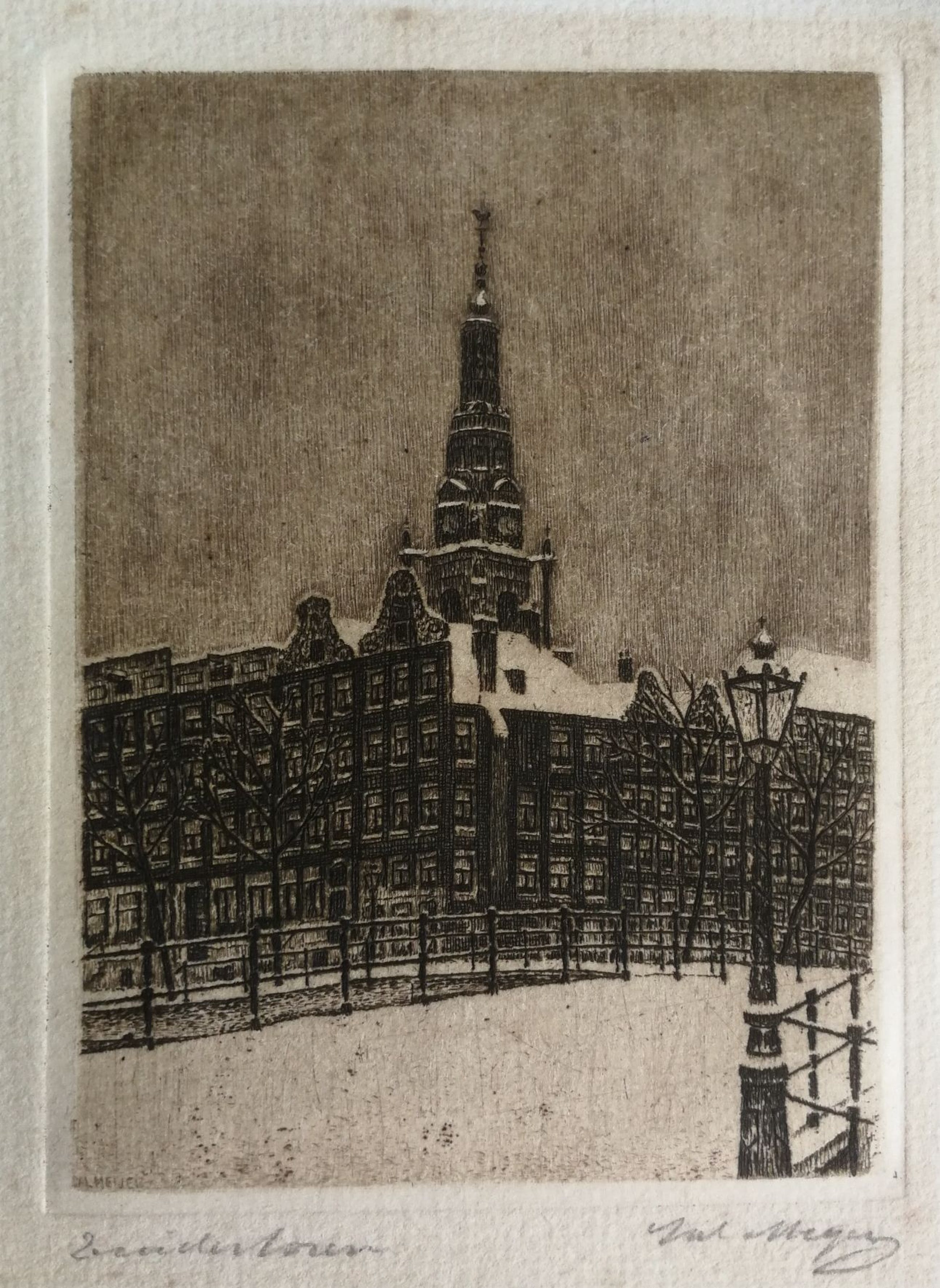 De Joodse schilder/graficus Sal Meijer werkte in een fijn realistische stijl. Hoewel hij ook andere taferelen schilderde en etste (poezen!) waren in Amsterdam stadsgezichten hem het liefst. In Blaricum zouden huizen/boerderijen na de oorlog als onderwerp erbij komen. Het blad van de Zuidertoren is nog intact (22,5 x 16 cm). Van hetzelfde onderwerp bestaat ook een olieverf schilderij. Als ets komt men dit motief niet vaak tegen (zie Google afbeeldingen), alleen bij Kunstveiling is ooit 1 ex. verkocht.