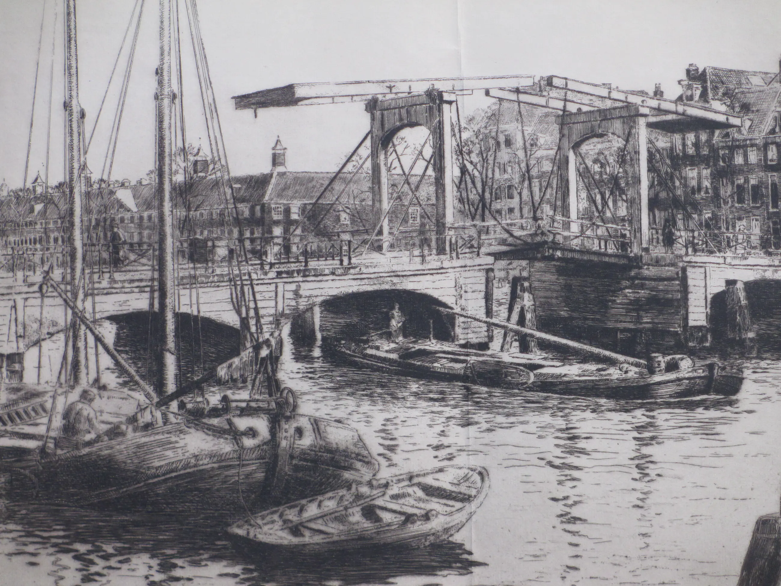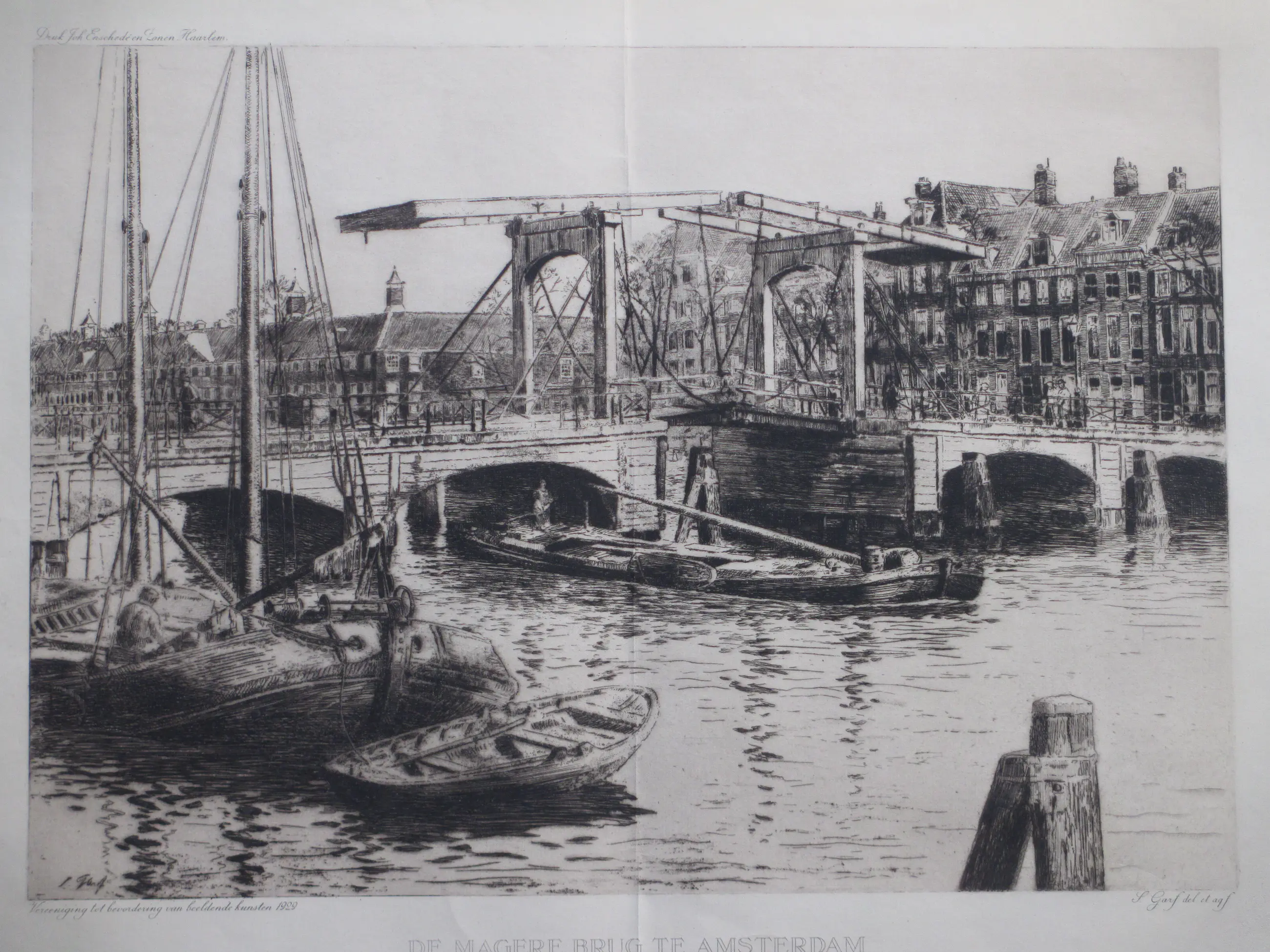 Ets door Salomon GarfVoorstelling van de Magere Brug in AmsterdamLosbladig, beeldmaat 38x53, bladmaat 56x76Gesigneerd in de druk l.o. 'S.Garf'Uitgave: Vereeniging tot bevordering van beeldende kunsten 1929Authenticiteit volledig gegarandeerd