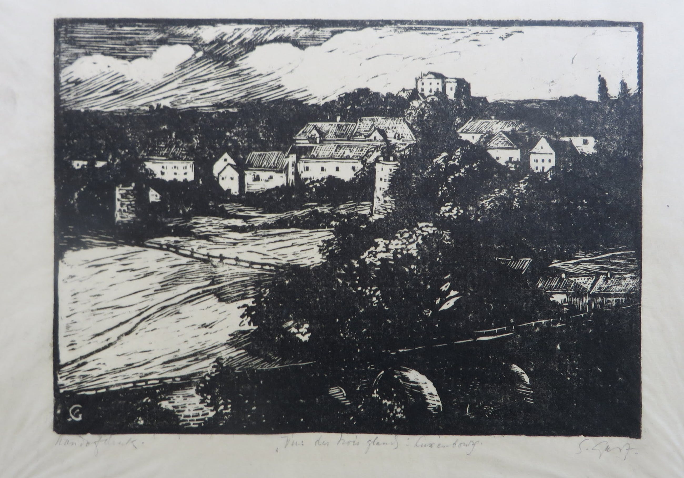 Salomon Garf - Gezicht op Boullion,Stad in Luxemburg en portret van een boer kopen? Bied vanaf 15!