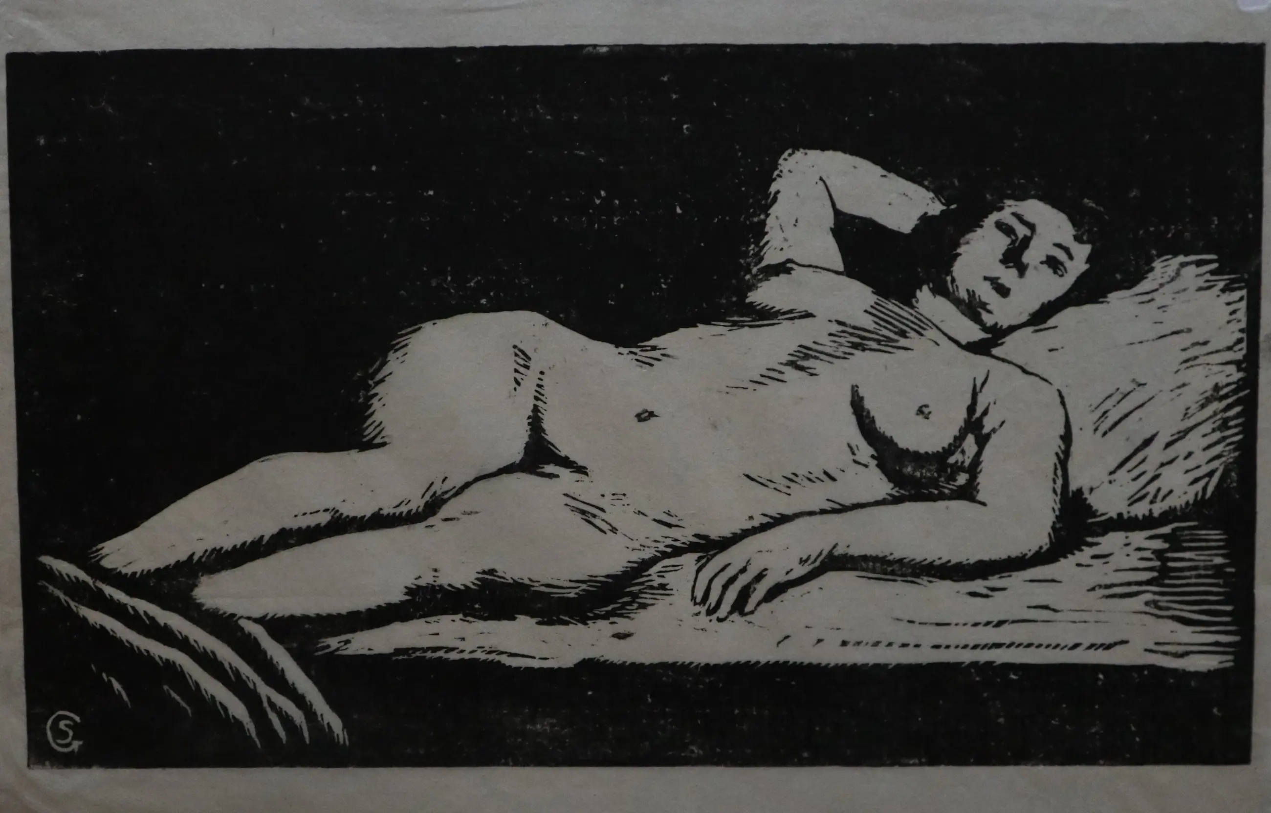 Salomon Garf bekend schilder en graficus, gesigneerd in potlood en met monogram in de afbeelding.