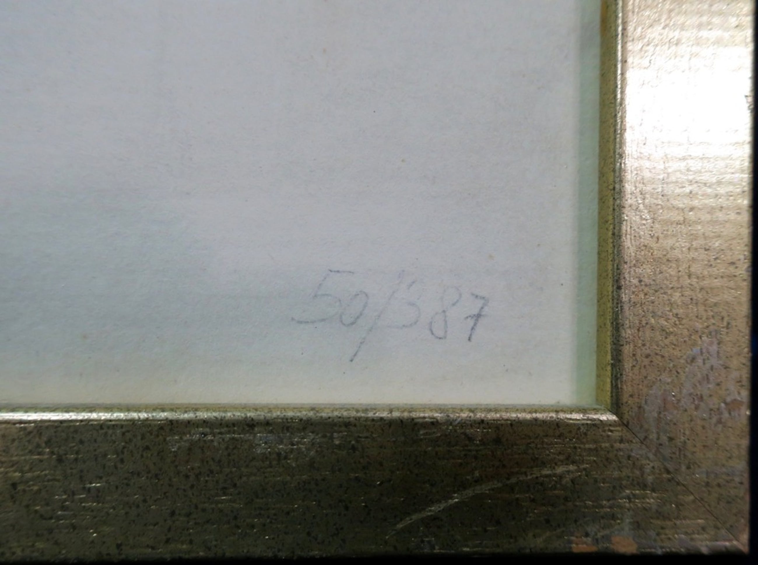 Kleine beschadigingen aan lijsten worden niet beschreven! Bij ingelijste werken achter glas vermelden wij altijd glasschade. Passe-partouts worden op geen enkele manier gegarandeerd en ook niet altijd meegezonden. Alleen als een werk niet uit het passe-partout te halen is, zal dit vermeld worden.