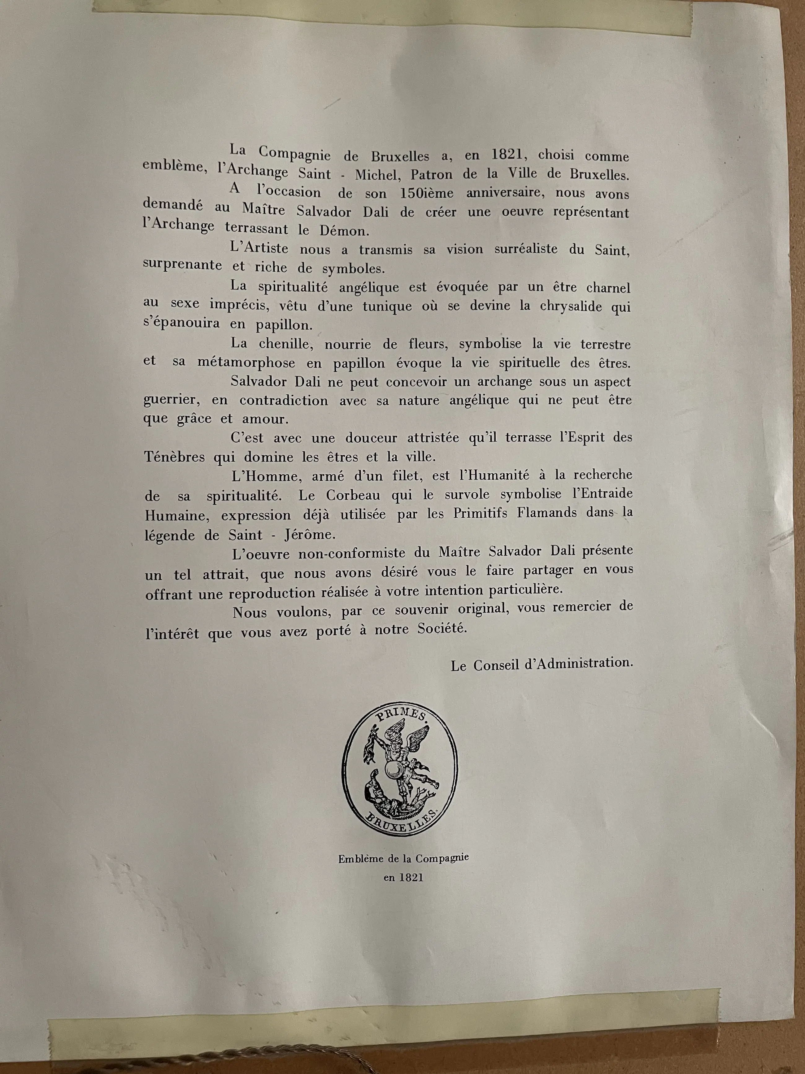 Ik heb deze Gravure van Dali aangekocht op de antique Fair in Hasselt. Het is een werk speciaal gemaakt door Dali voor het jubileumjaar van het 150ste jaar Brussel. Bewijsstuk op achterzijde van het werk.