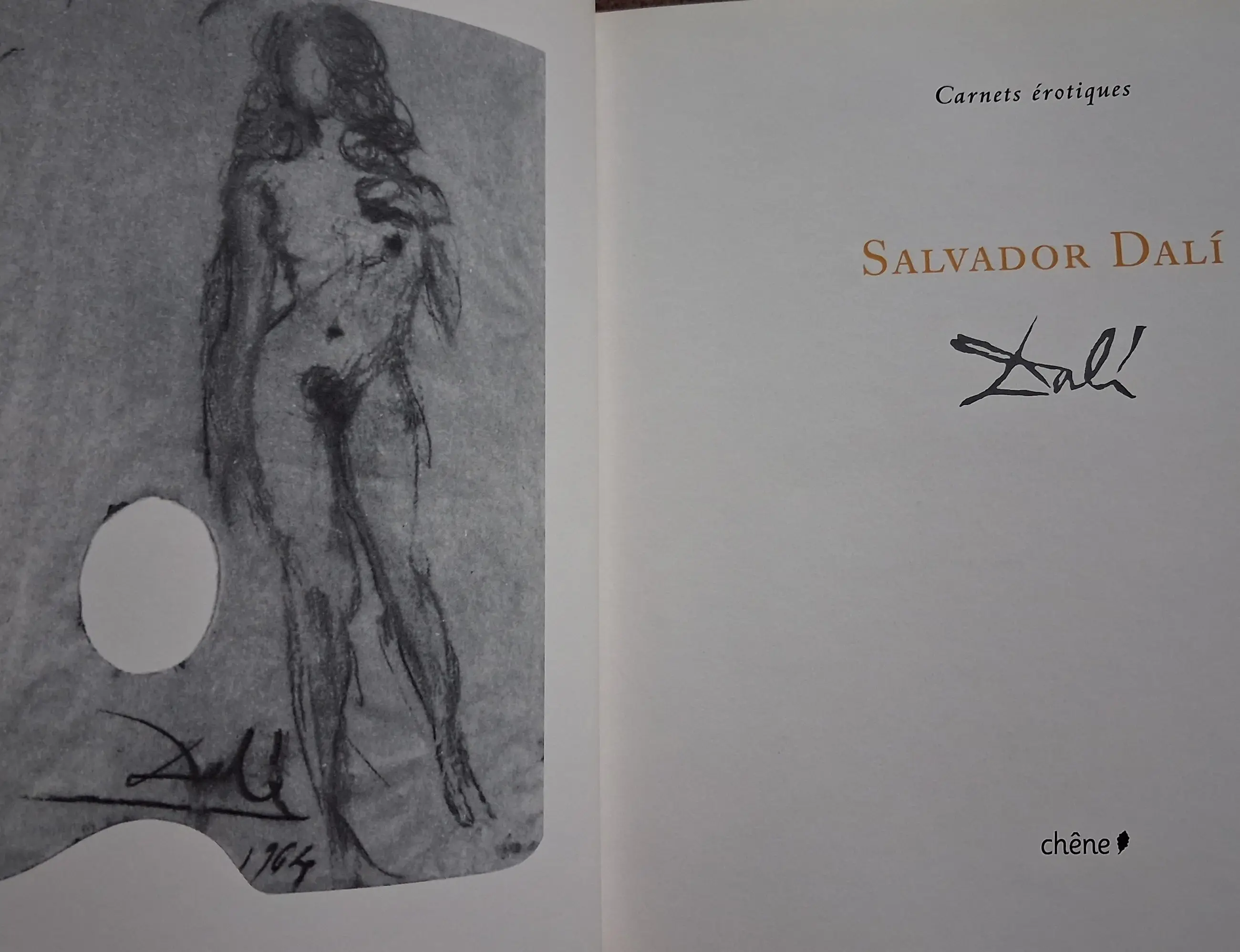 Hardcover boekje, kan gesloten worden met een lint, met erotische tekeningen van Salvador Dali uit de periode 1929 - 1975. Samengesteld door Norbert Wolf, uitgeverij Chêne. Franstalig.