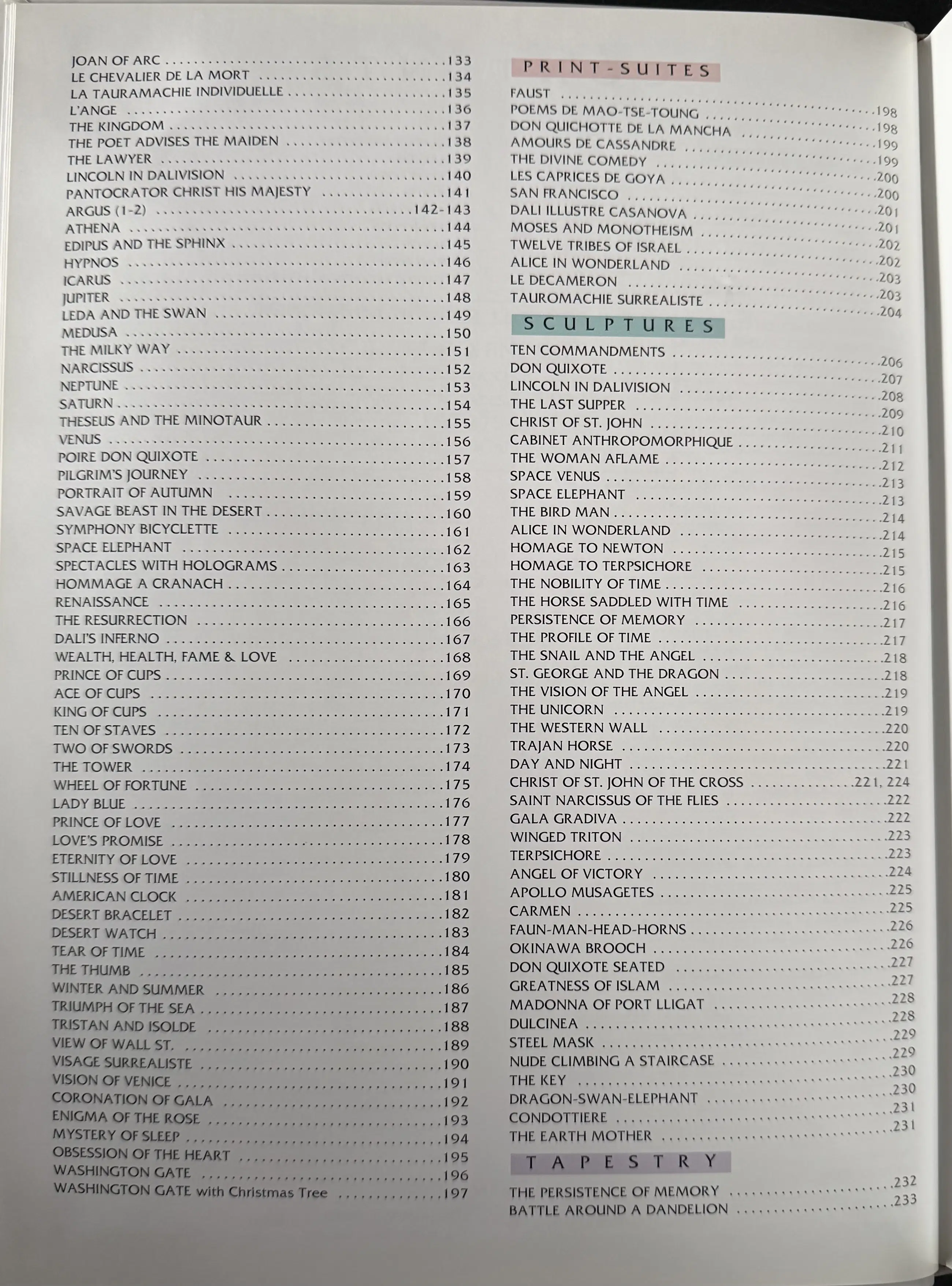Uitgegeven in samenwerking met een tentoonstelling in Manhattan: Metropolitan Pavilion, 125 W. 18th Street, April 18- May 1, 2002 van kunstwerken van de Spaanse surrealist Salvador Dalí (1904-1989).