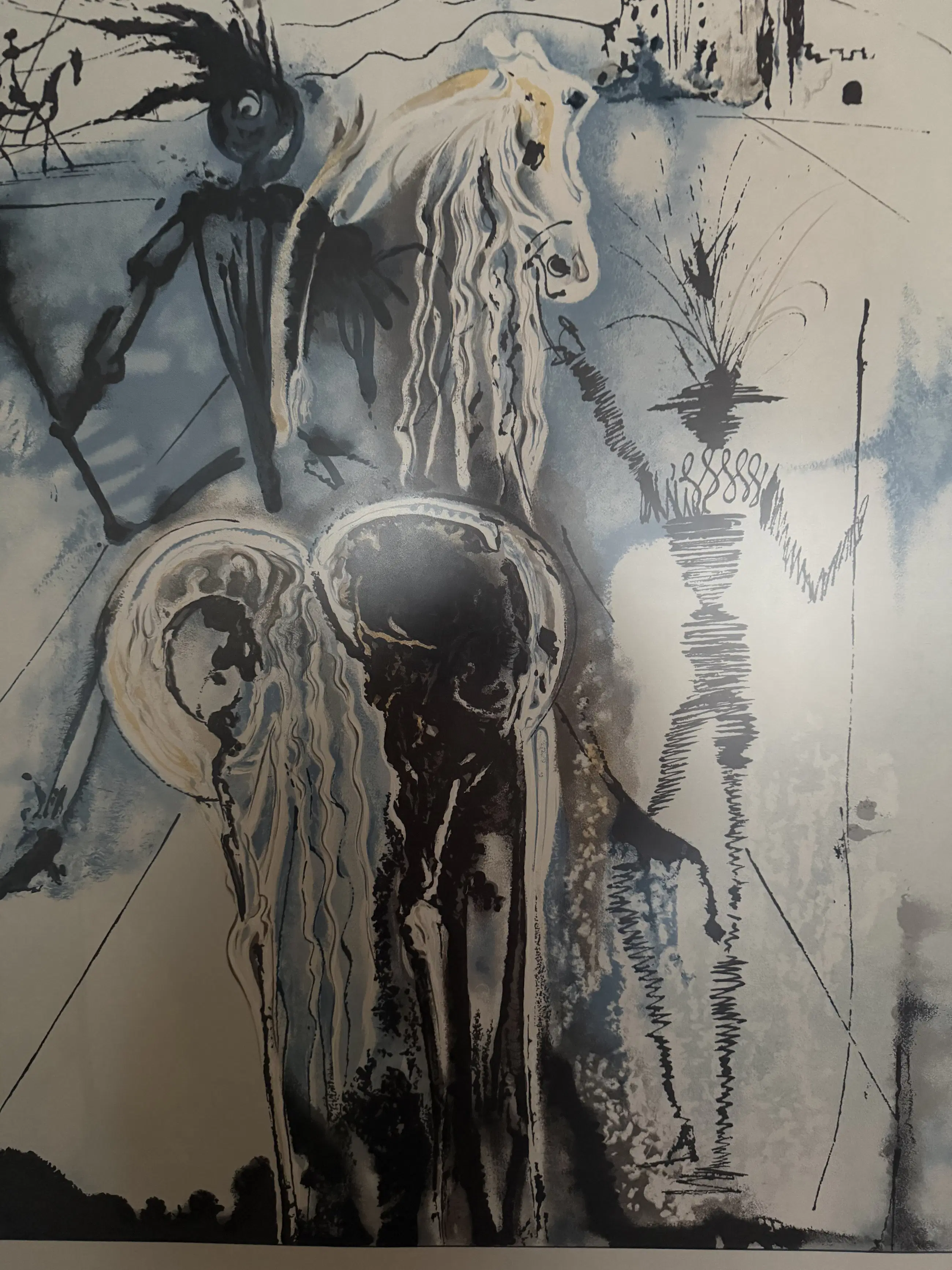 De middeleeuwse ridderZeer zeldzaam, Salvador Dali Silk gedrukt op zijde Dali Don Quichotte soie